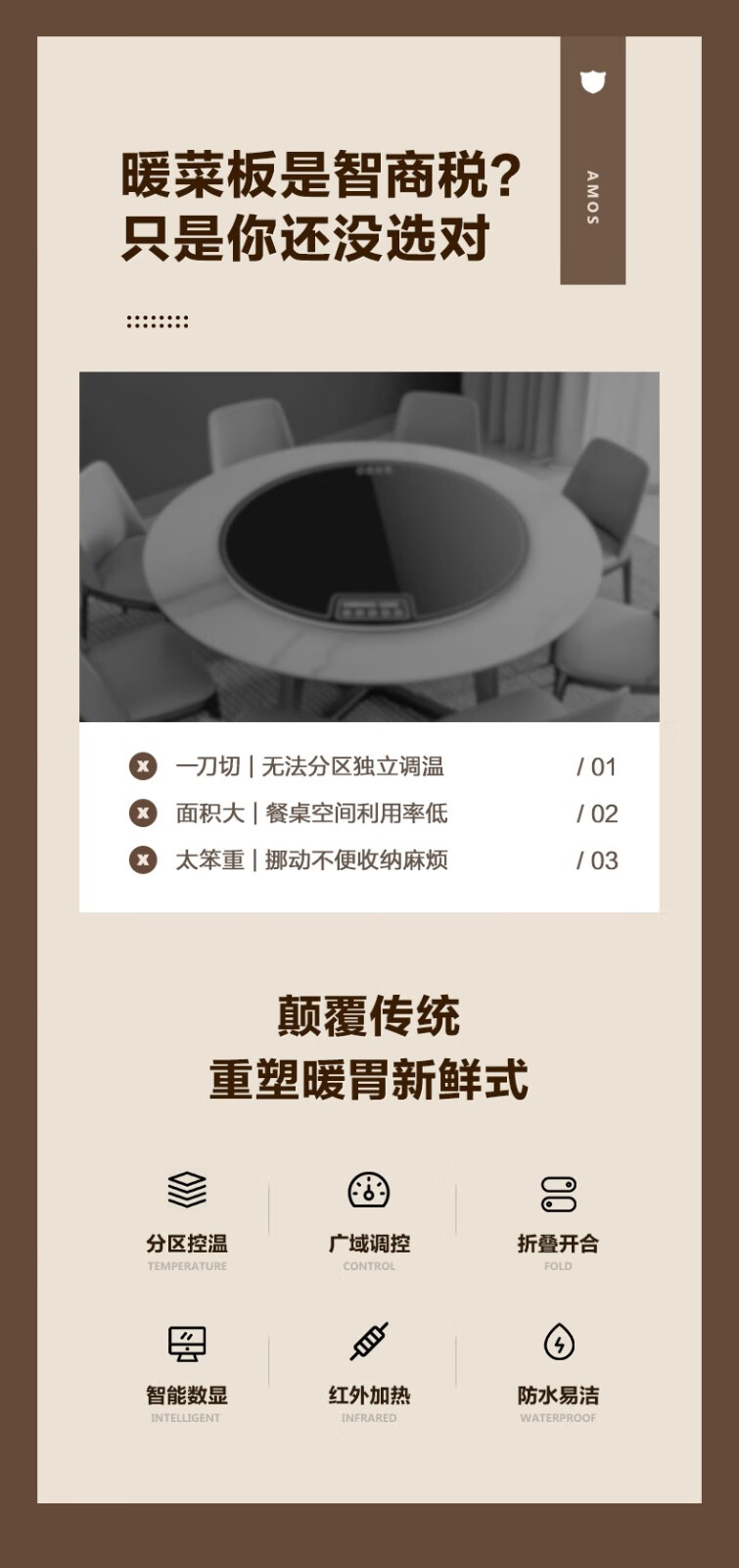 亚摩斯 暖菜板 折叠暖菜板 AS-HR36Z