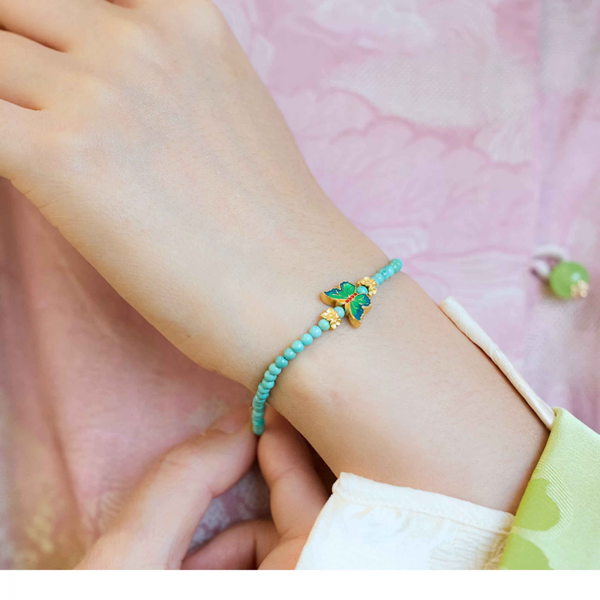 【材质】湖北绿松、S925银珐琅蝴蝶、S925银配件
