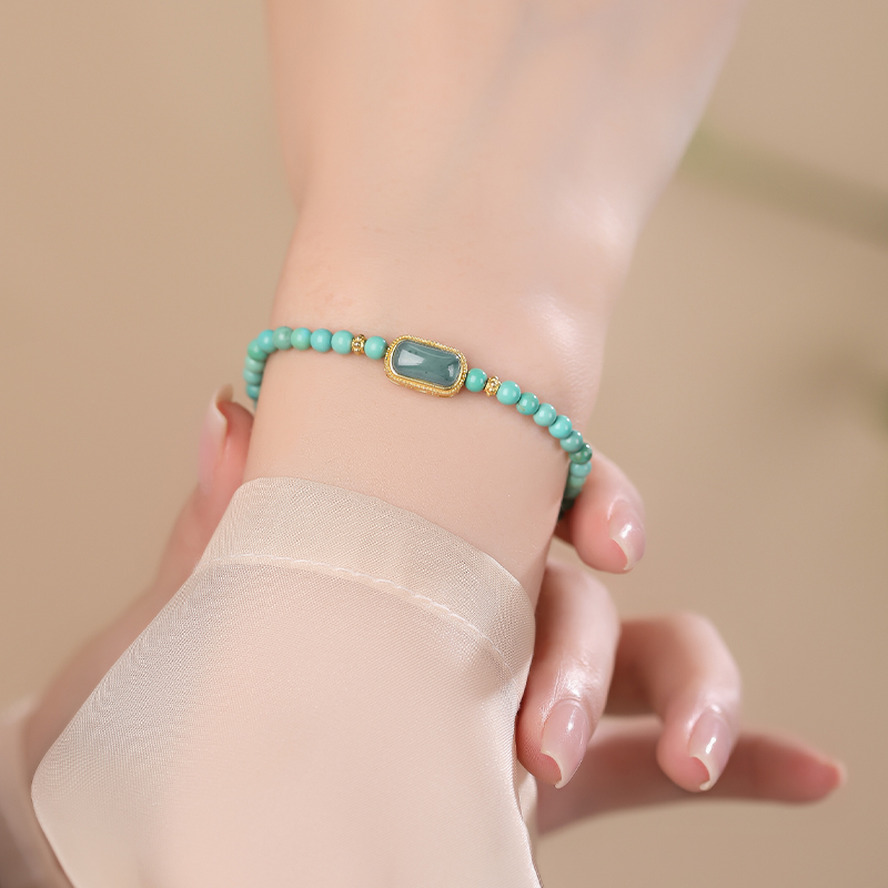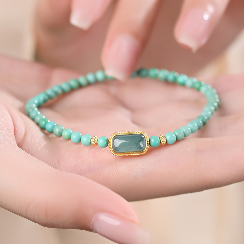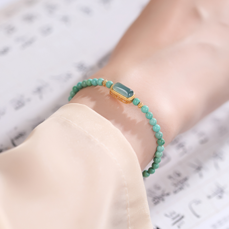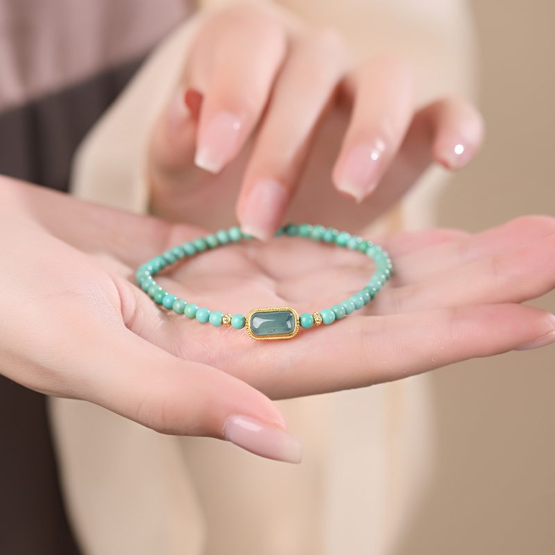 【产品尺寸】绿松珠约3mm,适合手围约14-16cm