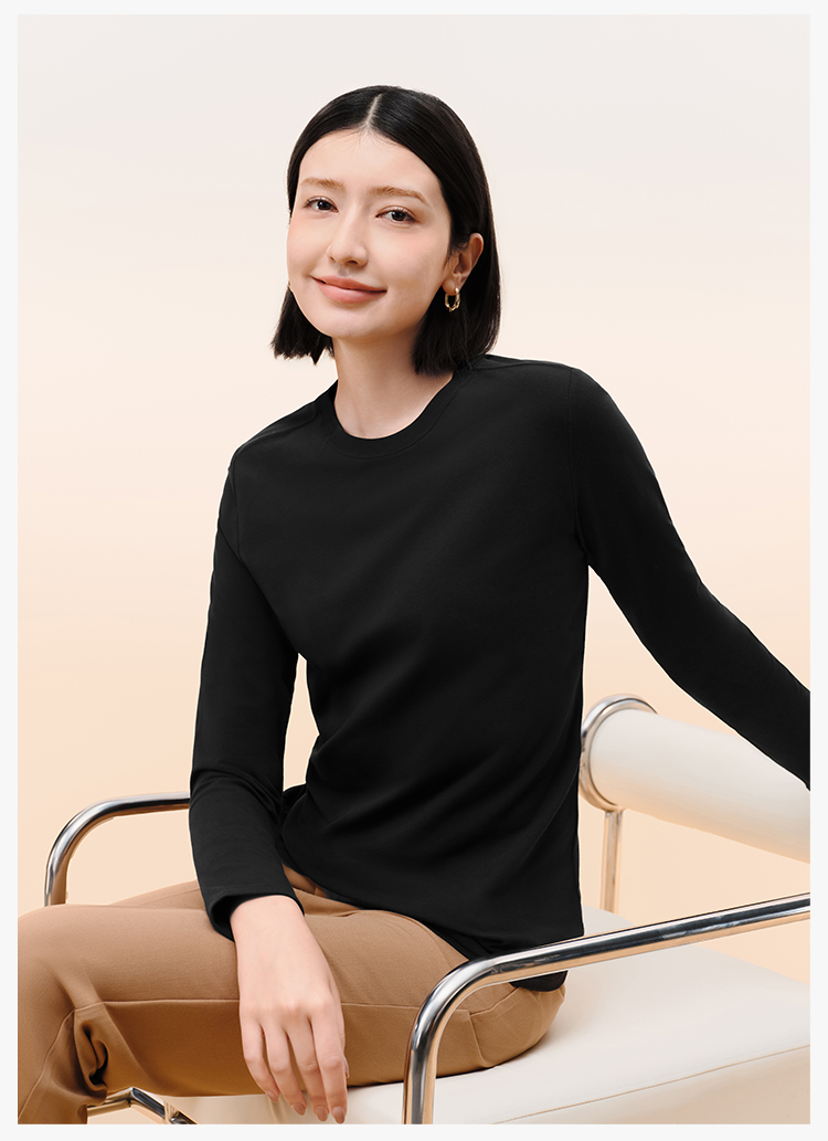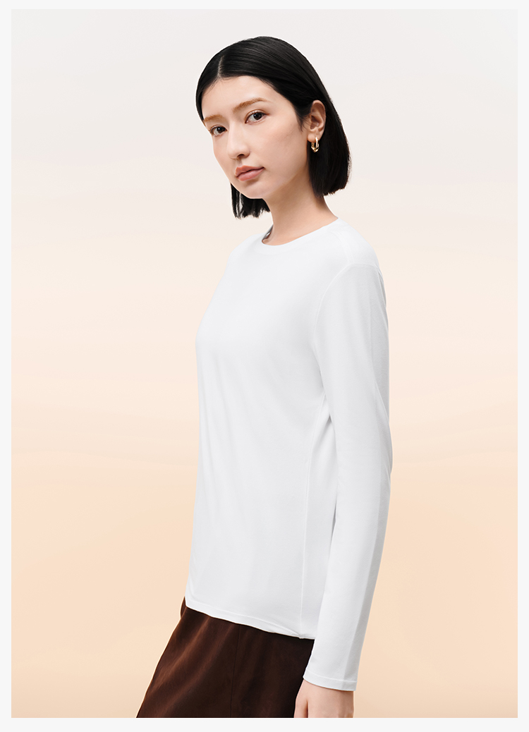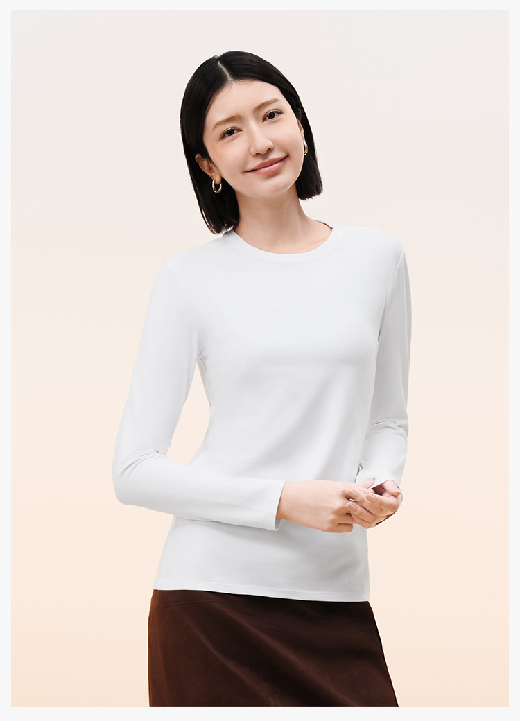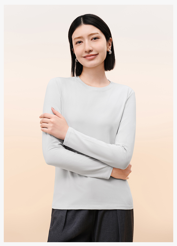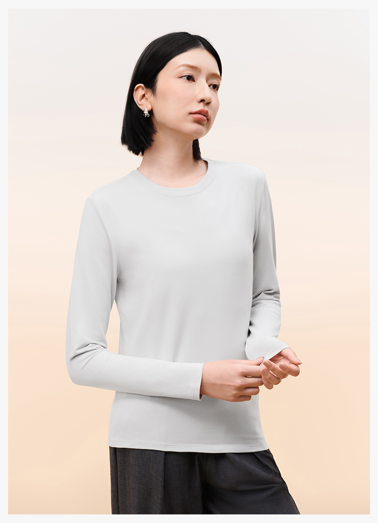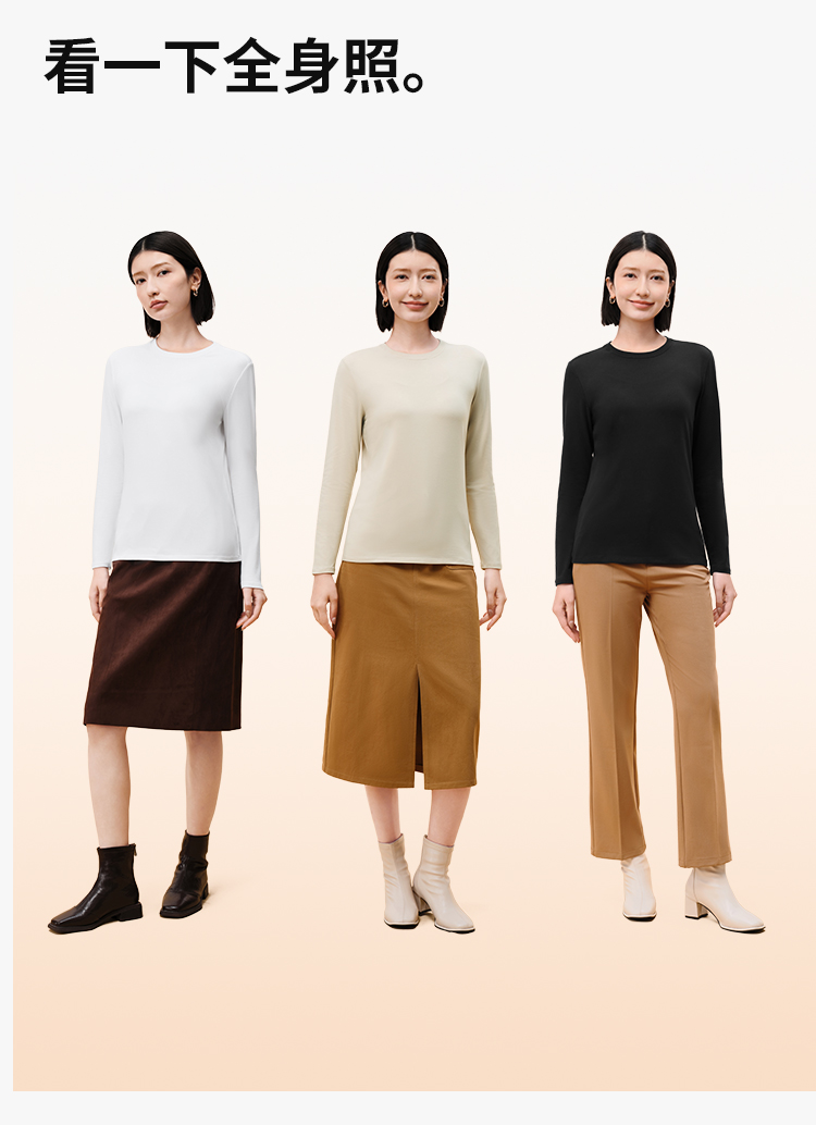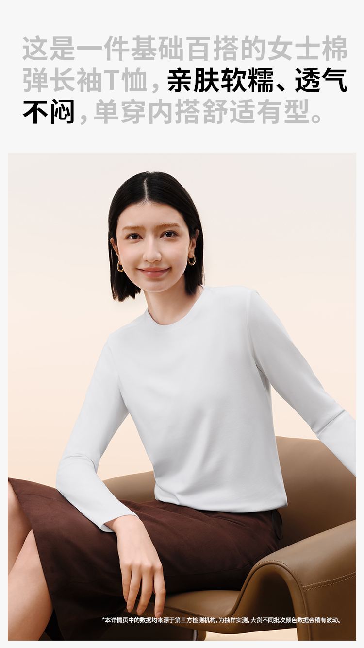 拇指白小T可机洗软柔羊毛半高领长袖T恤无我系列