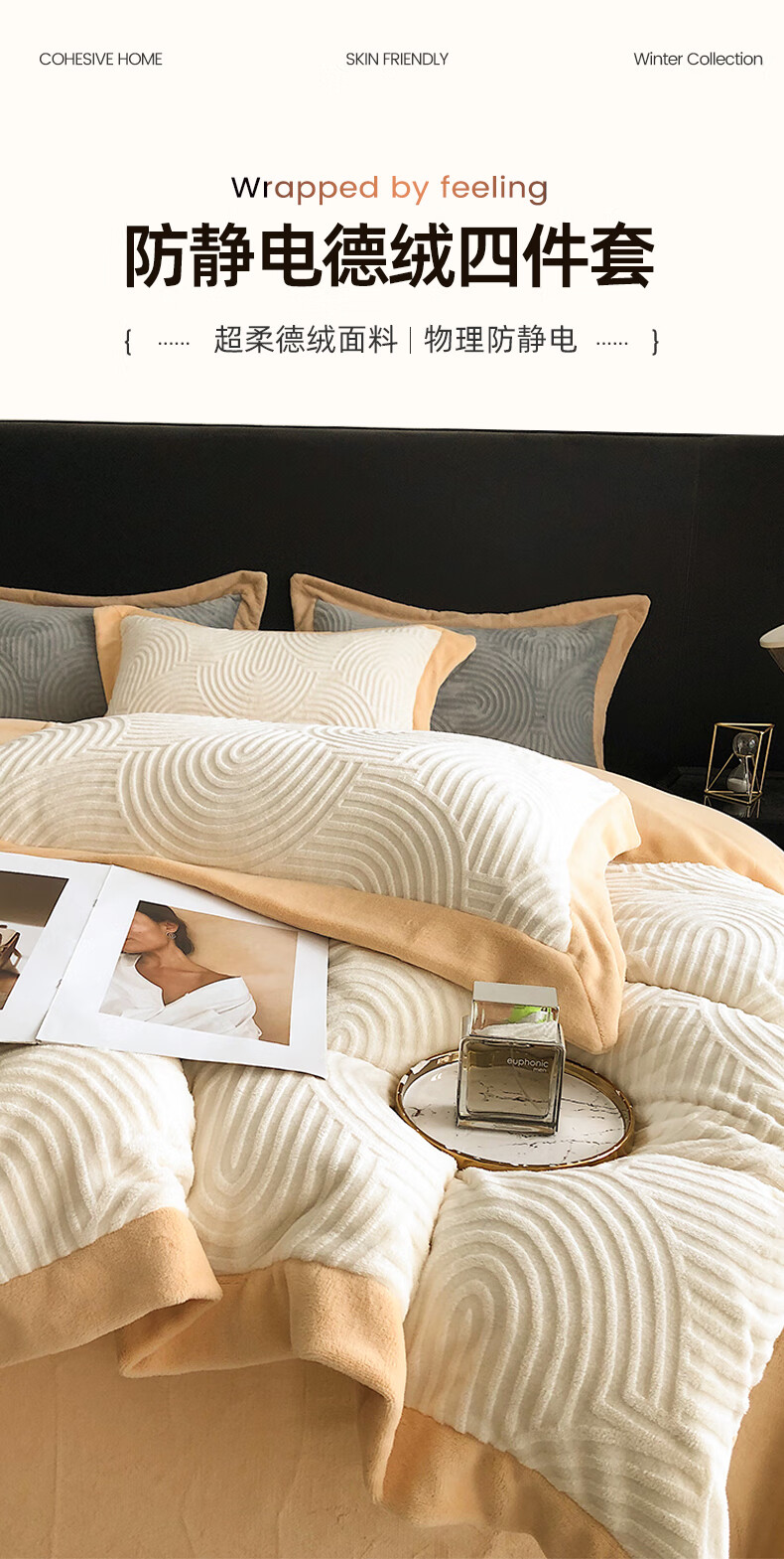 红秀世纺 防静电德绒四件套 高级米HX2308-T002
