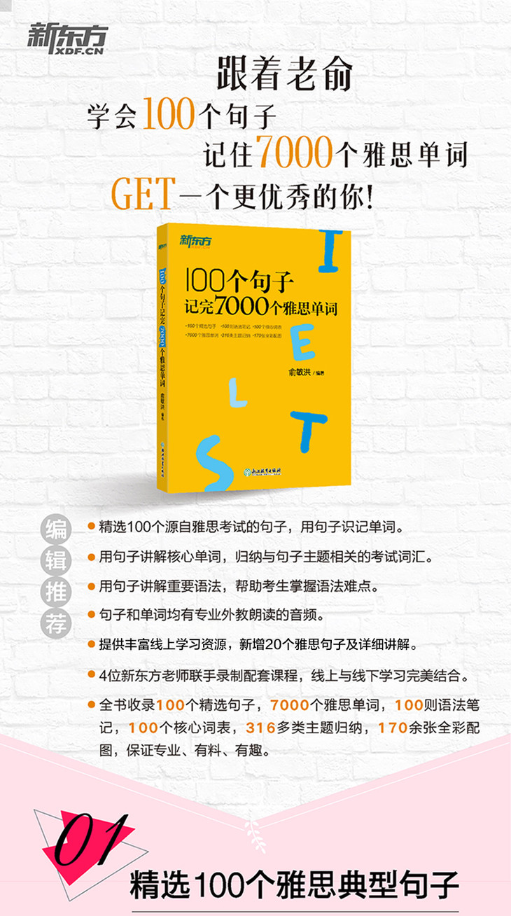 【新东方】100个句子记完7000个雅思单词 IELTS备考复习核心分类学习背单词汇语法长难句速记书籍 俞敏洪网课 英语