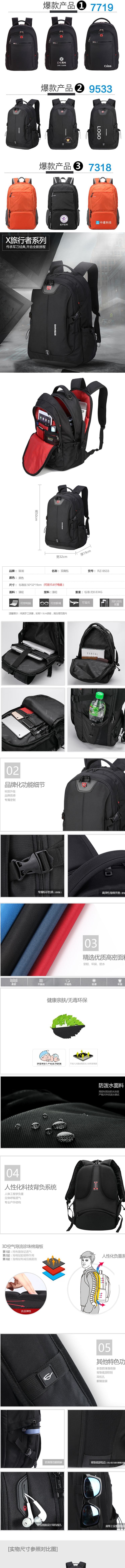 瑞制Swimade 笔记本电脑包瑞制品牌黑色双肩包男女学生书包户外运动休闲男包礼品定制9533黑色【超值人气】