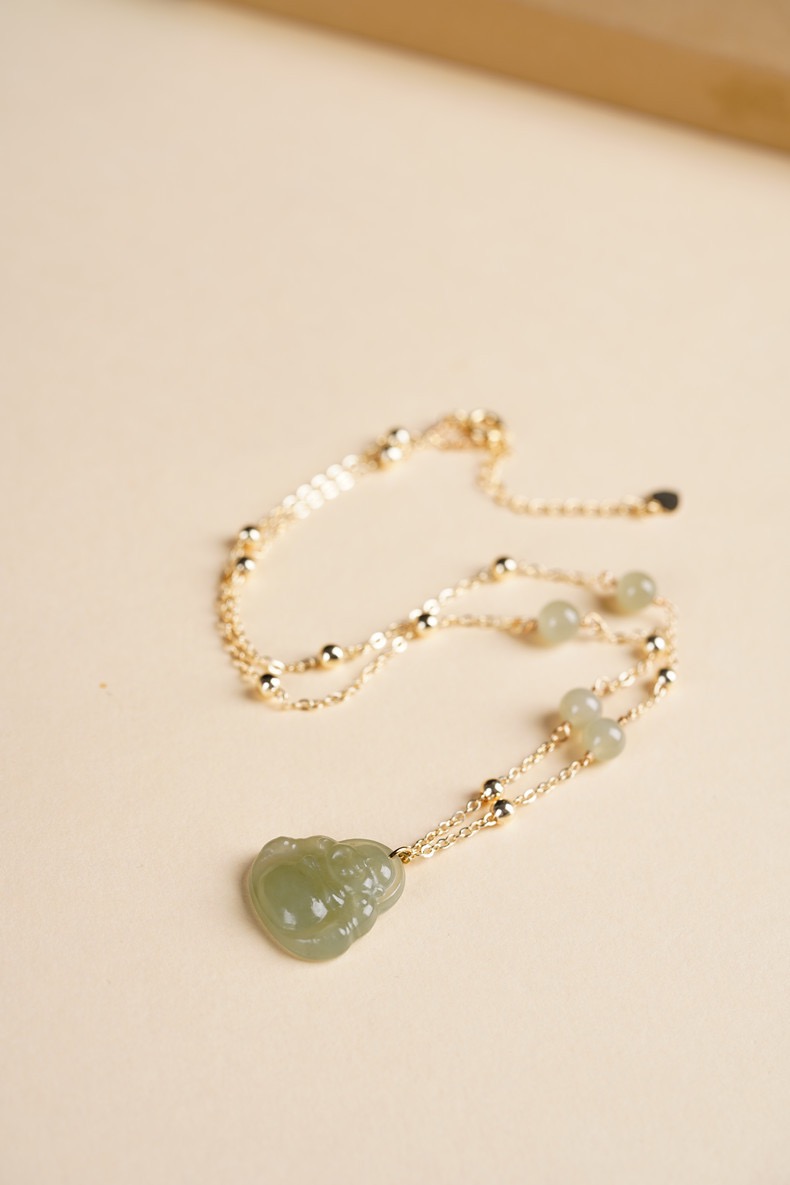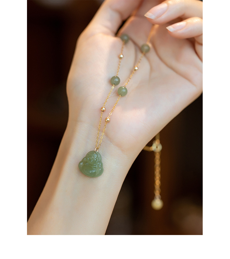 【尺寸】佛公约2cm,和田玉珠约0.5cm,链长40+4cm