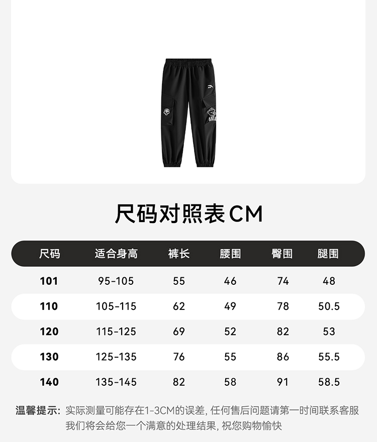 安踏儿童男小童运动长裤2025冬季新款舒适亲肤儿童海底小纵队裤子352549505