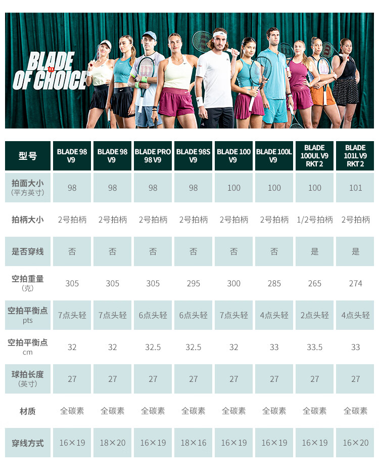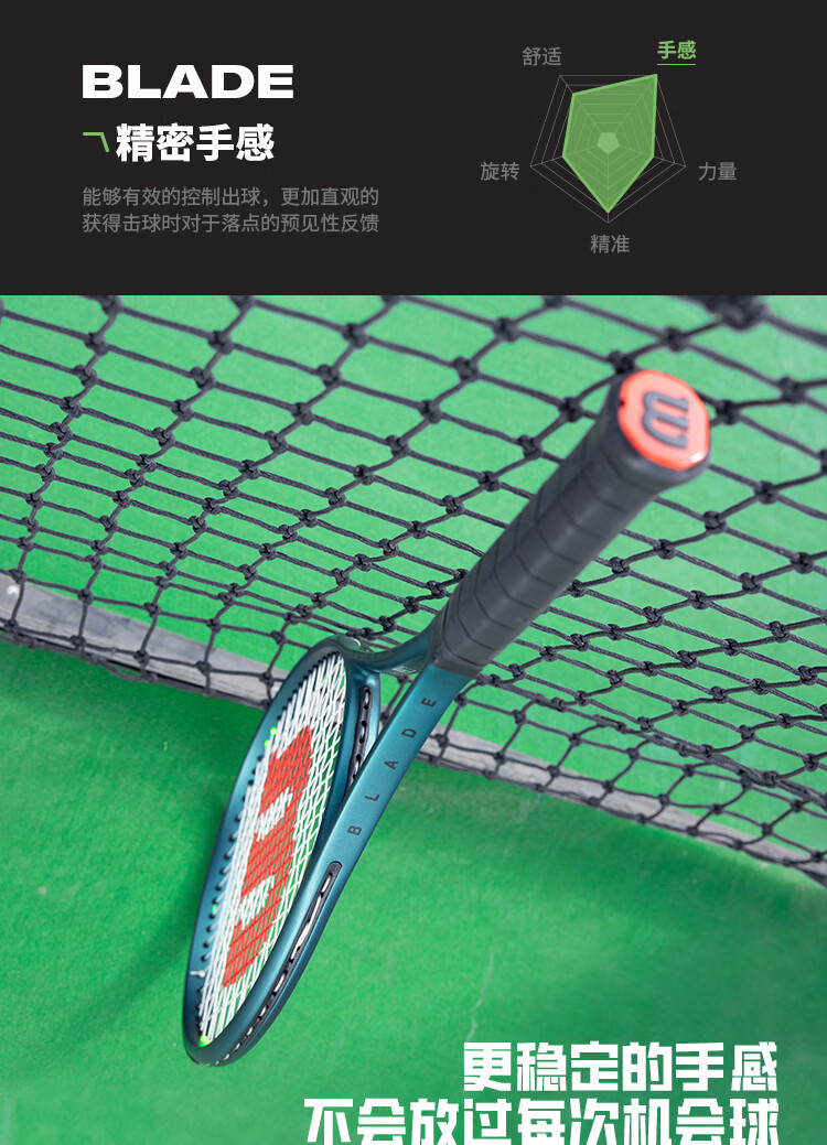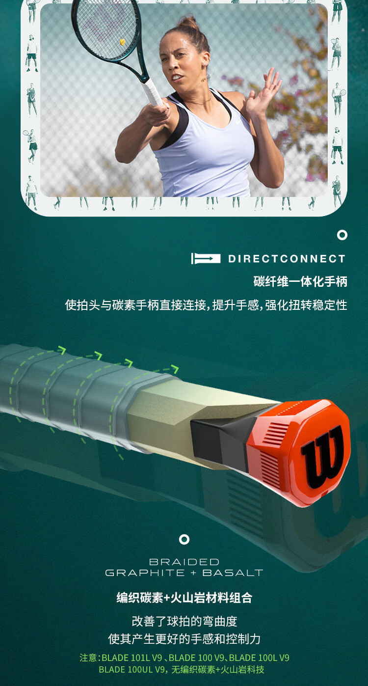 威尔胜(Wilson)BLADE V9系列萨巴伦卡同款全碳素一体专业单人网球拍WR149811U2