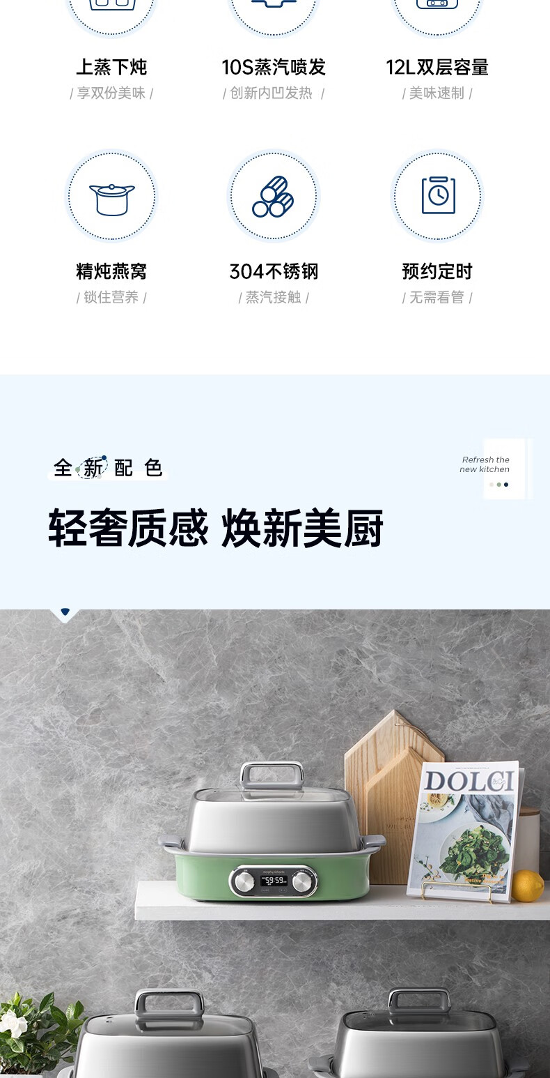 Morphy Richards摩飞极速蒸锅 MR1168双层 绿色/白色/蓝色