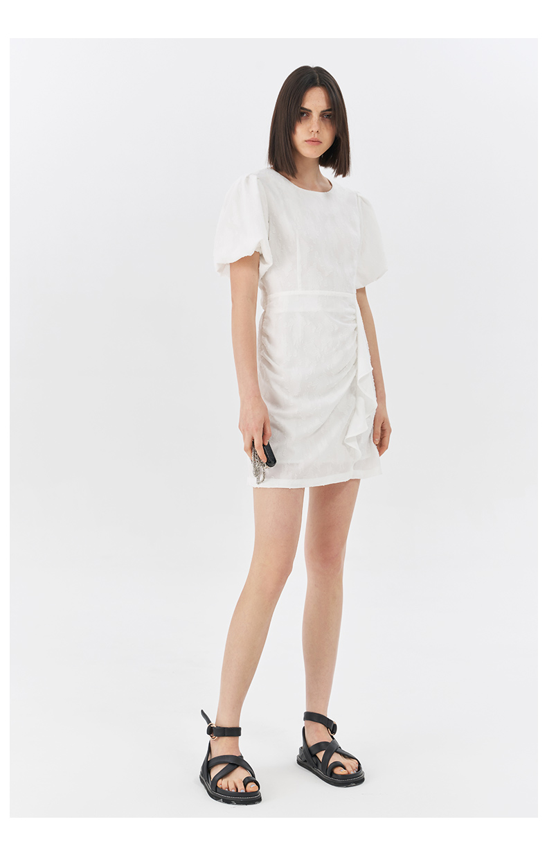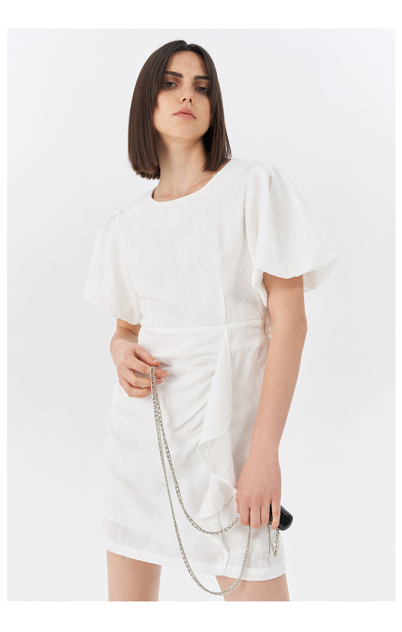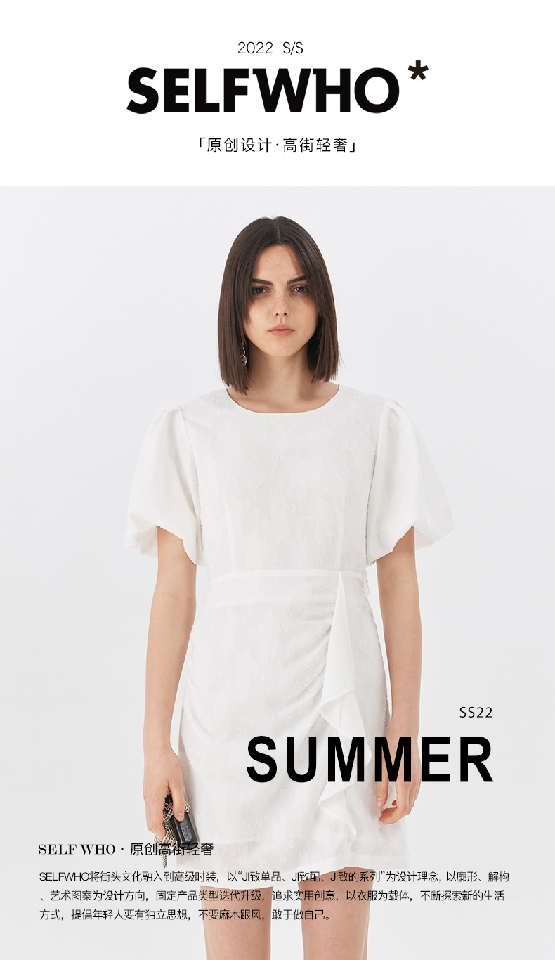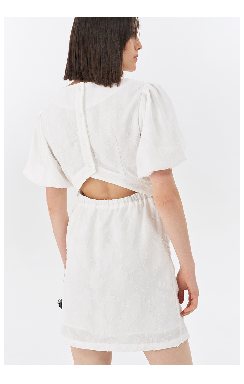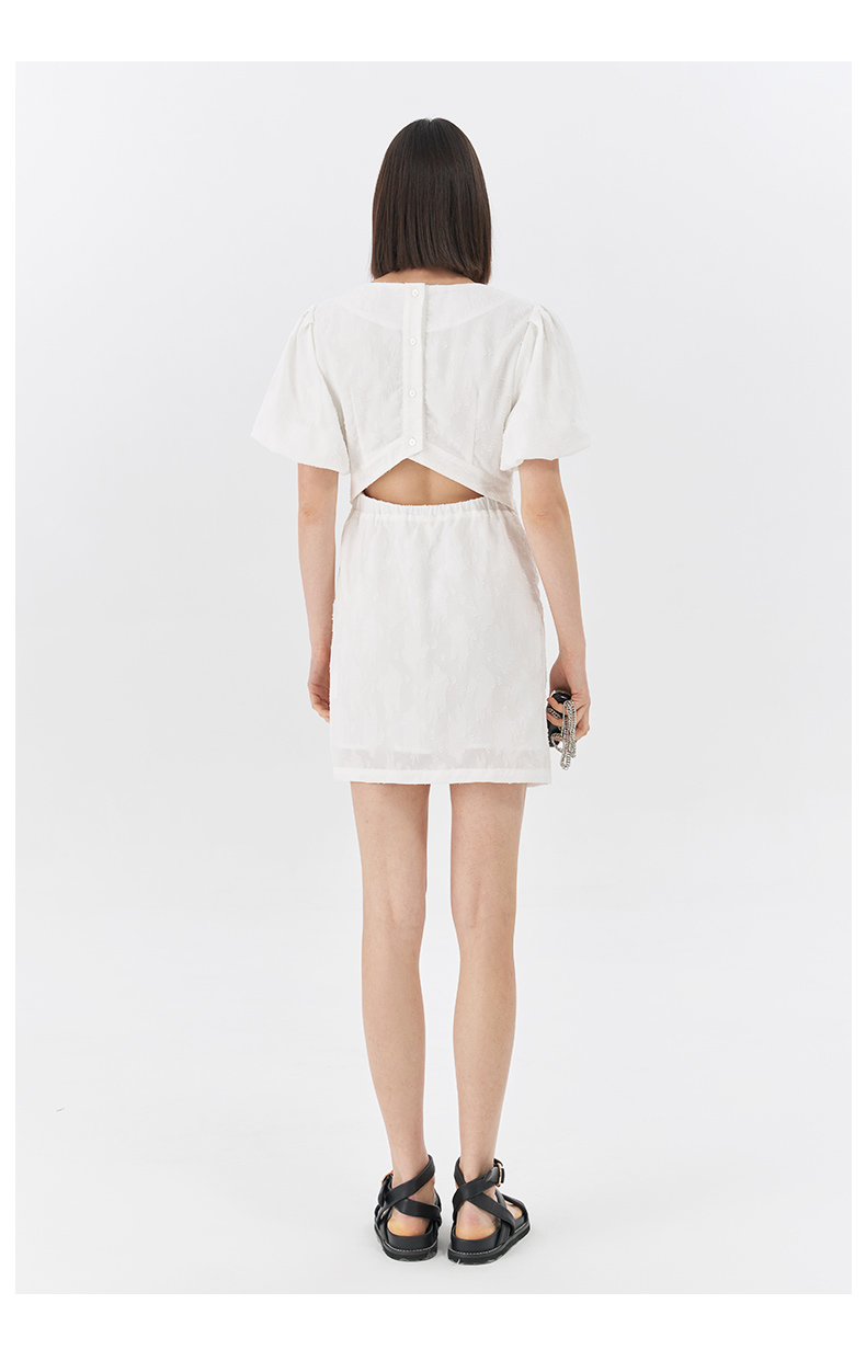 Self Who雪纺提花抗皱初恋小白裙女淑女风背后镂空别致连衣裙