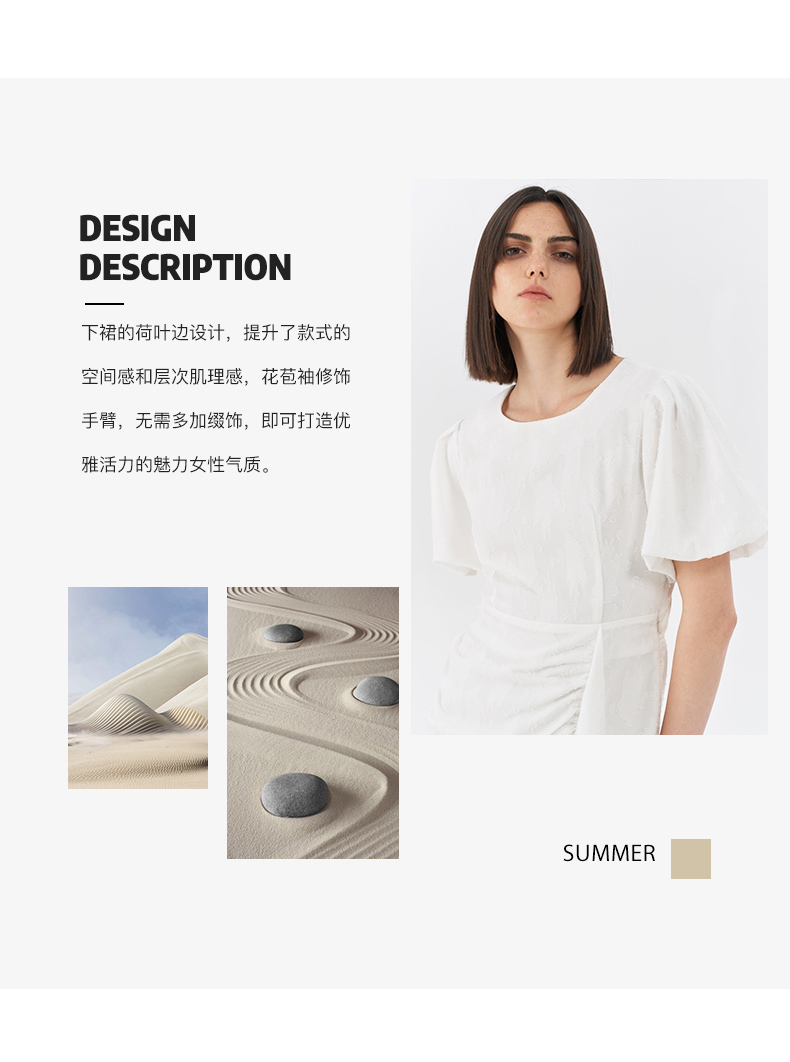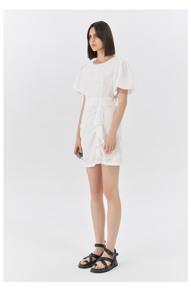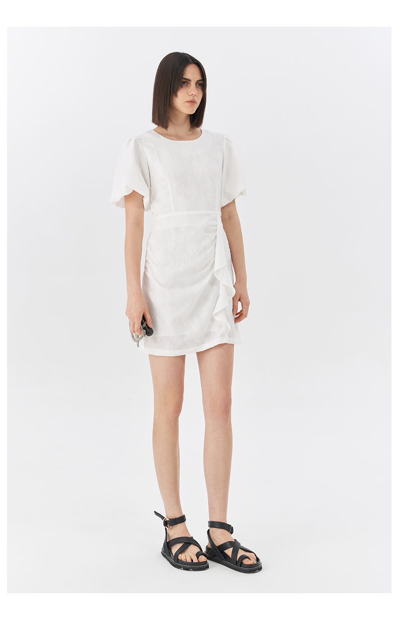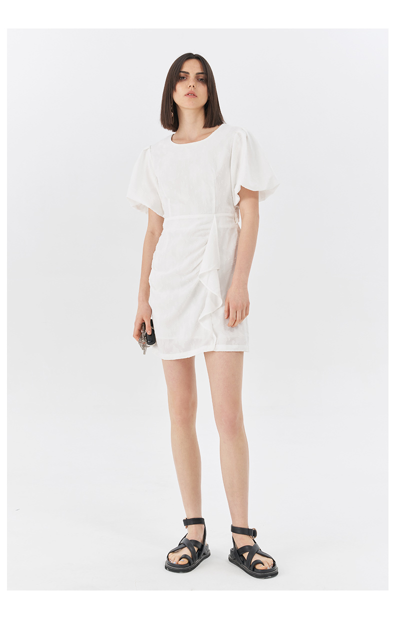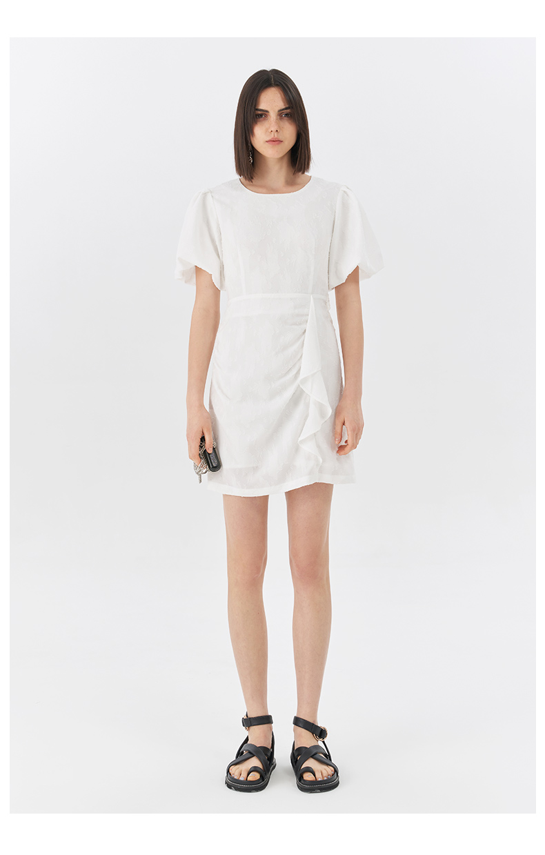 Self Who雪纺提花抗皱初恋小白裙女淑女风背后镂空别致连衣裙