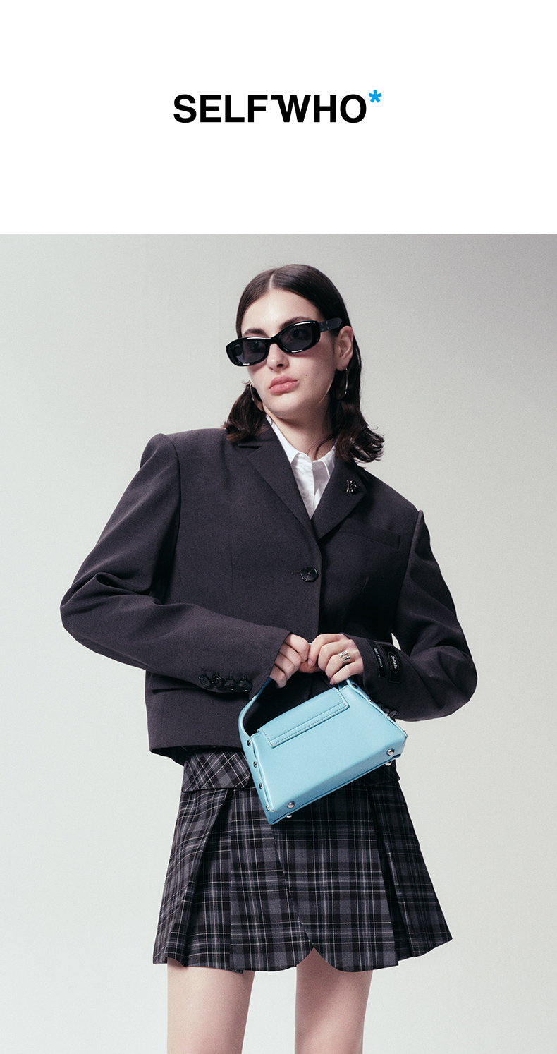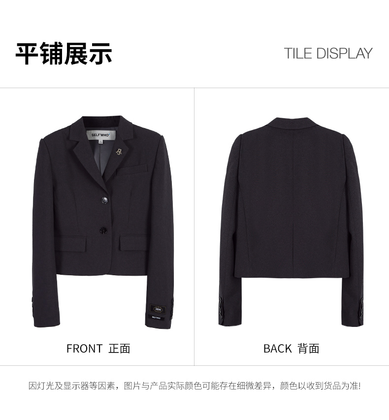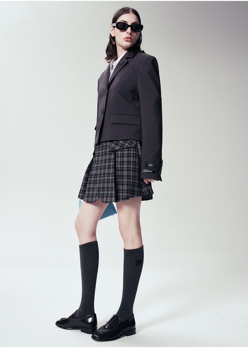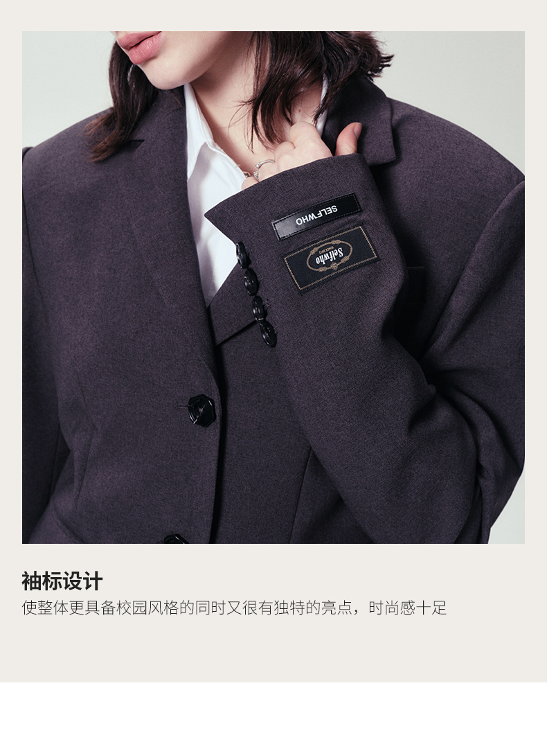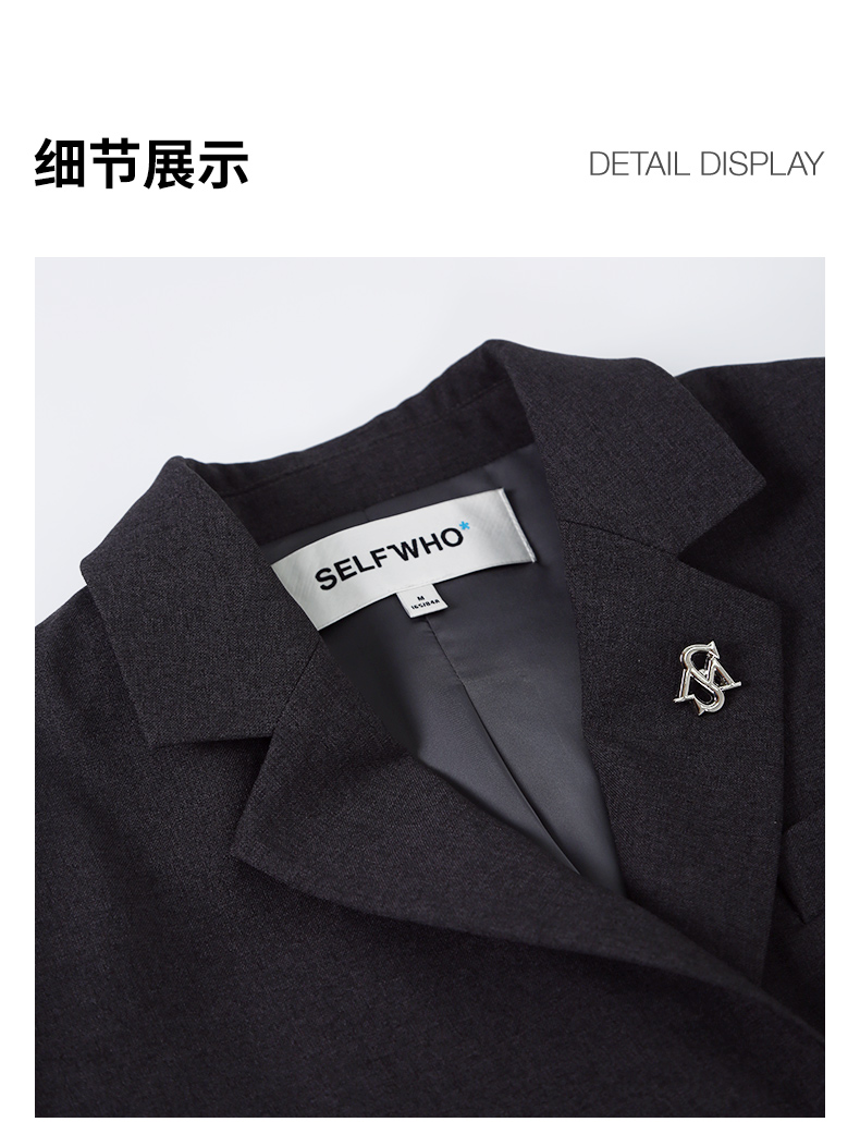 Self Who静谧灰西装外套女2024早春新款小个子短款设计高级感上衣