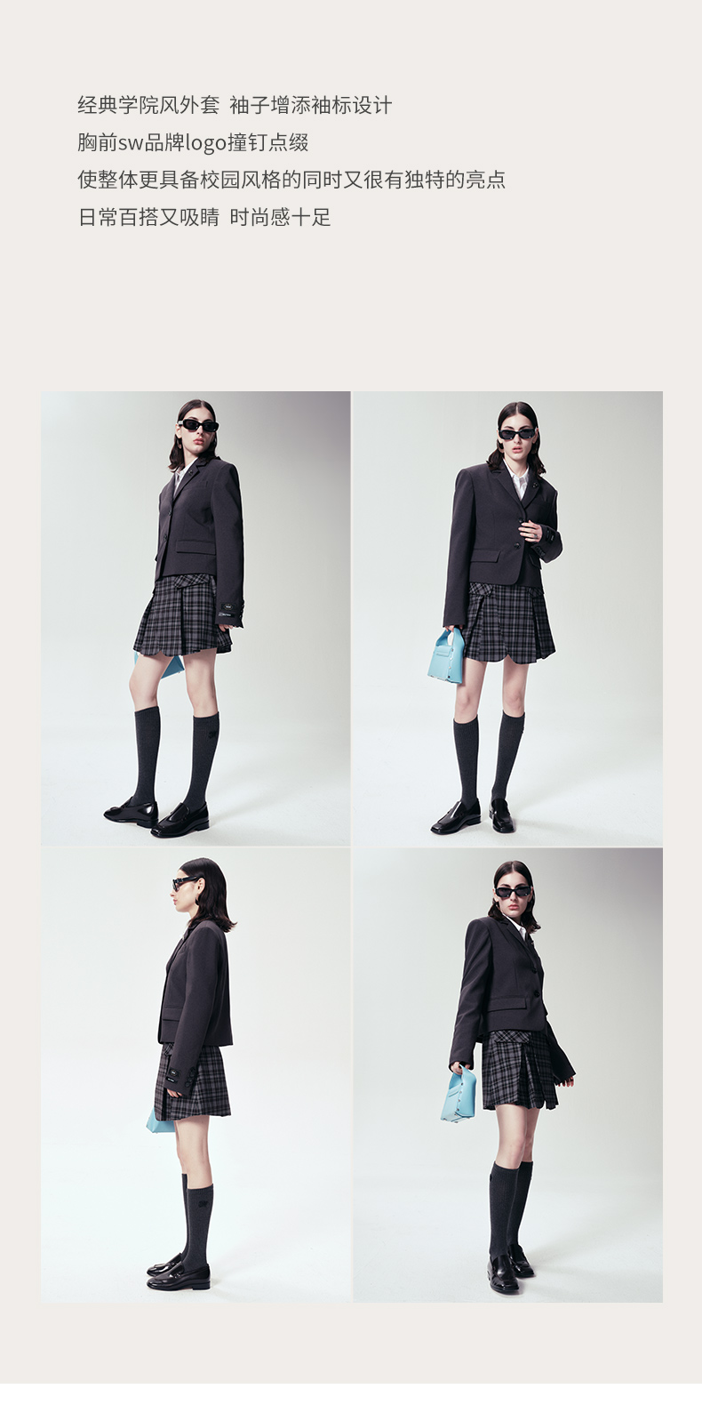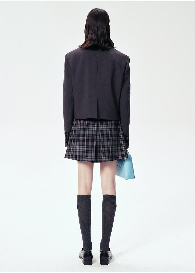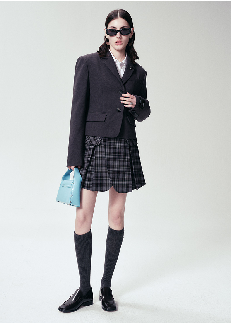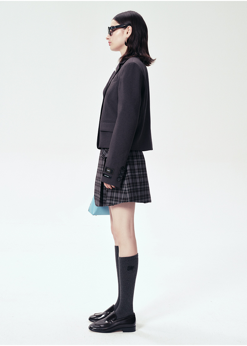 Self Who静谧灰西装外套女2024早春新款小个子短款设计高级感上衣