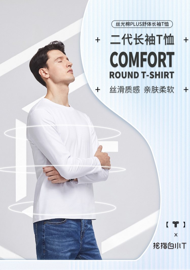 拇指白小T丝光棉PLUS舒体长袖T恤