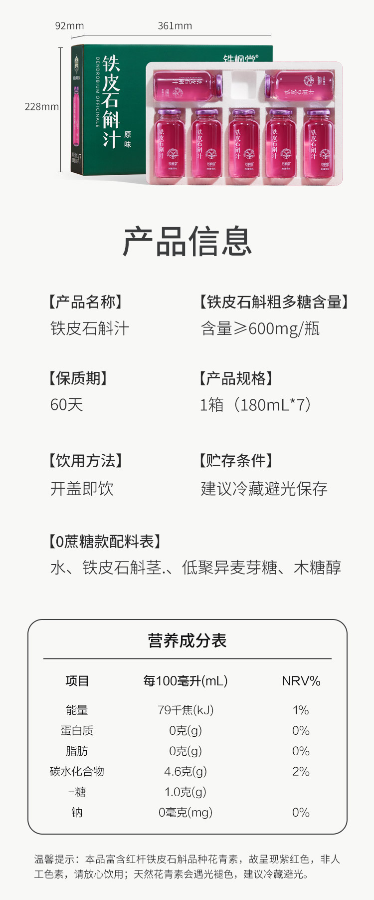 优选丨铁枫堂铁皮石斛汁 宽汤久熬更滋养 林下种植3年生雁荡山铁皮石斛 配料表纯净180ml*7瓶