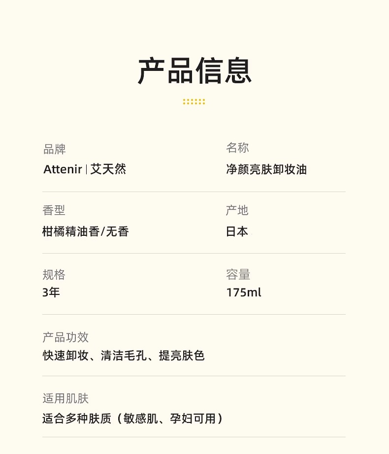 Attenir 艾天然 净颜亮肤卸妆油 175ml 多规格