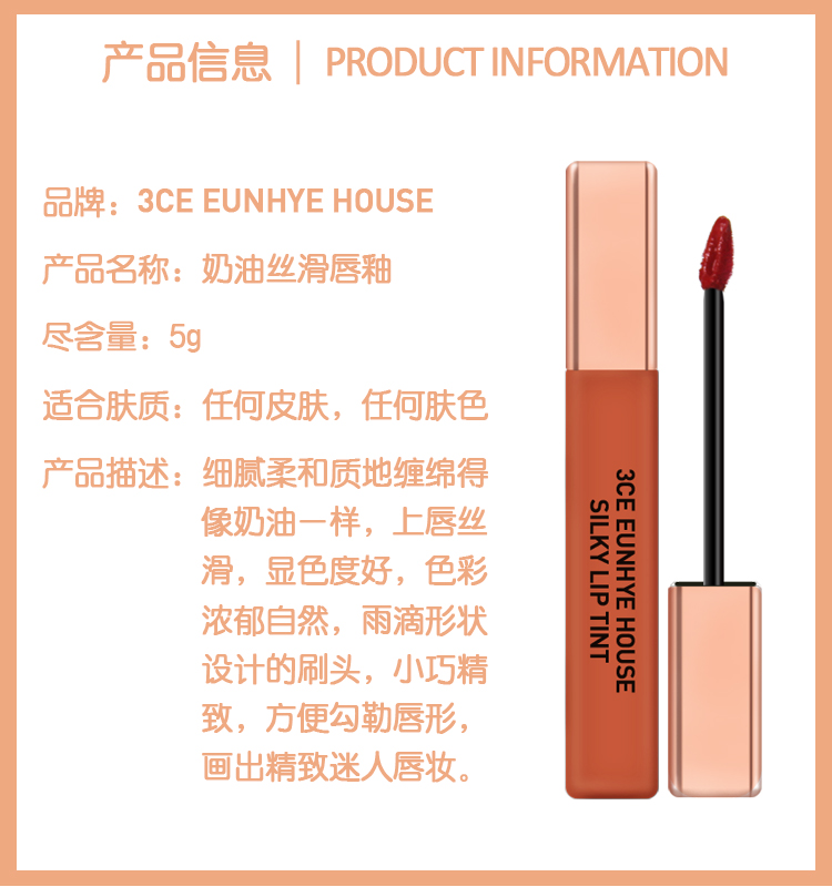【保税仓】3CE三熹玉云朵唇釉铁锈红IMMANENCE4g