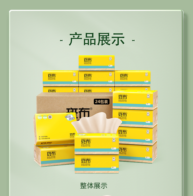斑布(BABO) 超韧抽纸面巾 纸柔韧亲肤 3层100抽*24包 DBCR100E24