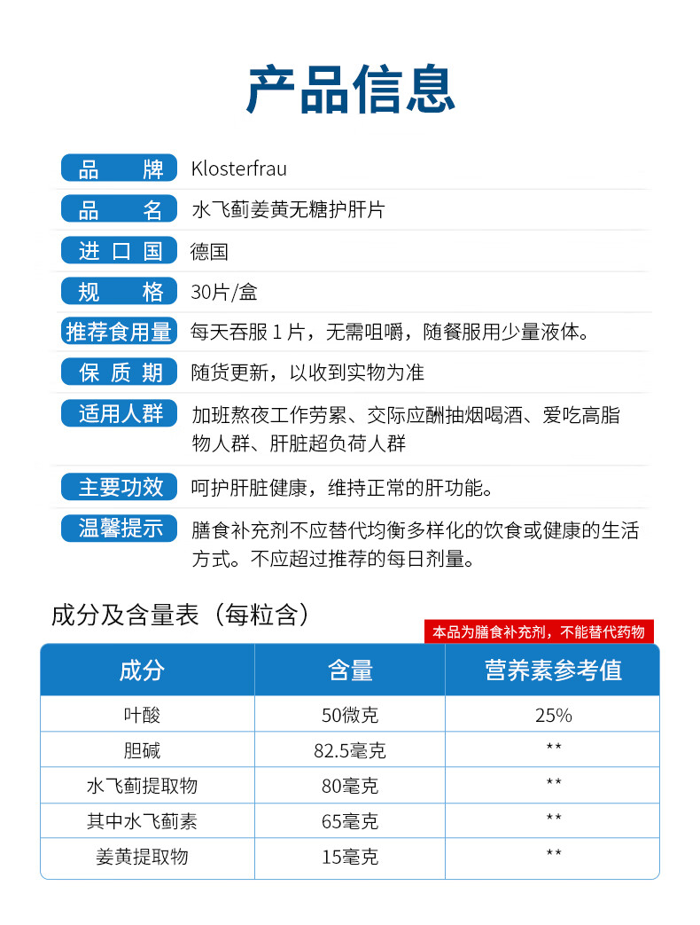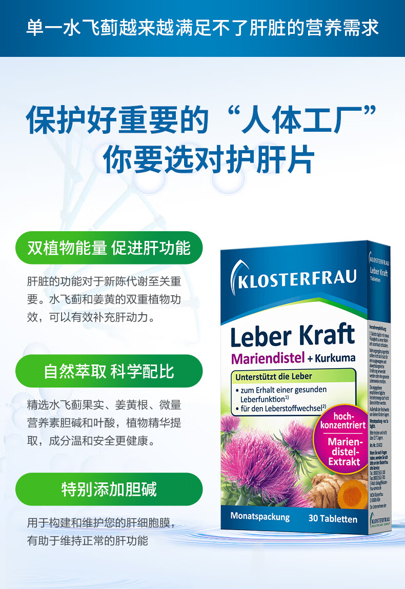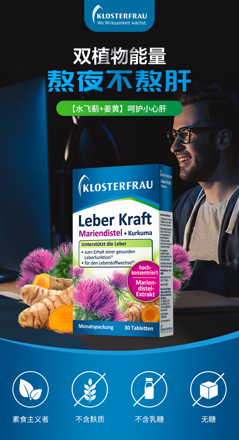 德国Klosterfrau修女水飞蓟姜黄植物片30片 效期27.3月