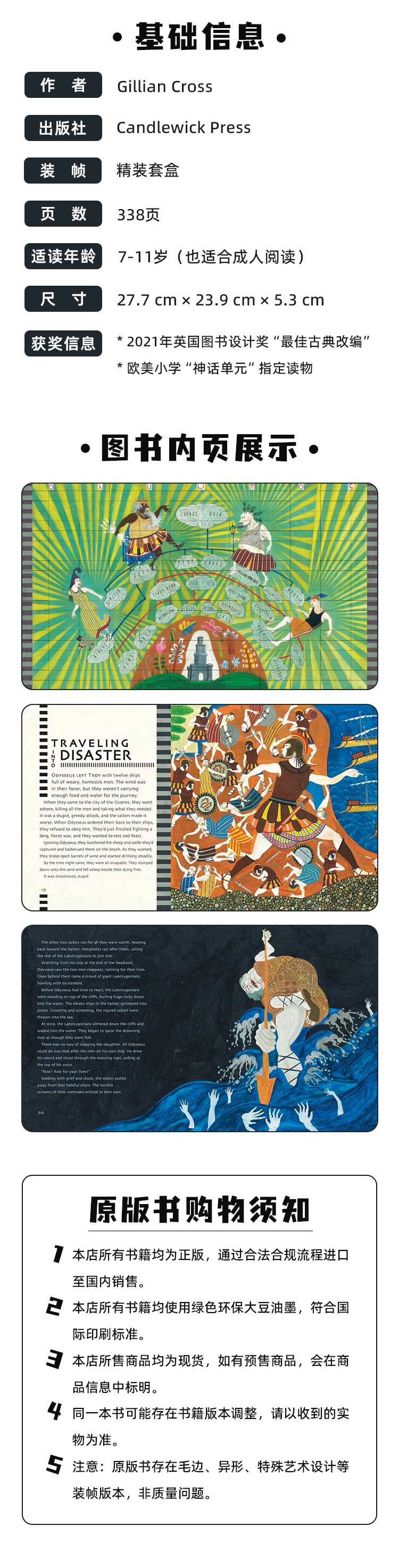 这套漂亮的荷马史诗盒装--由吉利安-克罗斯有力地重述,并由尼尔-帕克提供引人注目的插图--属于每个读者的书架。 史诗般的惊心动魄,荷马的两部古老经典已被无数次重温。Gillian Cross和Neil Packer的《伊利亚特》和《奥德赛》的精美版本,为荷马收藏家和尚未认识奥德修斯、阿基里斯或赫克托尔的读者提供了一套必不可少的书。描绘他们以及他们所召唤的诸神的行动的是生动的、有风格的插图,让人想起希腊的陶器,使这些大尺寸的书册具有额外的真实性和吸引力。从特洛伊城墙外的激烈战斗到奥德修斯花了十年时间才回家,这些对荷马史诗故事的大胆重述以简单和风格的方式讲述--非常适合图画重述的粉丝和神话爱好者。