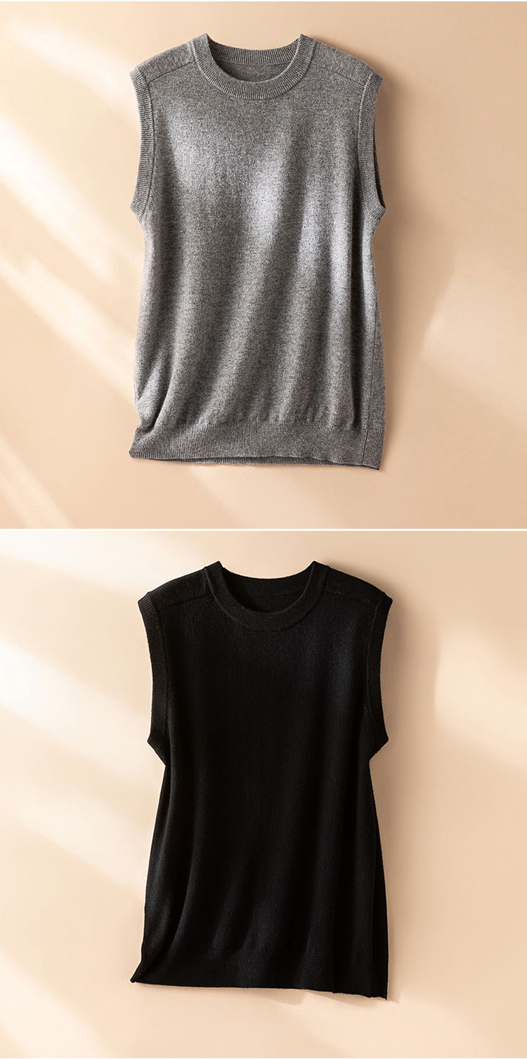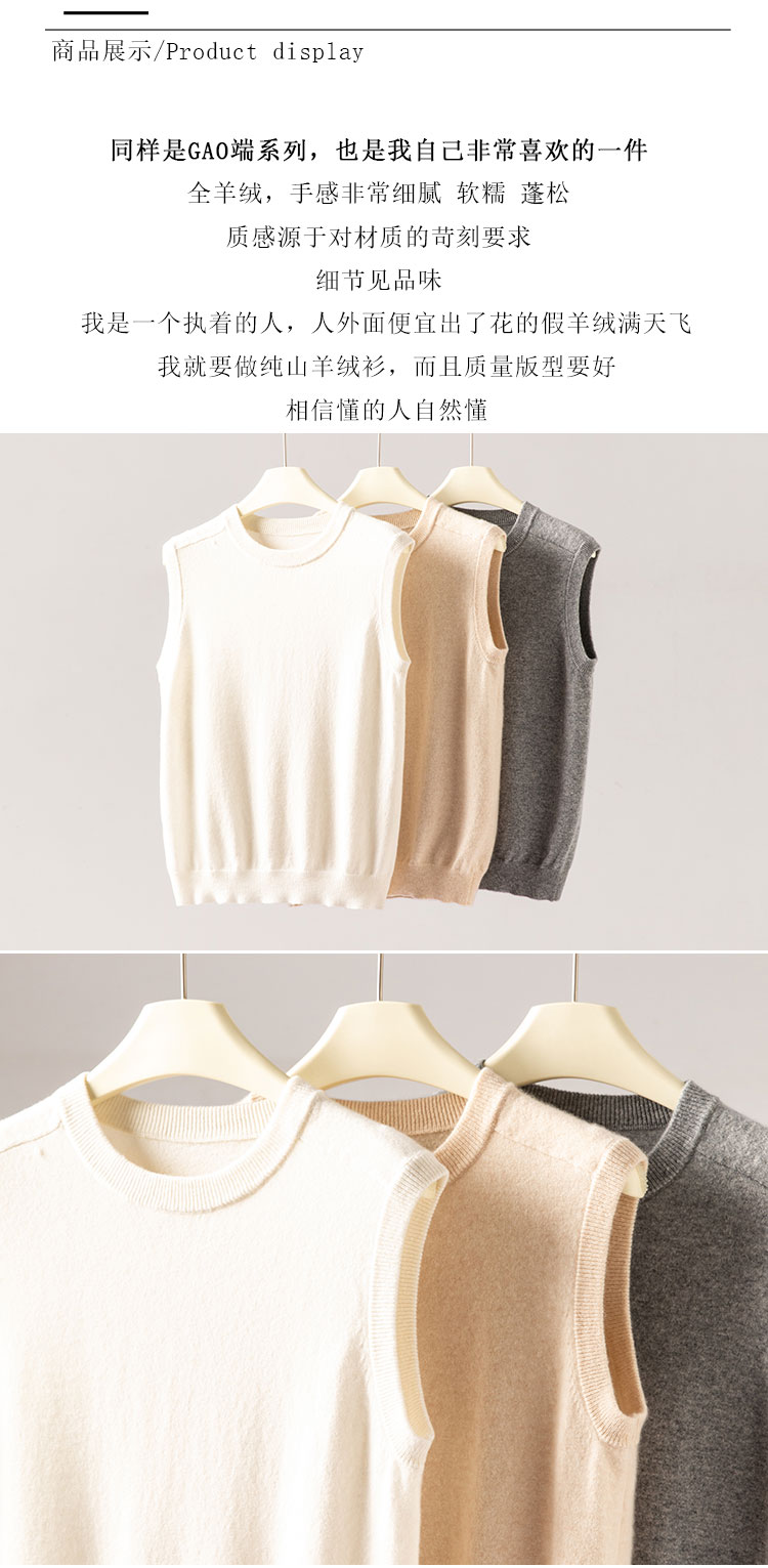 加分单品!圆领baby小山羊绒马甲女宽松纯羊绒坎肩针织背心