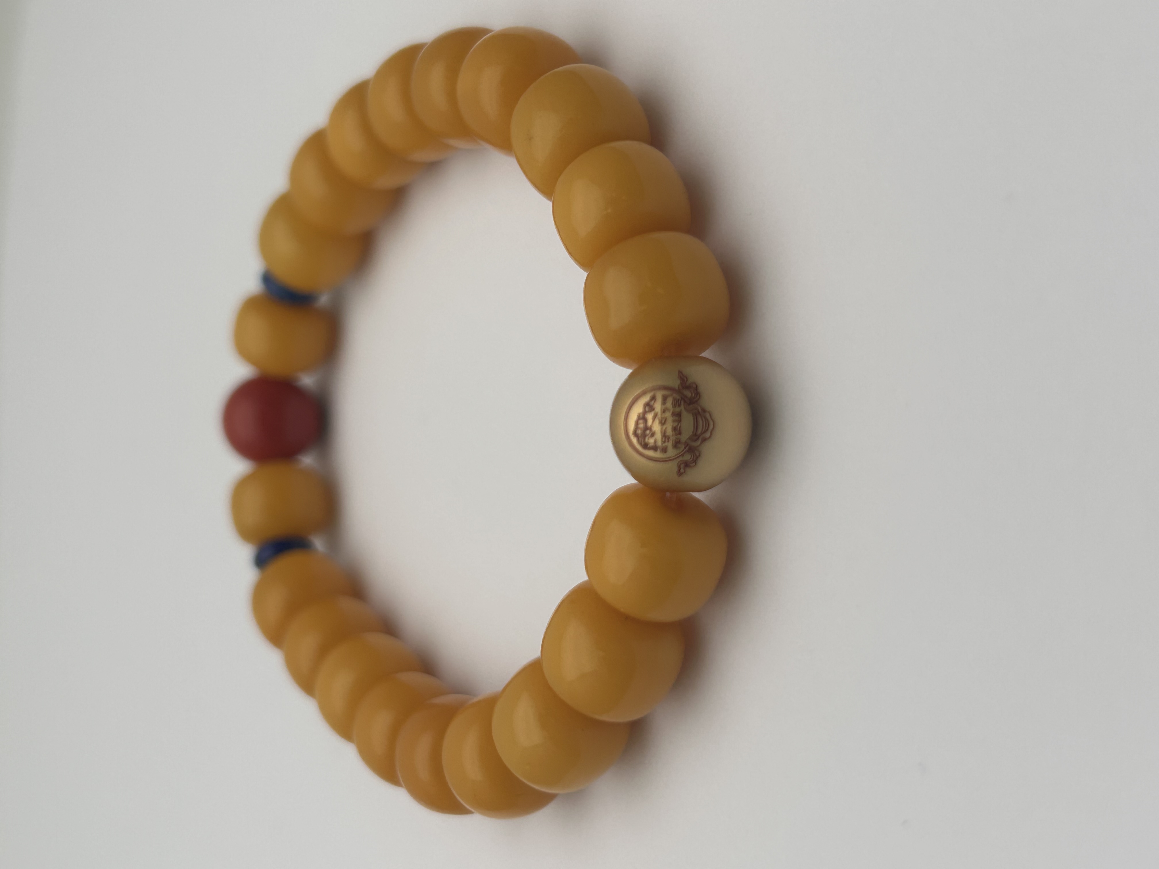 材质:蜜蜡、朱砂、布达拉宫银镀金logo珠
