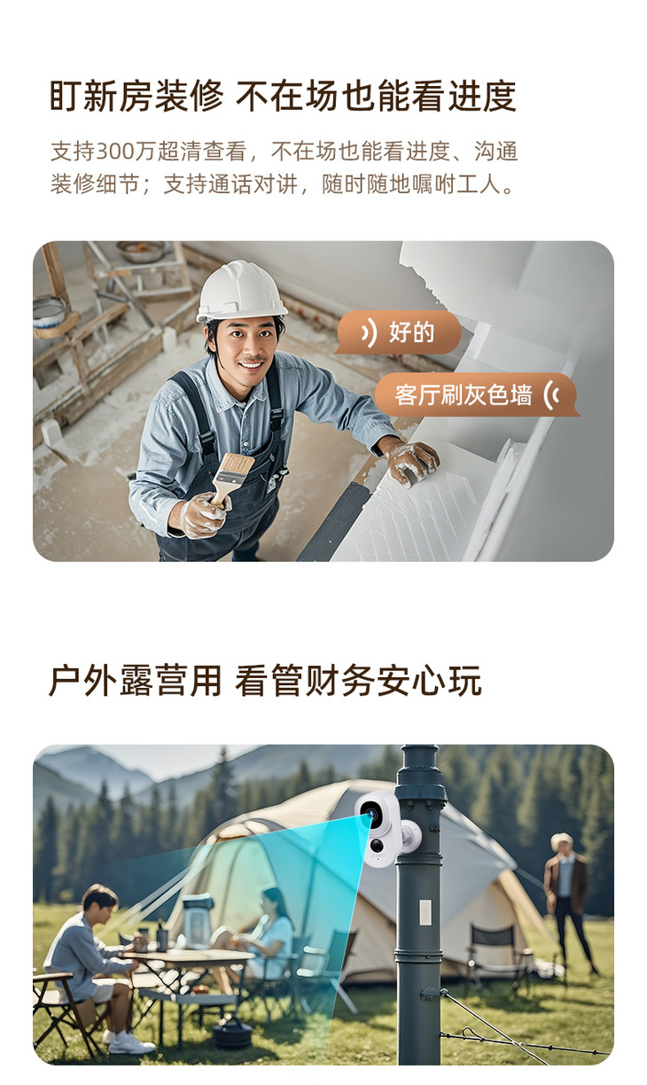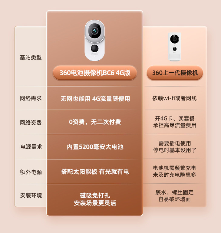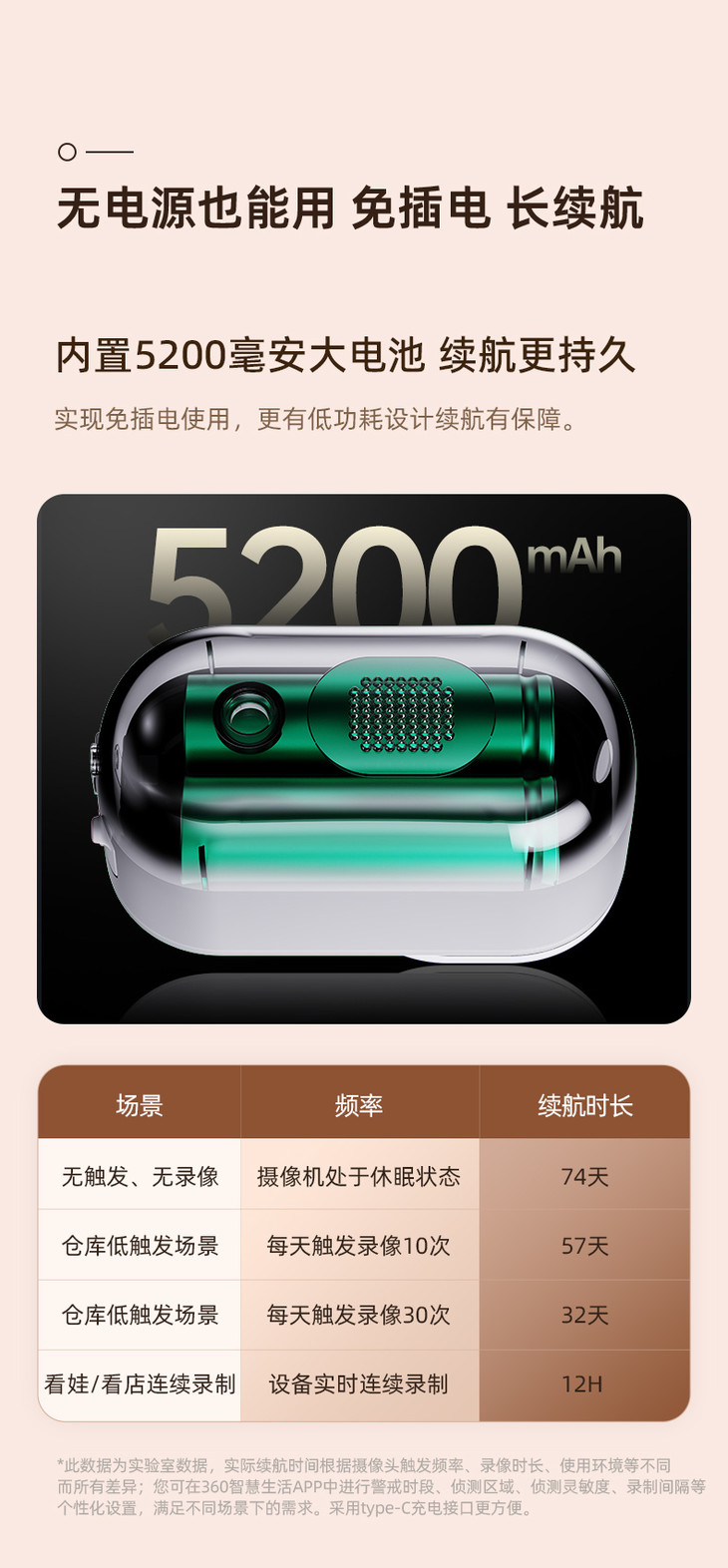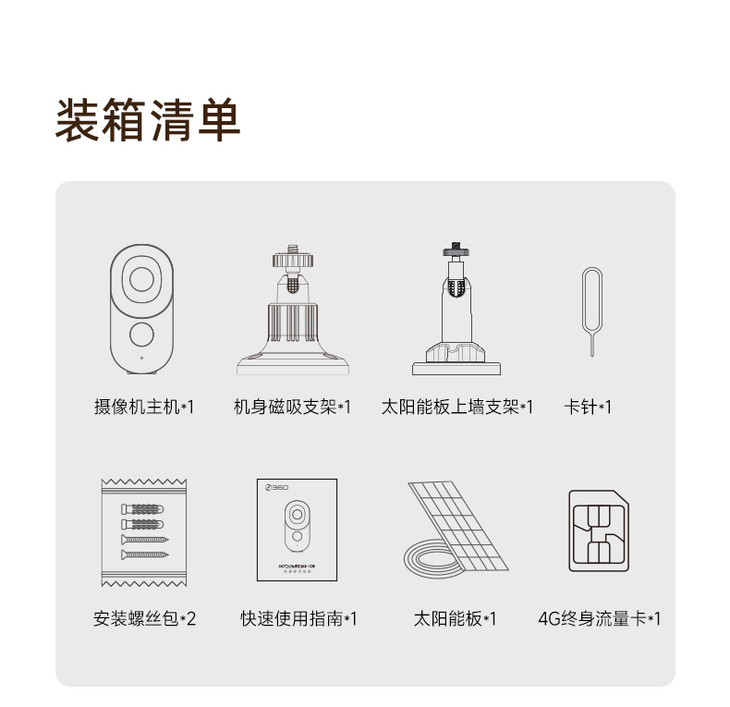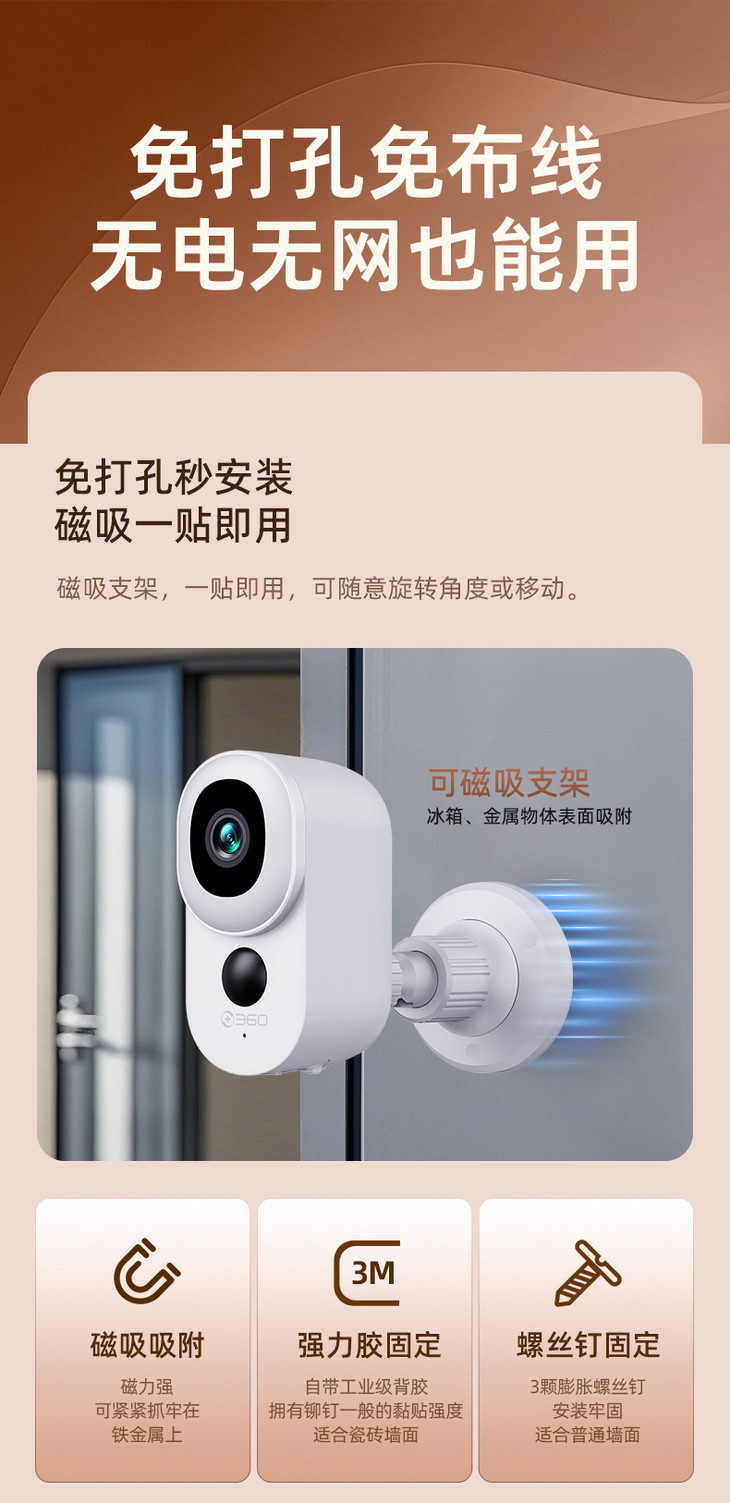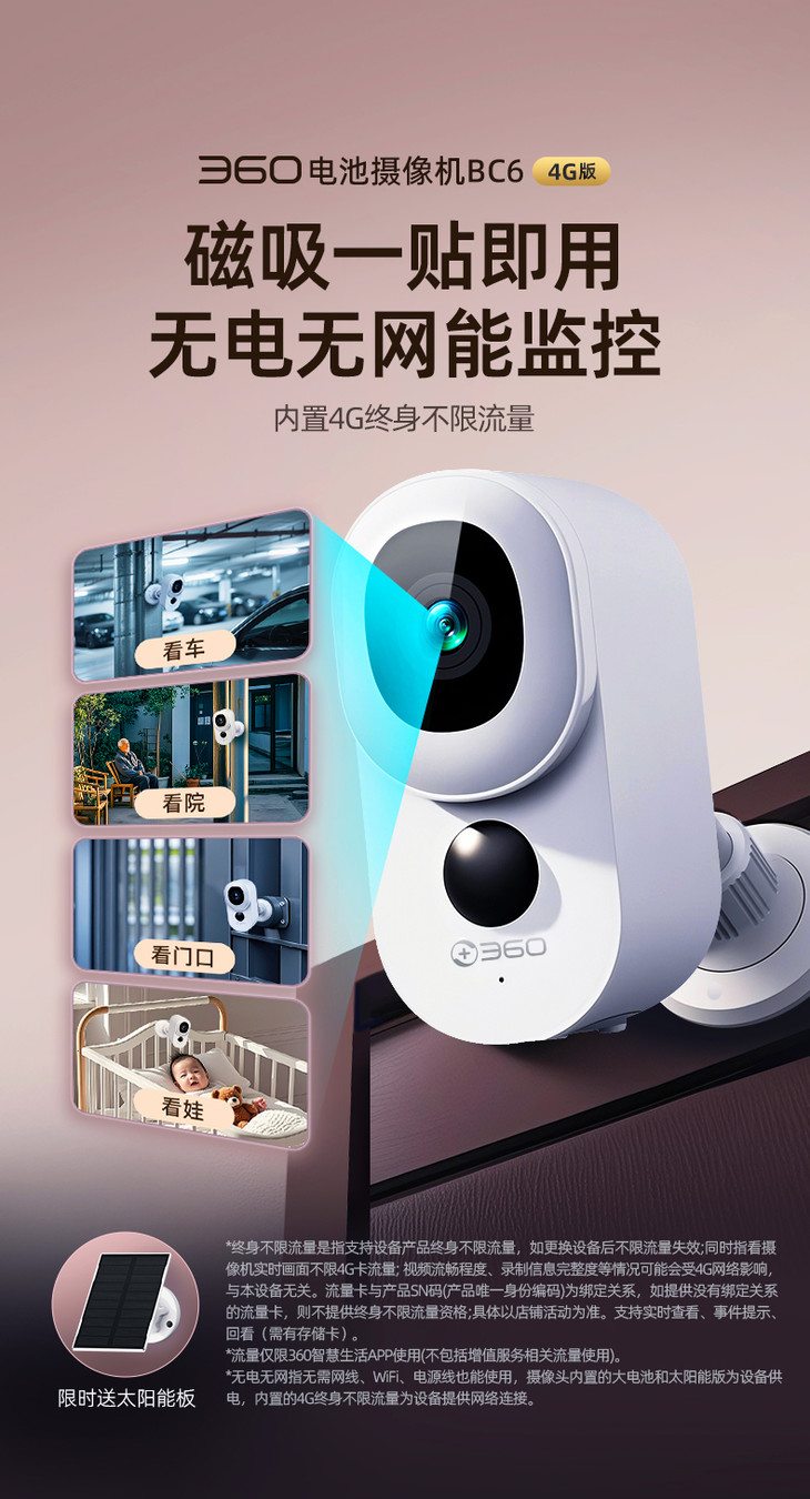 【专属】360电池摄像机BC64G版 内置4G终身不限流量 磁吸一贴即用 免打孔 10米智能全彩夜视