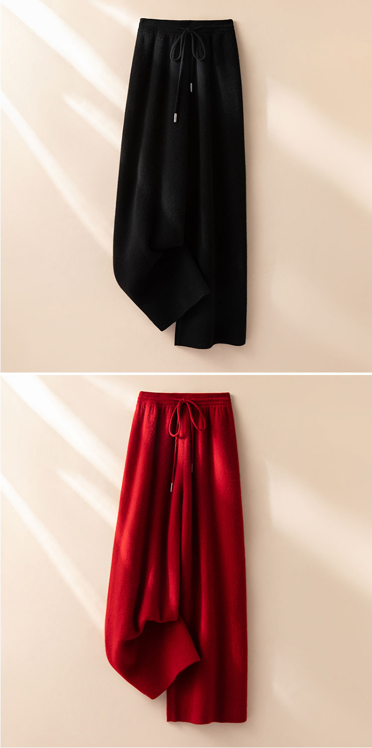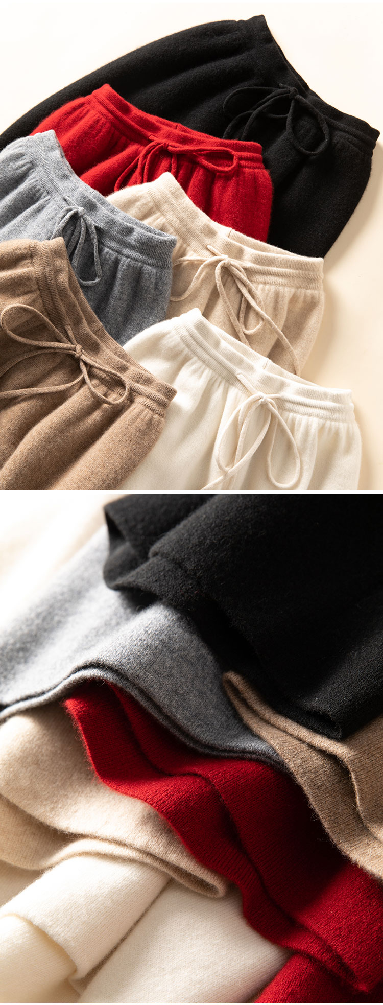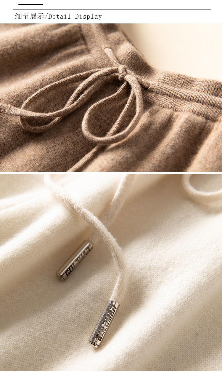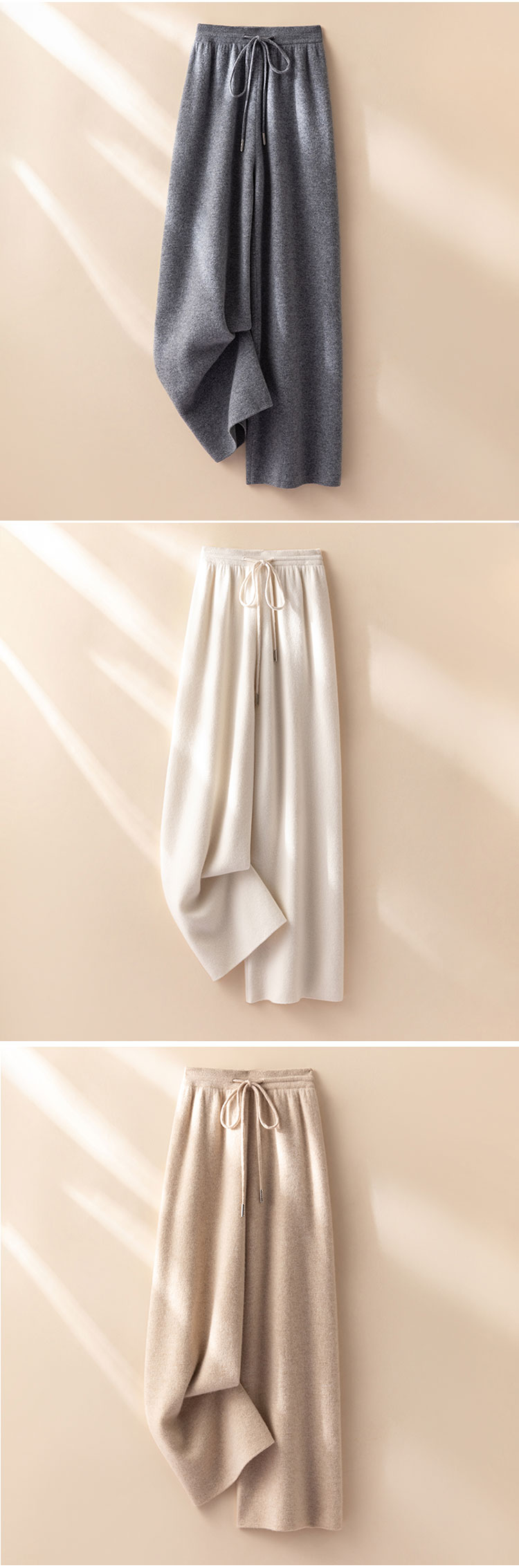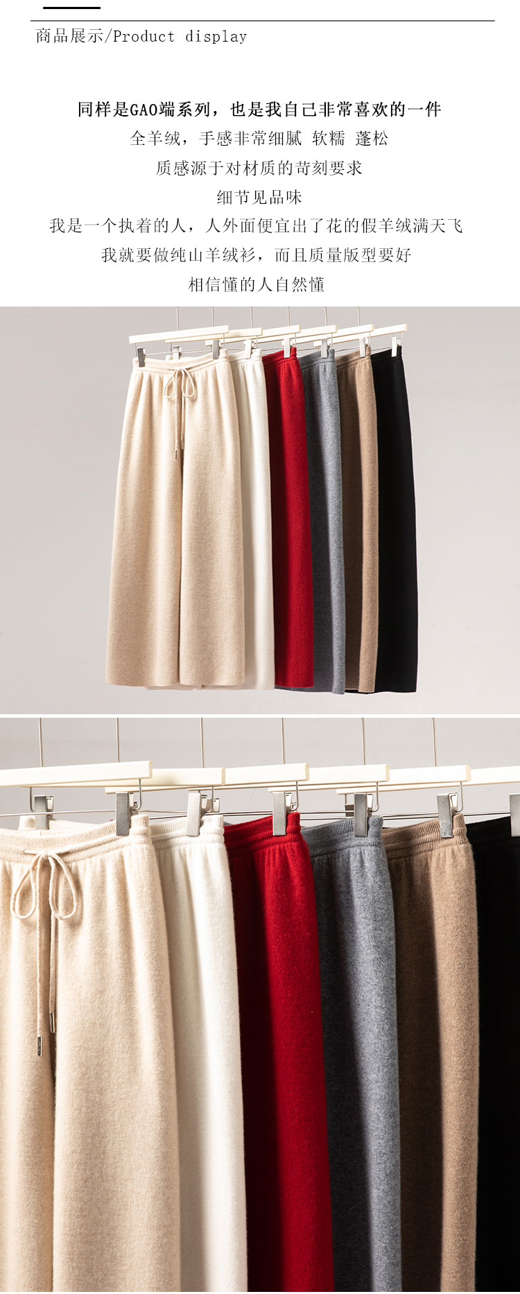 纯山羊绒质感满分垂坠感抽绳阔腿裤羊绒裤女