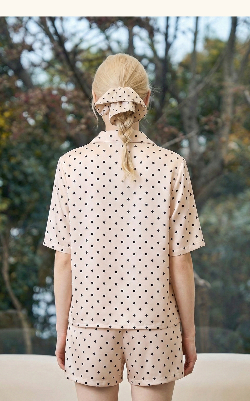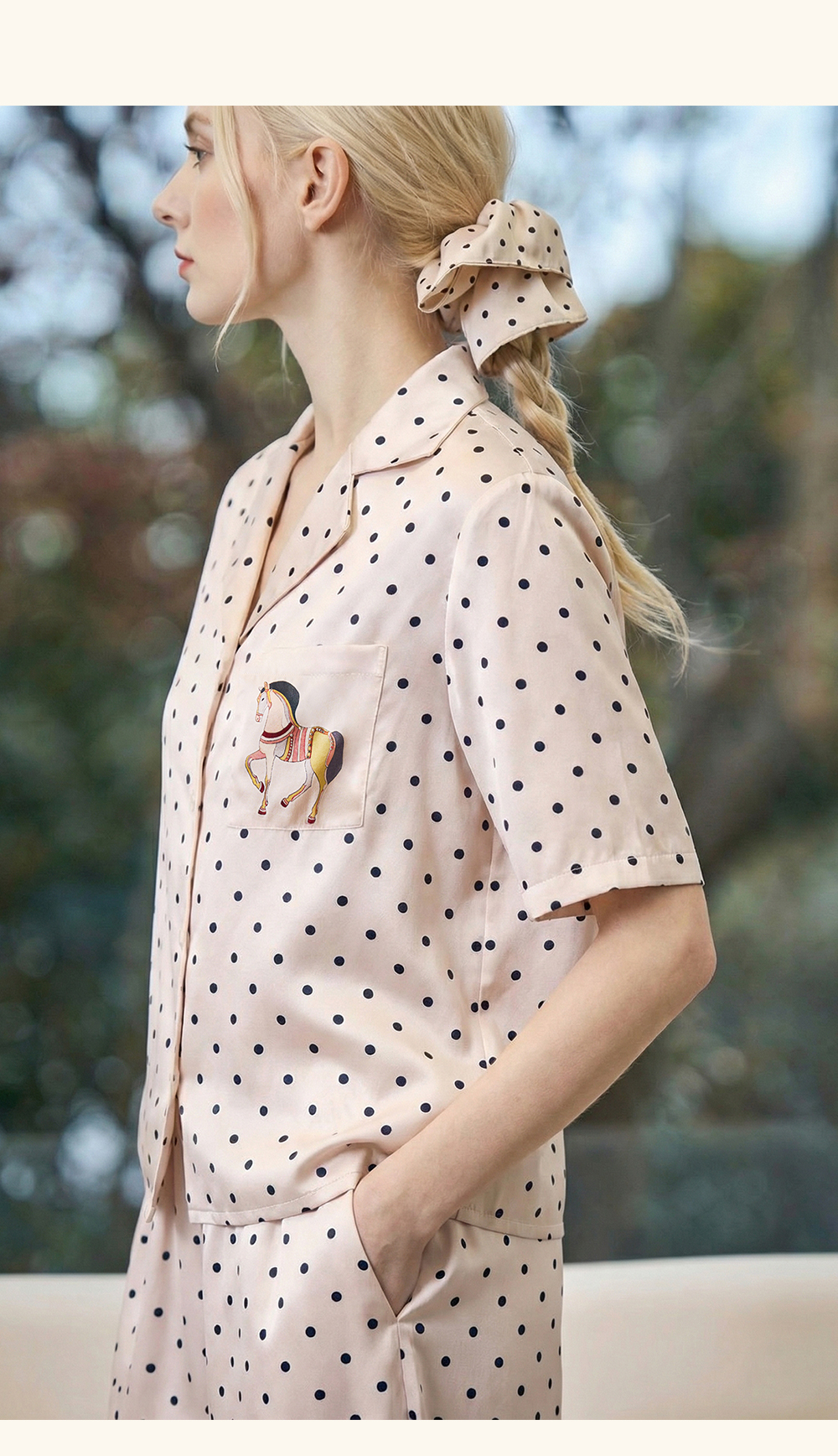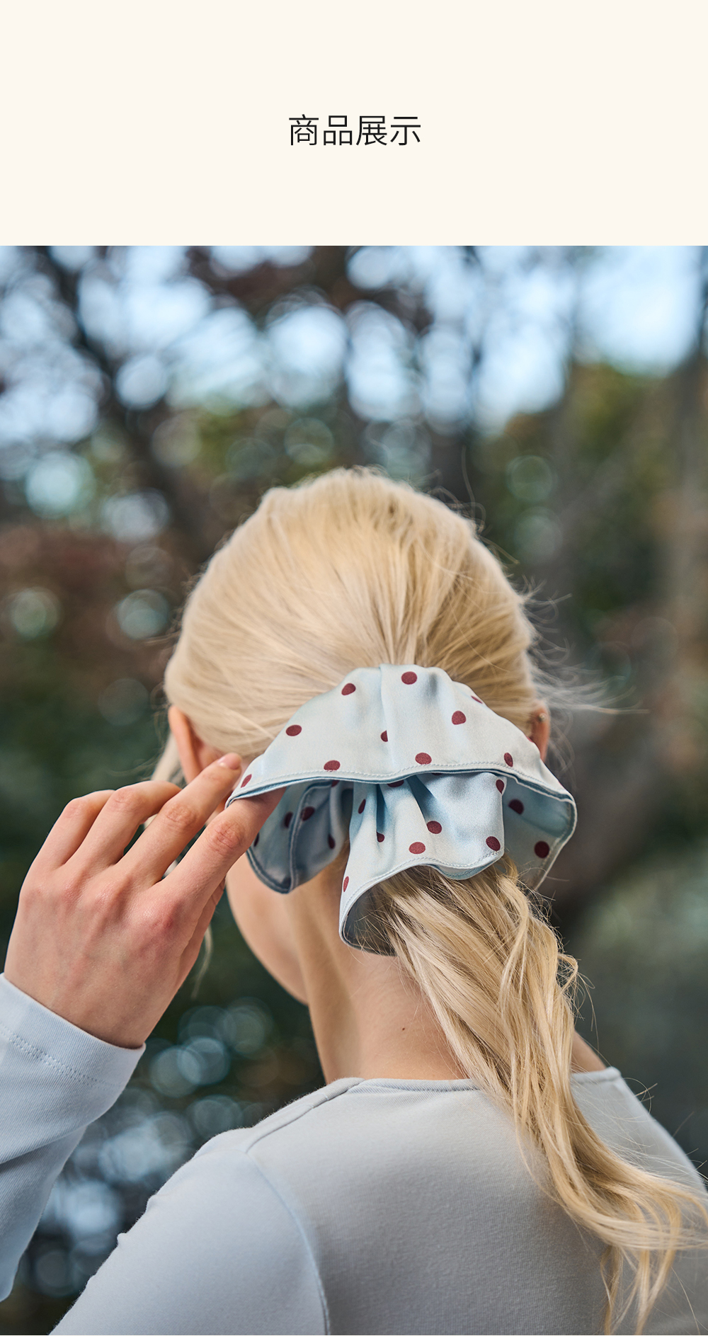 Solo seta22姆米真丝印花大肠发圈高级感慵懒风桑蚕丝波点印花