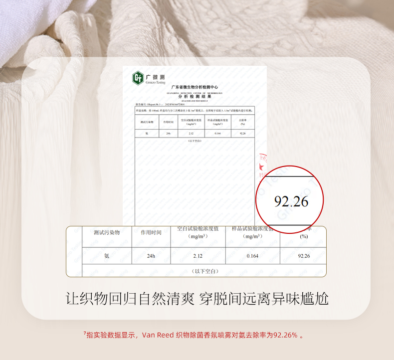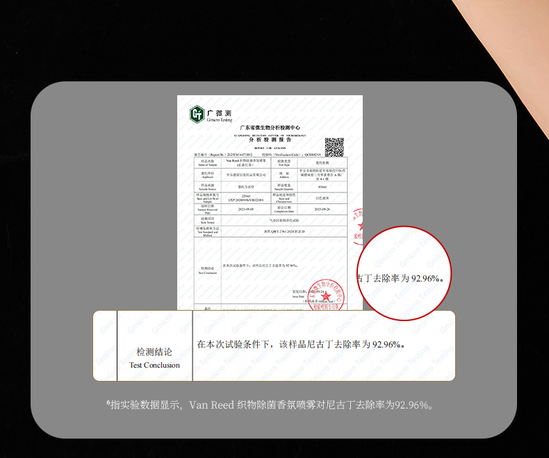 报告认证尼古丁去除率92.96%,喷洒祛尼古丁,居家、办公衣物无烟味,婴幼儿、宠物环境更友好