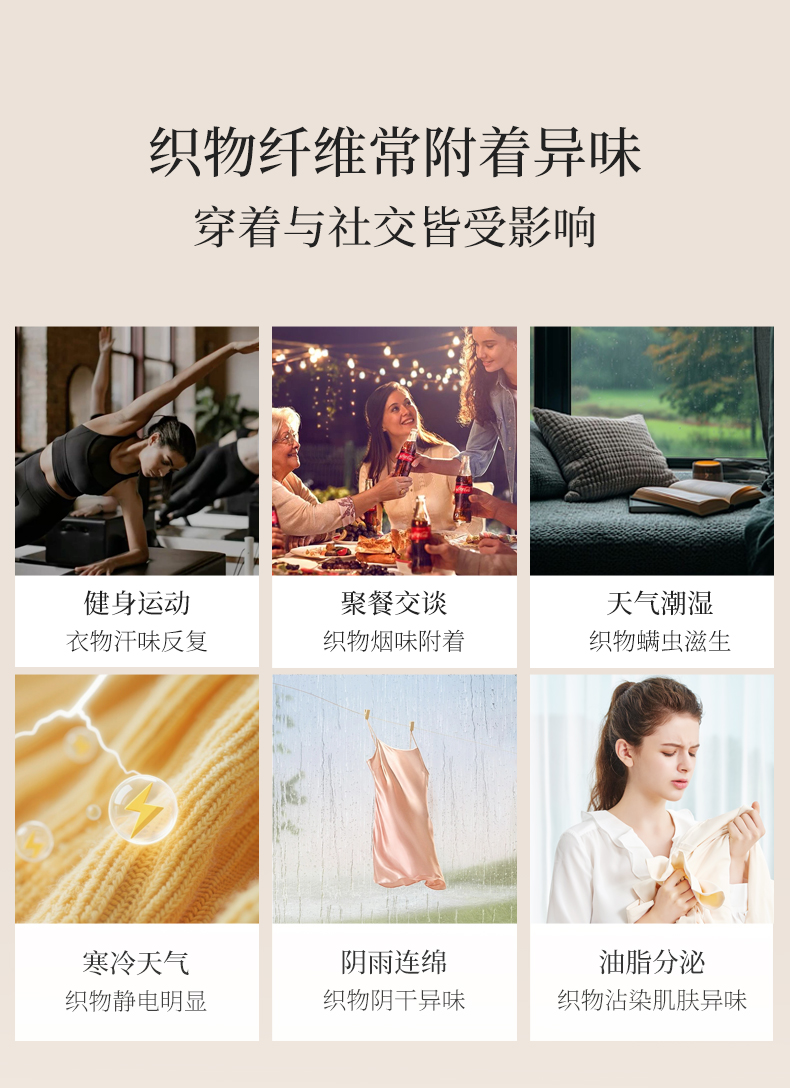 动后的汗味、聚餐沾染的烟味、雨天阴干的霉味,不仅影响穿着体验,更在社交场合带来尴尬