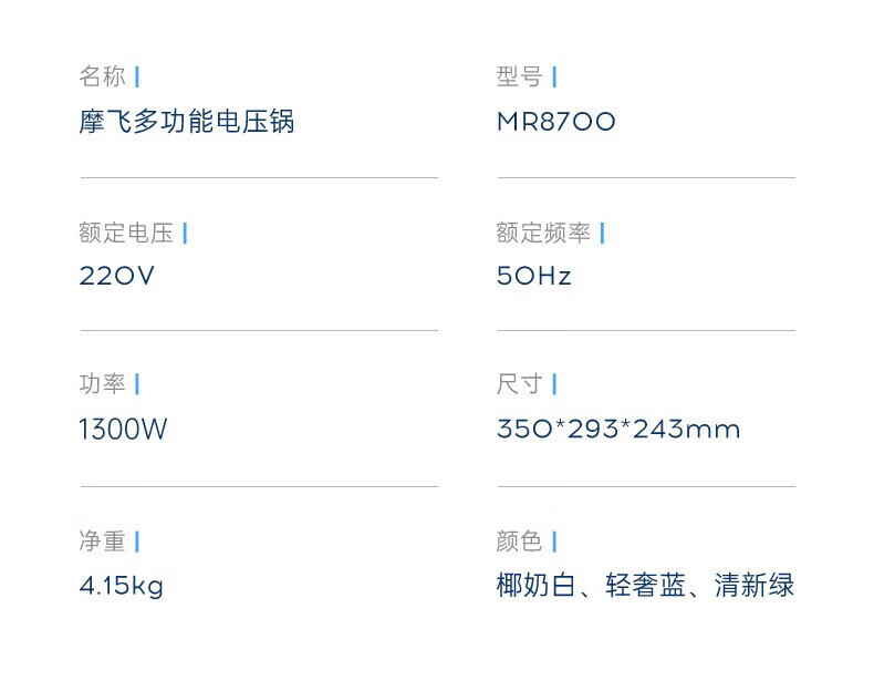 Morphy Richards摩飞多功能电压力锅MR8700 椰奶白4L/轻奢蓝4L