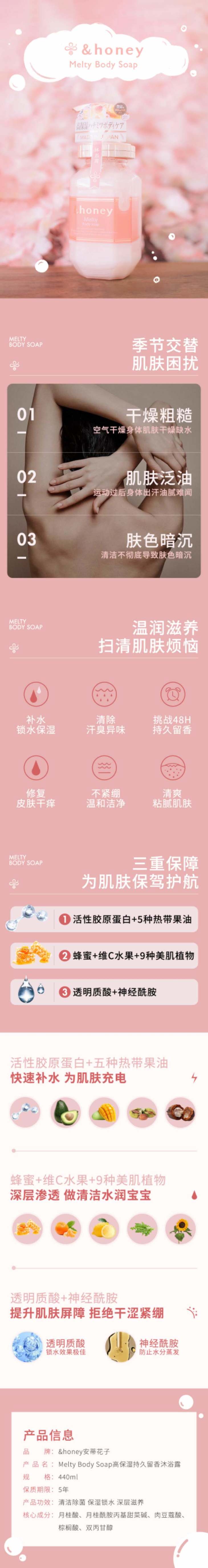 日本honey安蒂花子柔润玫瑰沐浴露440ml