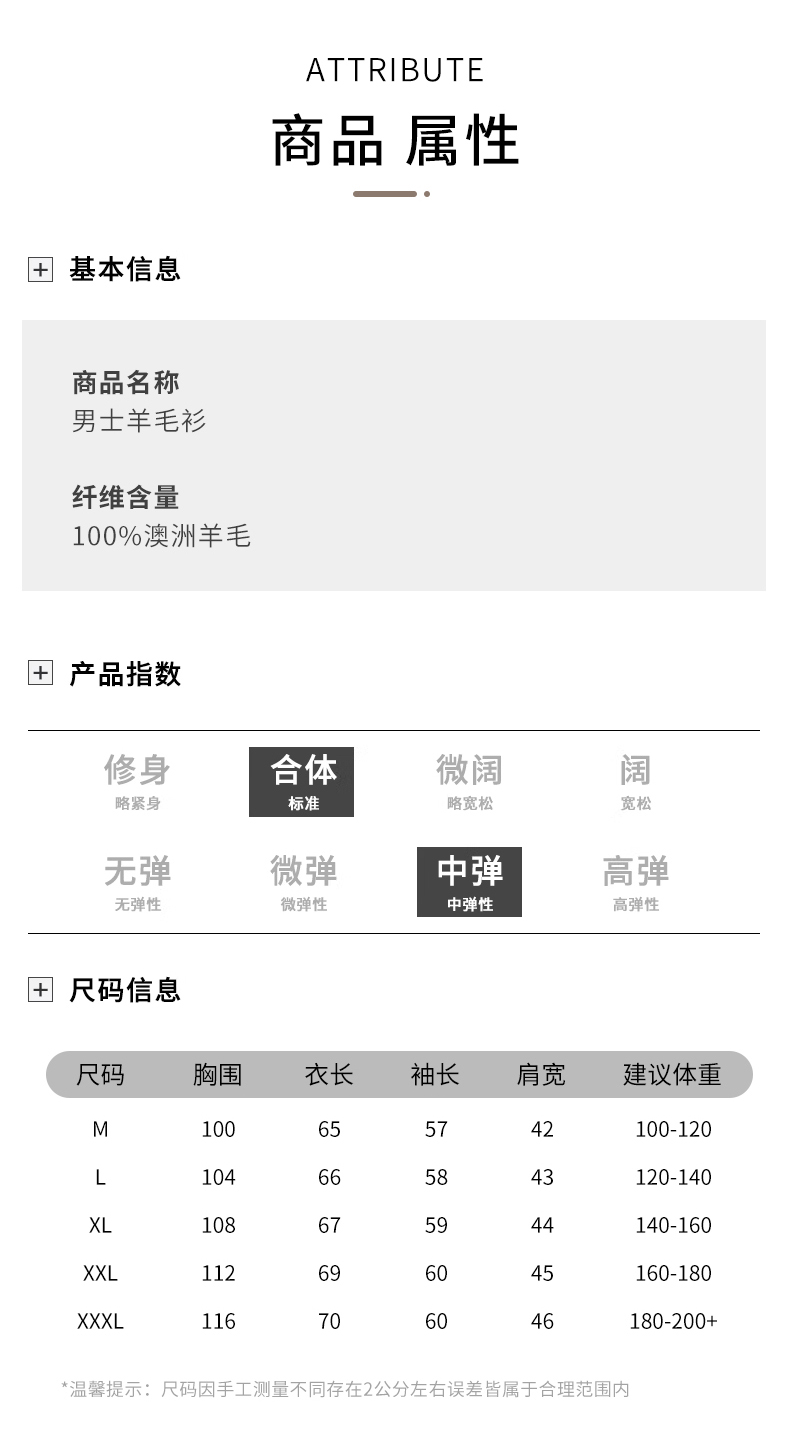 4.尺码信息以及推荐尺码数据根据平均身材得出,适用于大部分人群,仅供参考,买家也可以根据自己的穿衣喜好选择