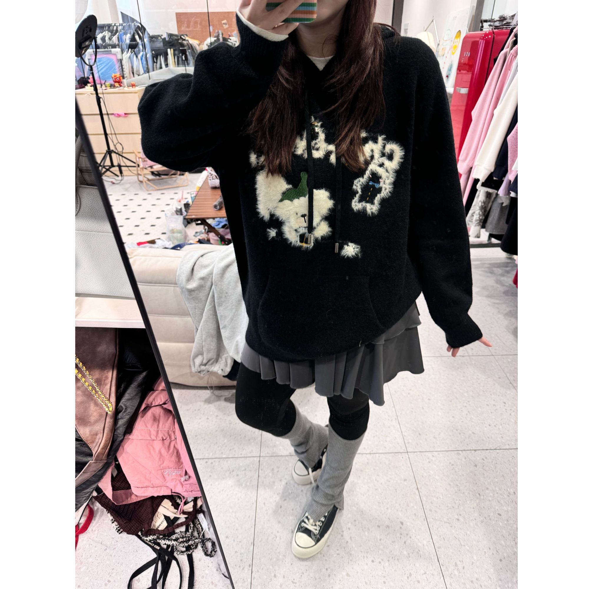 25AW上新 蕾蕾同款【圣诞家族】胸前圣诞图案宽松连帽针织毛衣