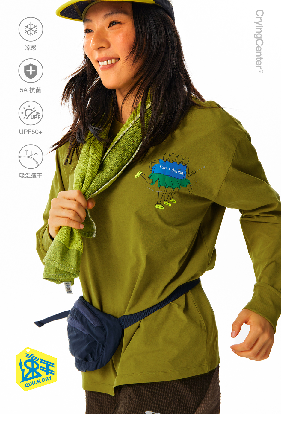 CryingCenter跑步跳舞人印花速干防晒长袖tee圆领男女同款户外