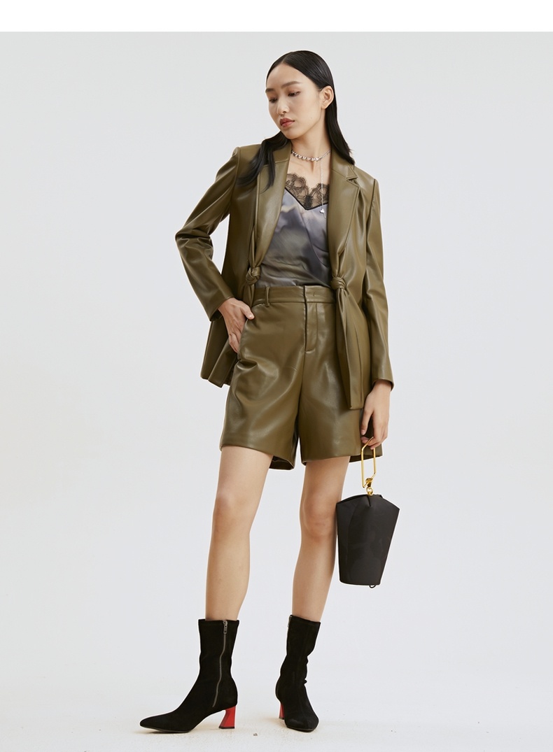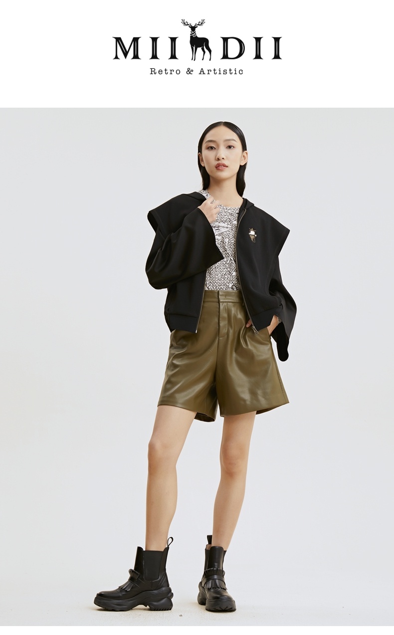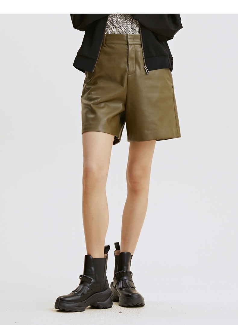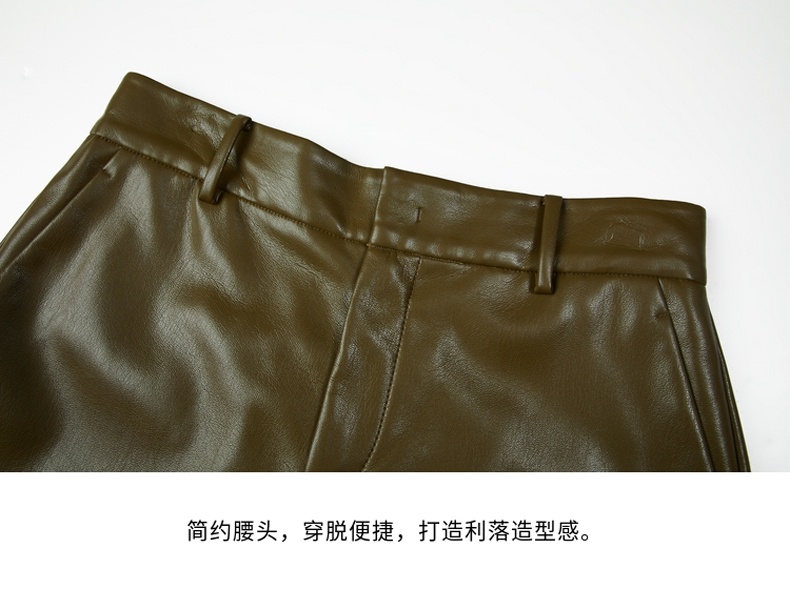 谜底2021秋季新款高端系列简约复古仿皮合体短裤靴裤女213GK1625