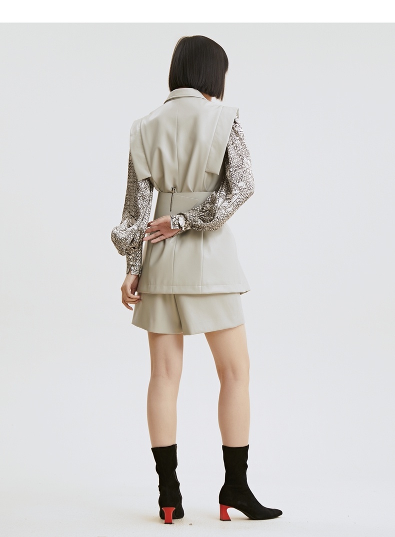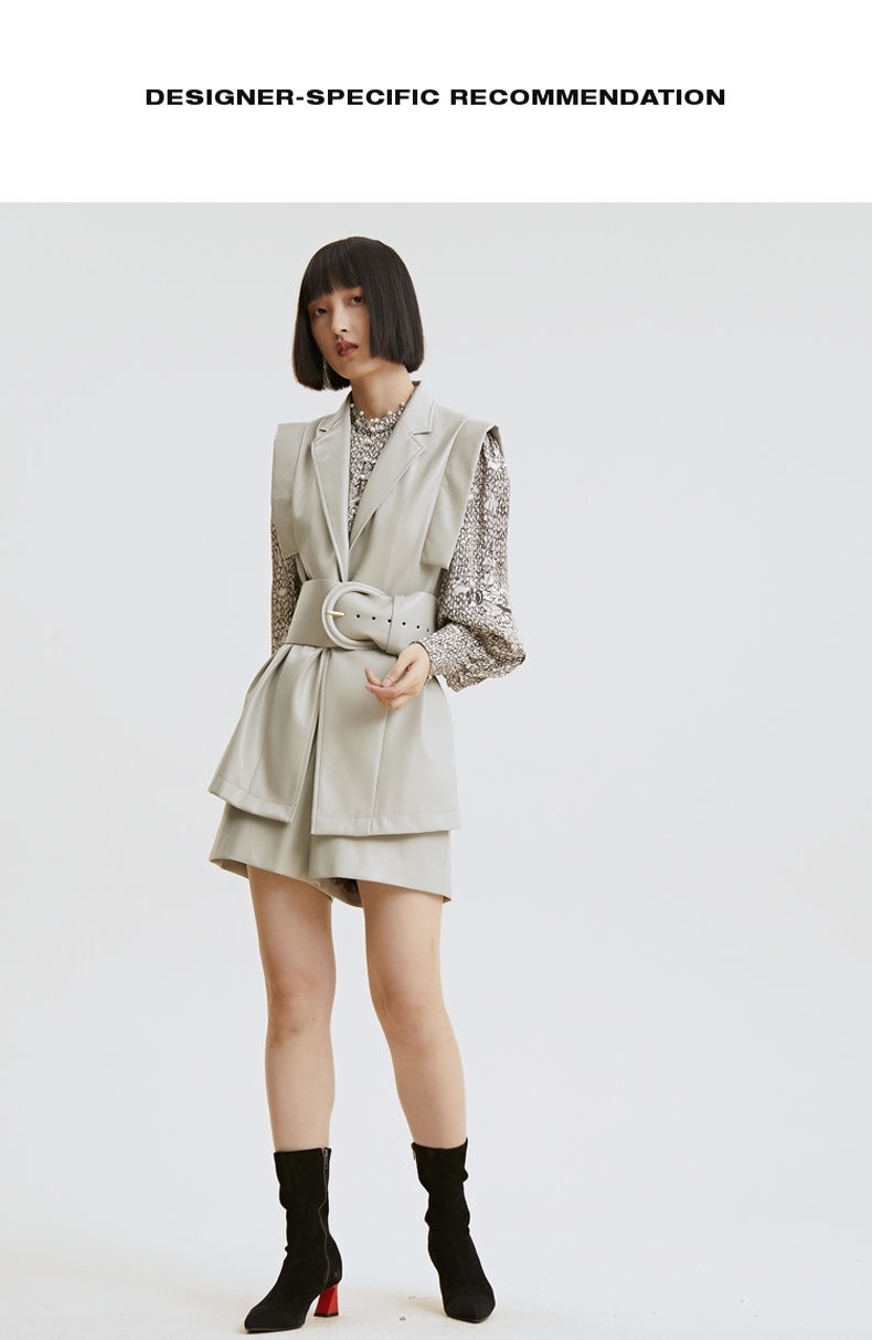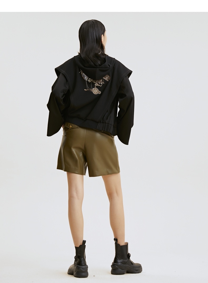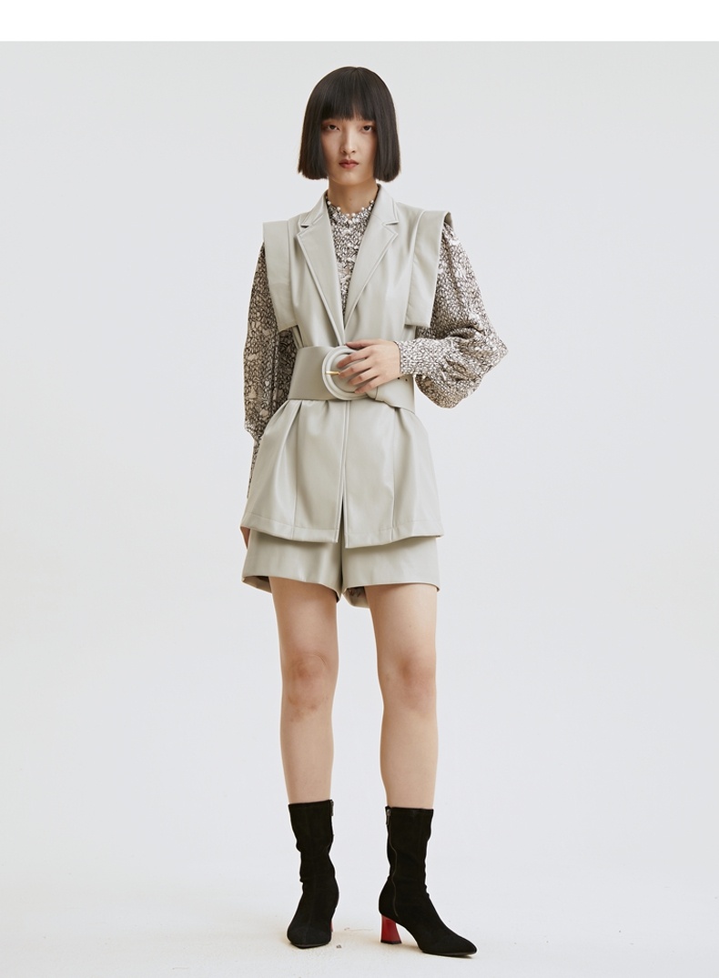 谜底2021秋季新款高端系列简约复古仿皮合体短裤靴裤女213GK1625