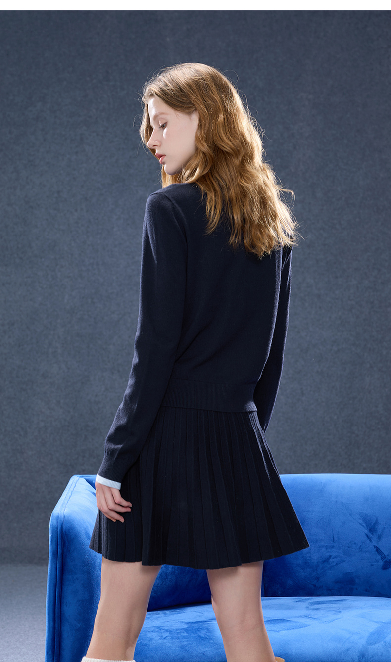 三彩2025秋季新款学院风休闲套装针织衫百褶裙半身裙两件套M