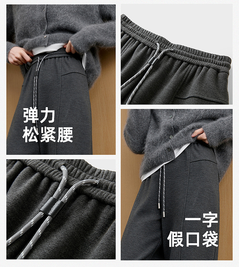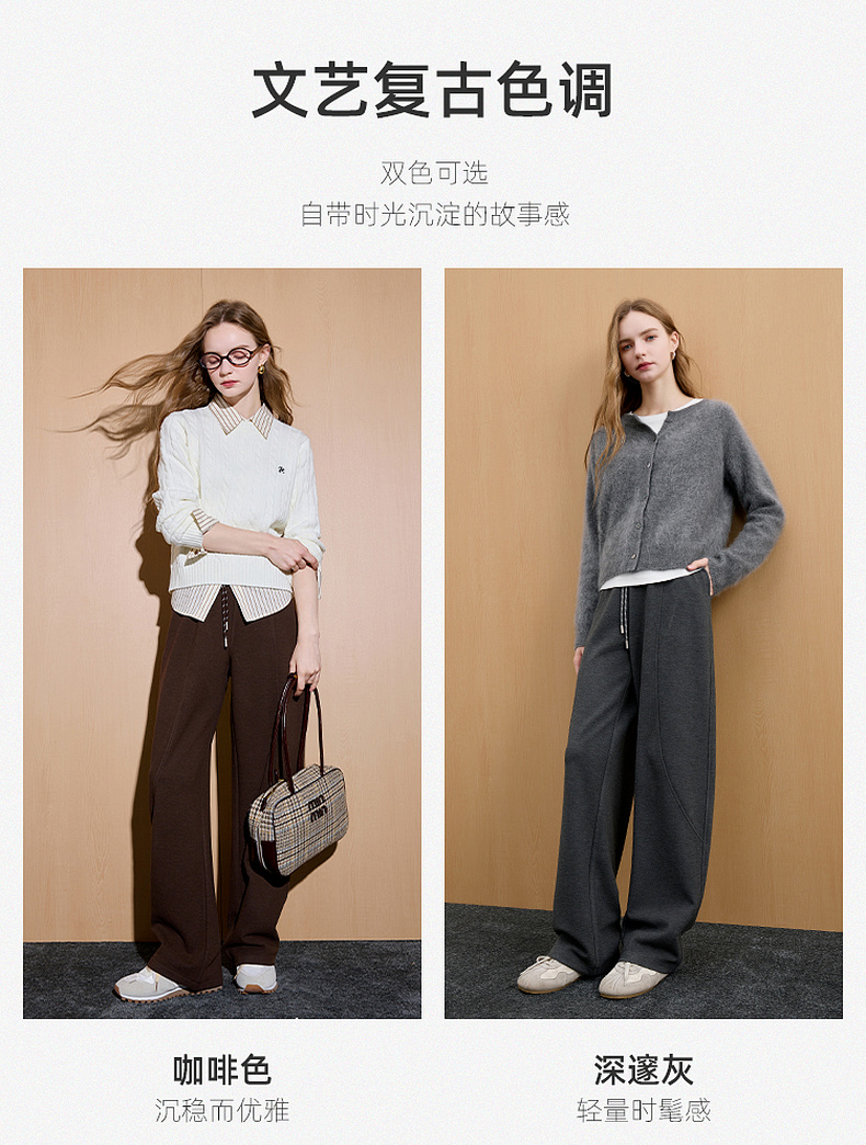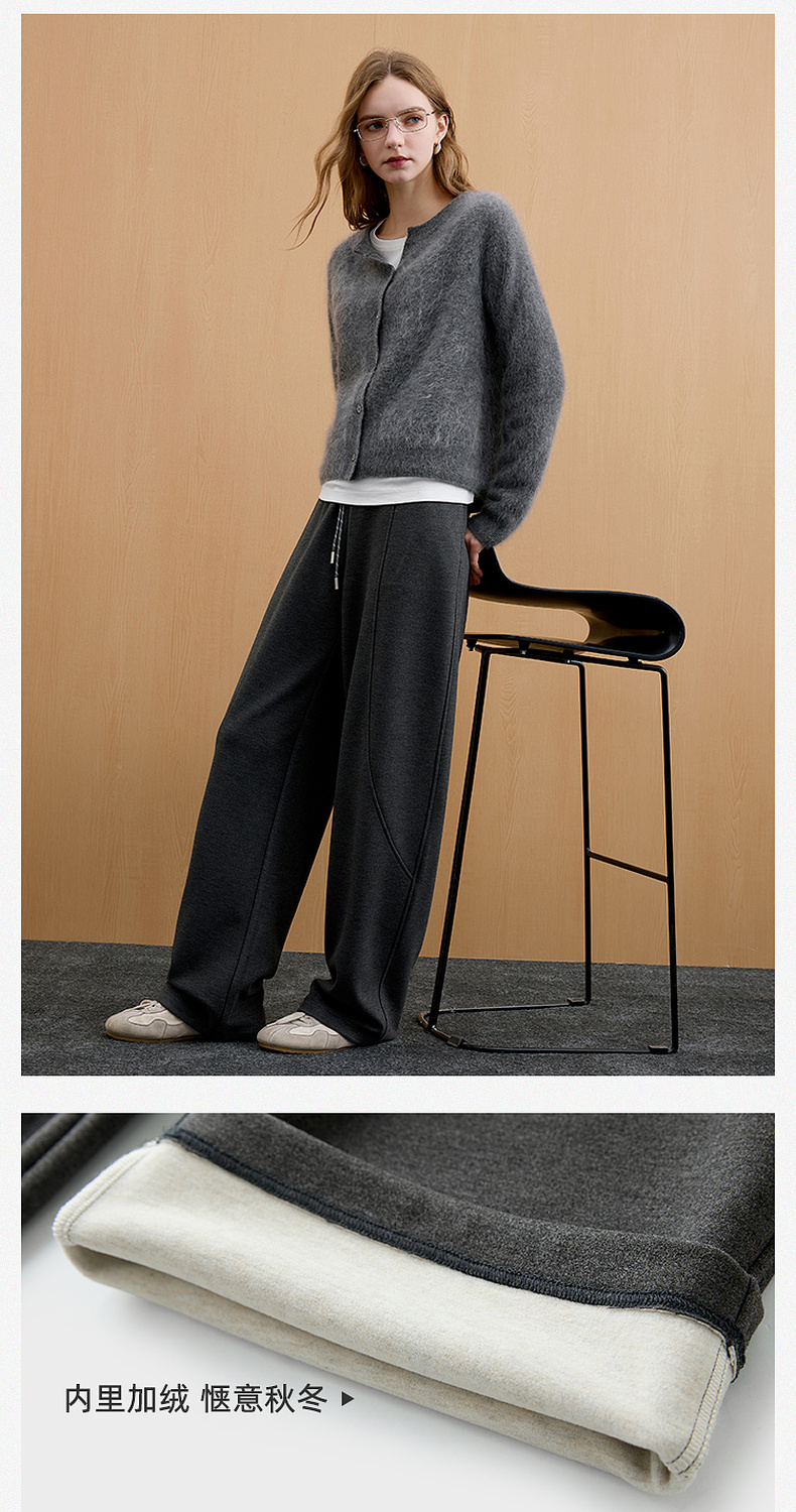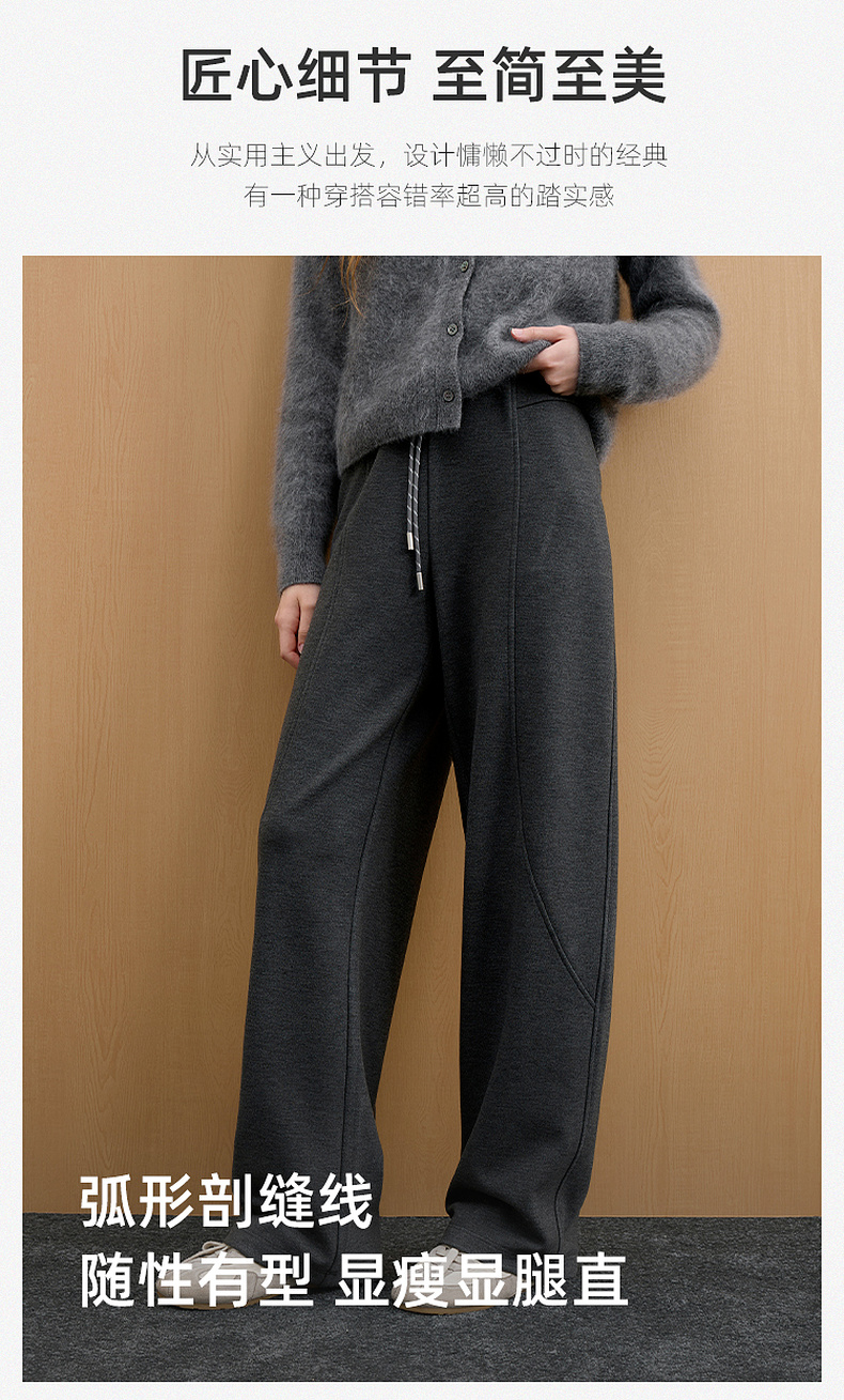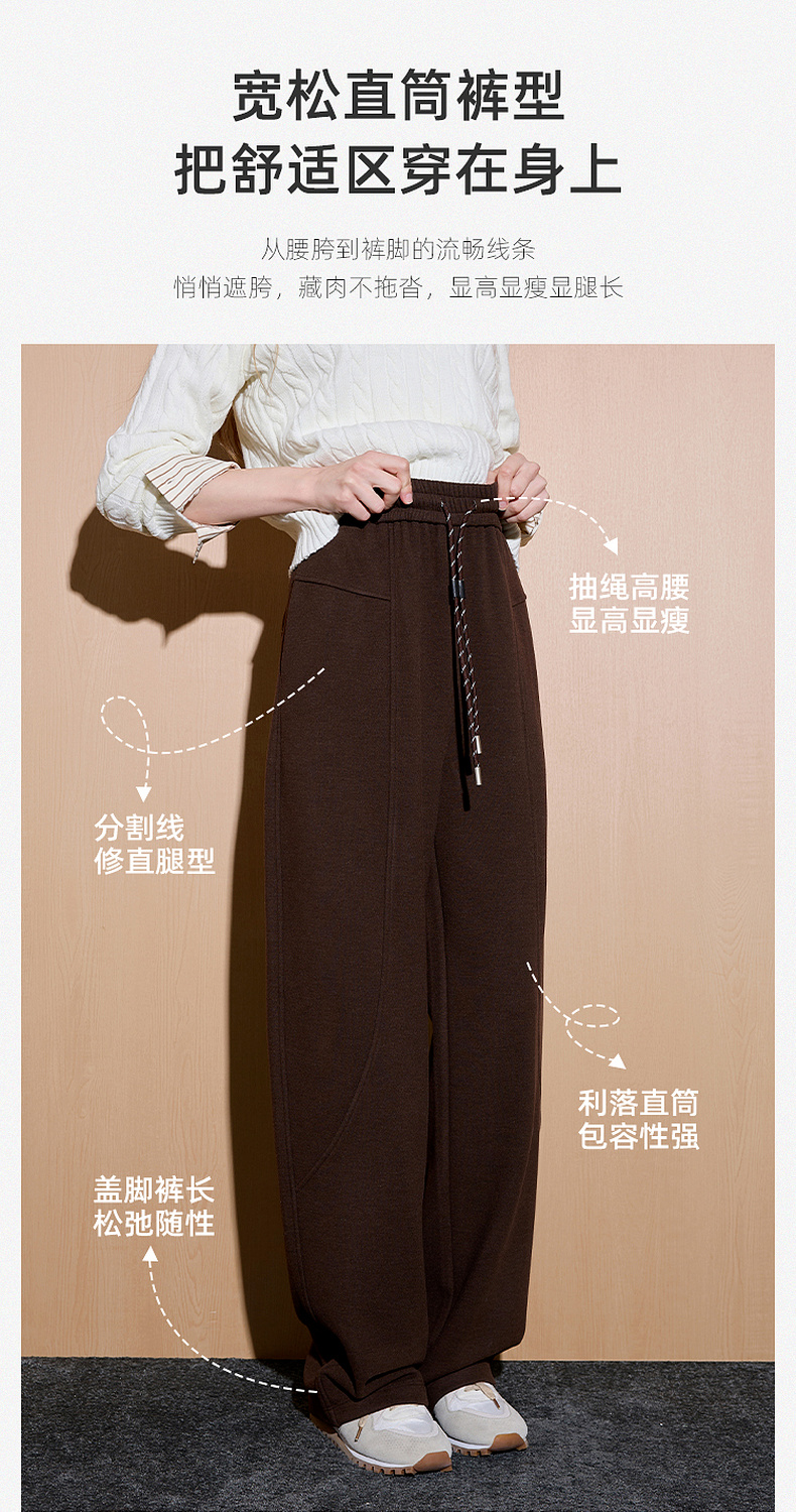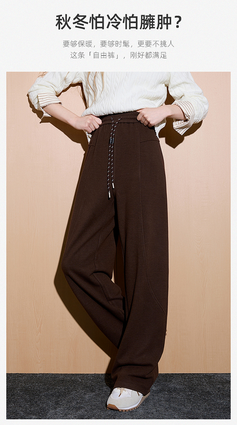 三彩2025冬季新款慵懒休闲长裤抽绳松紧高腰直筒裤垂感显瘦M