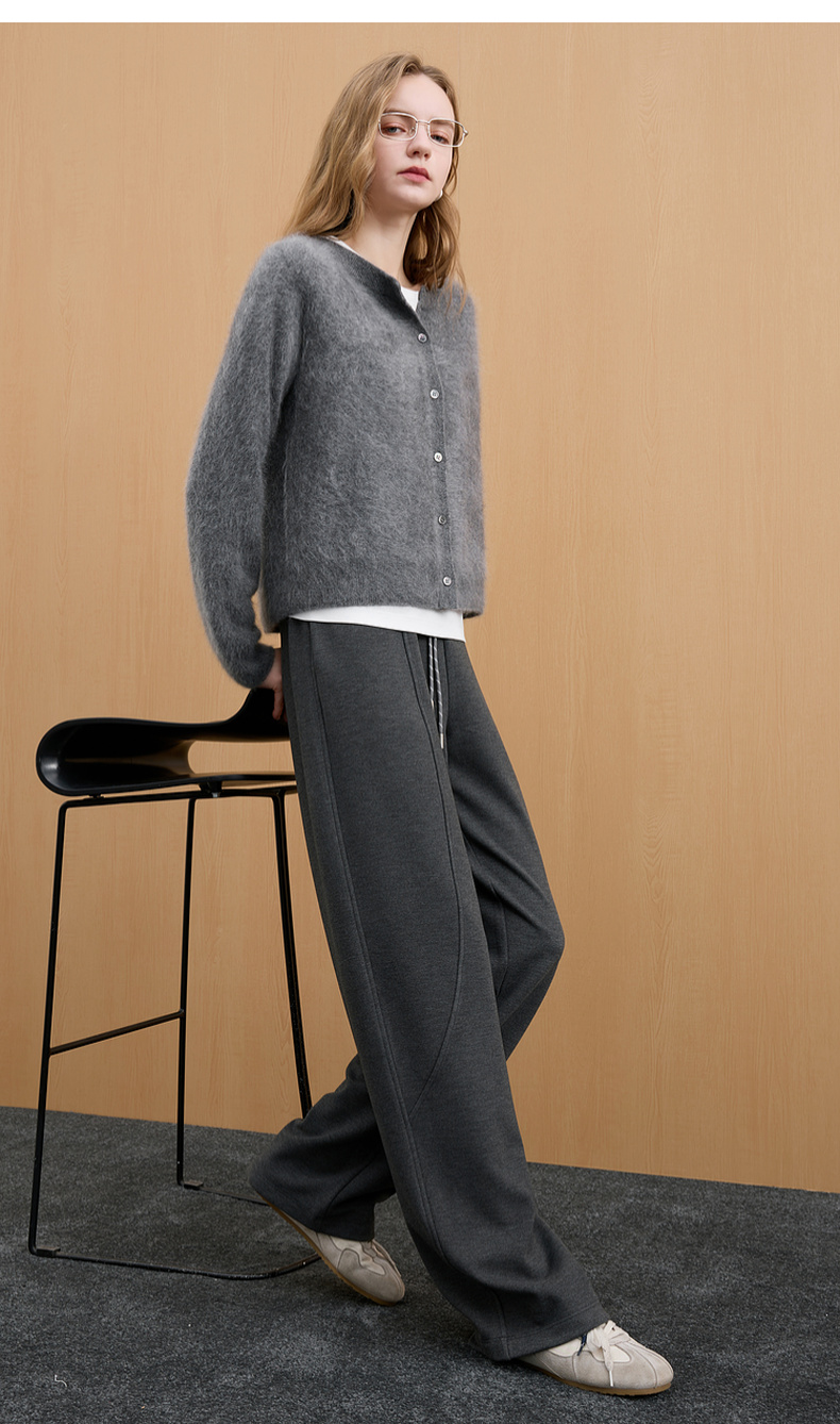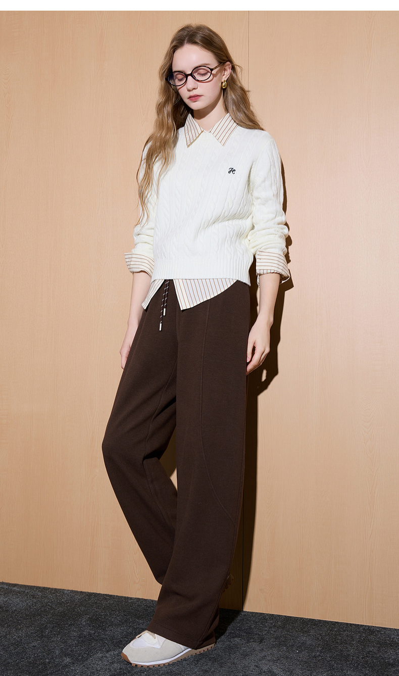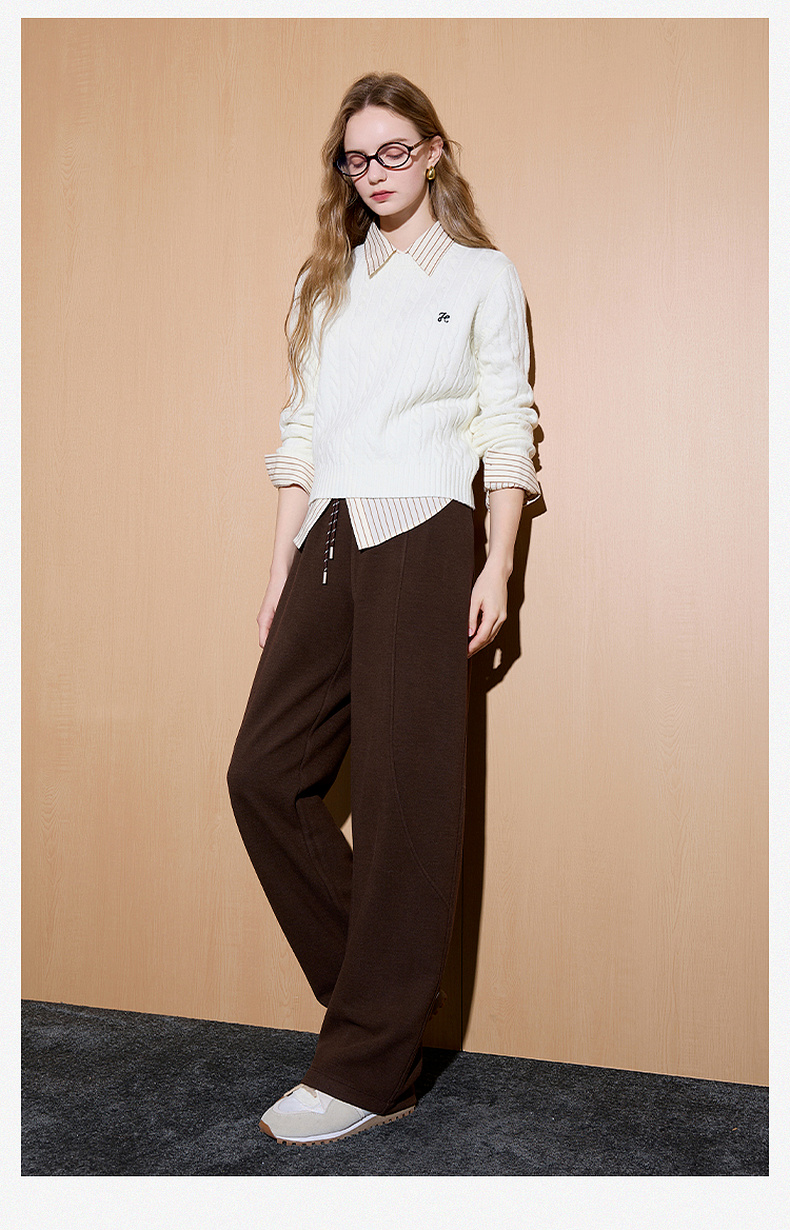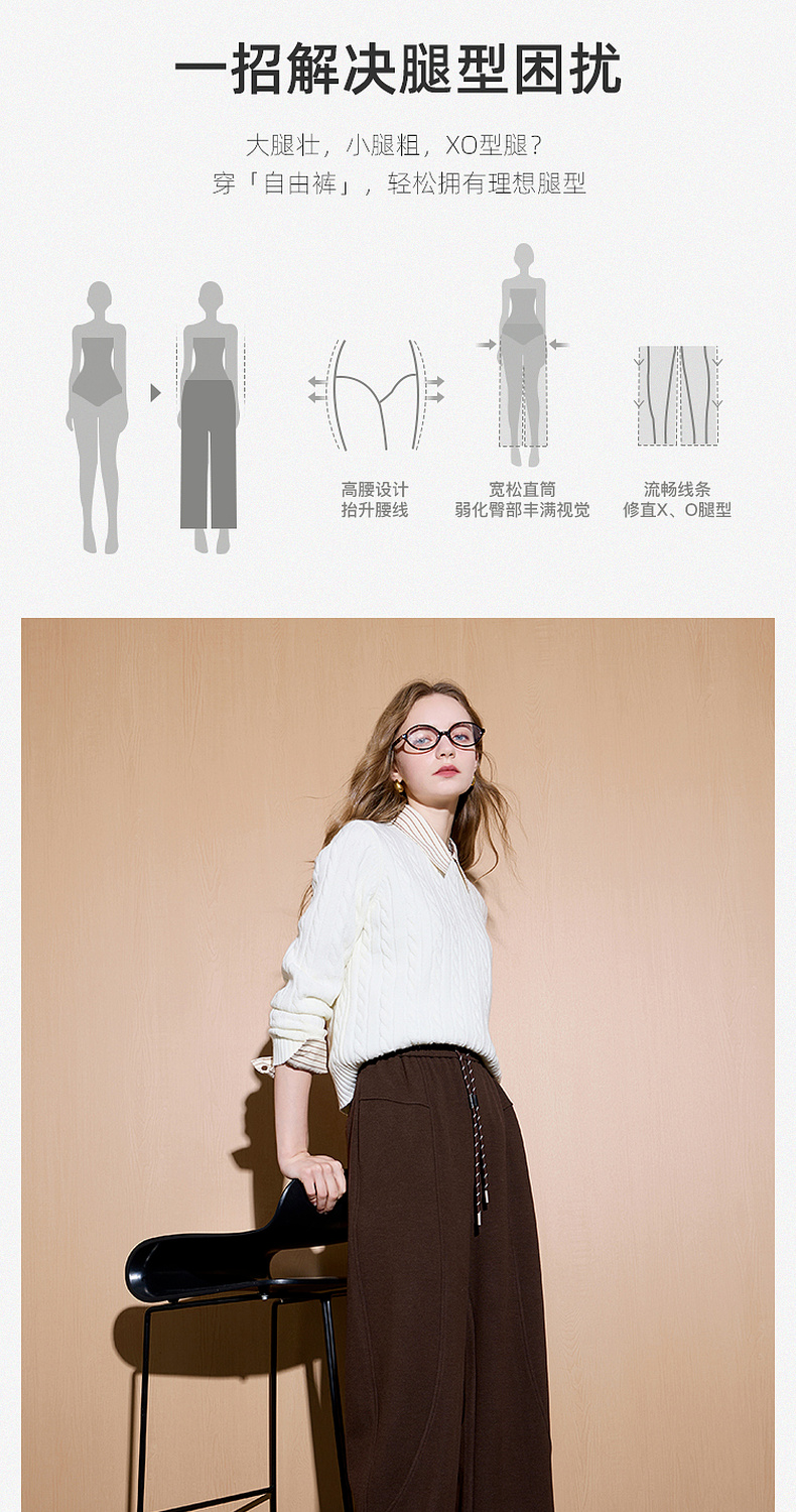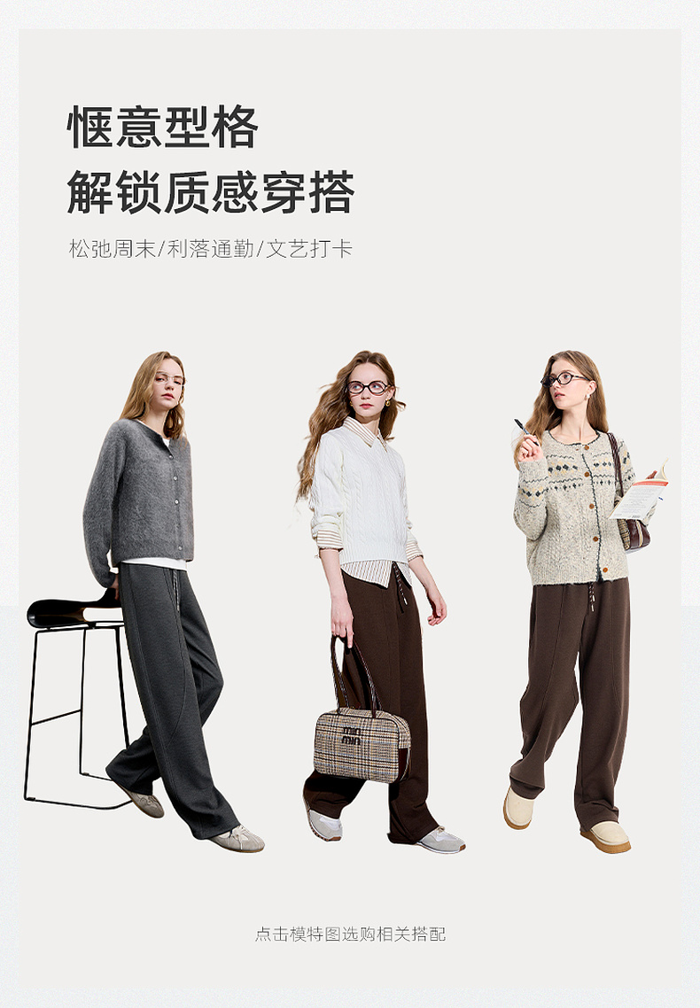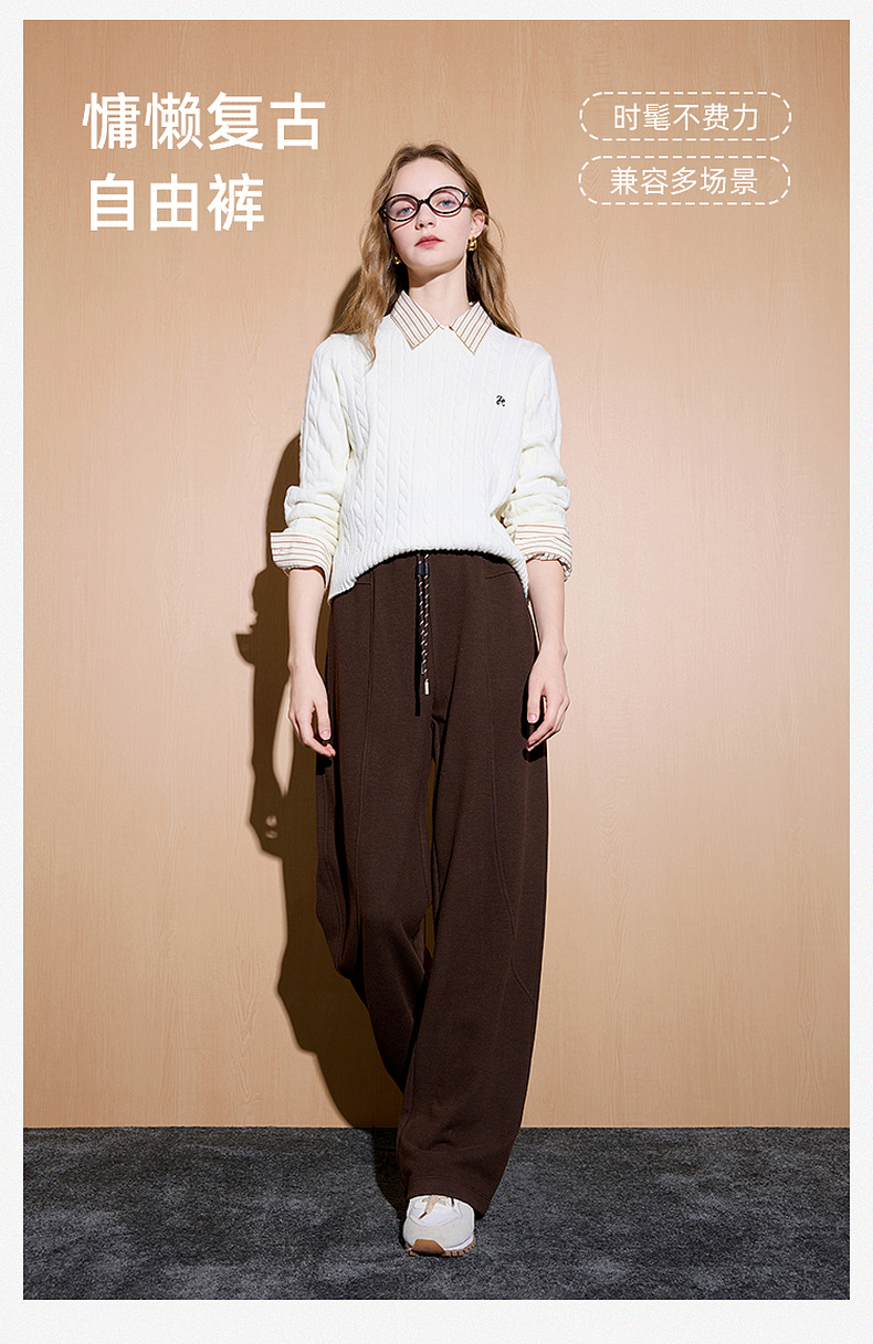 三彩2025冬季新款慵懒休闲长裤抽绳松紧高腰直筒裤垂感显瘦M