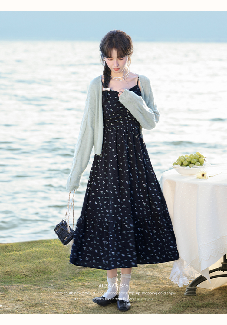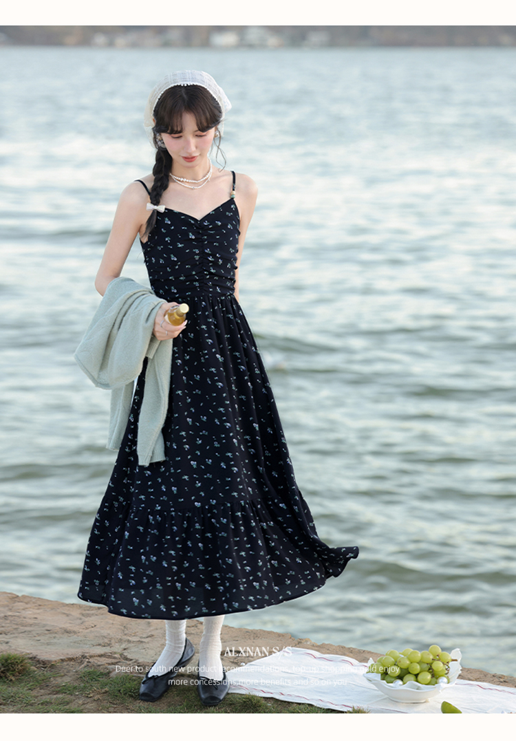 鹿向南「花野星河」气质法式浪漫连衣裙L52897
