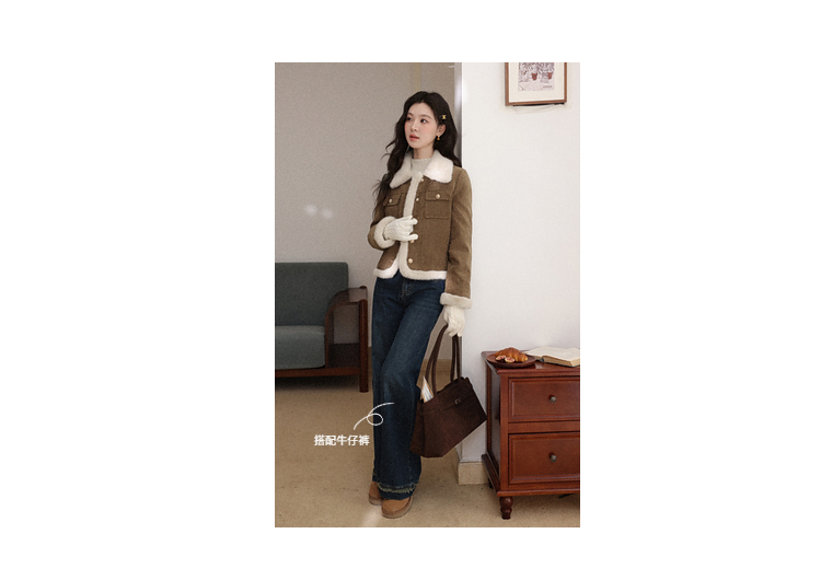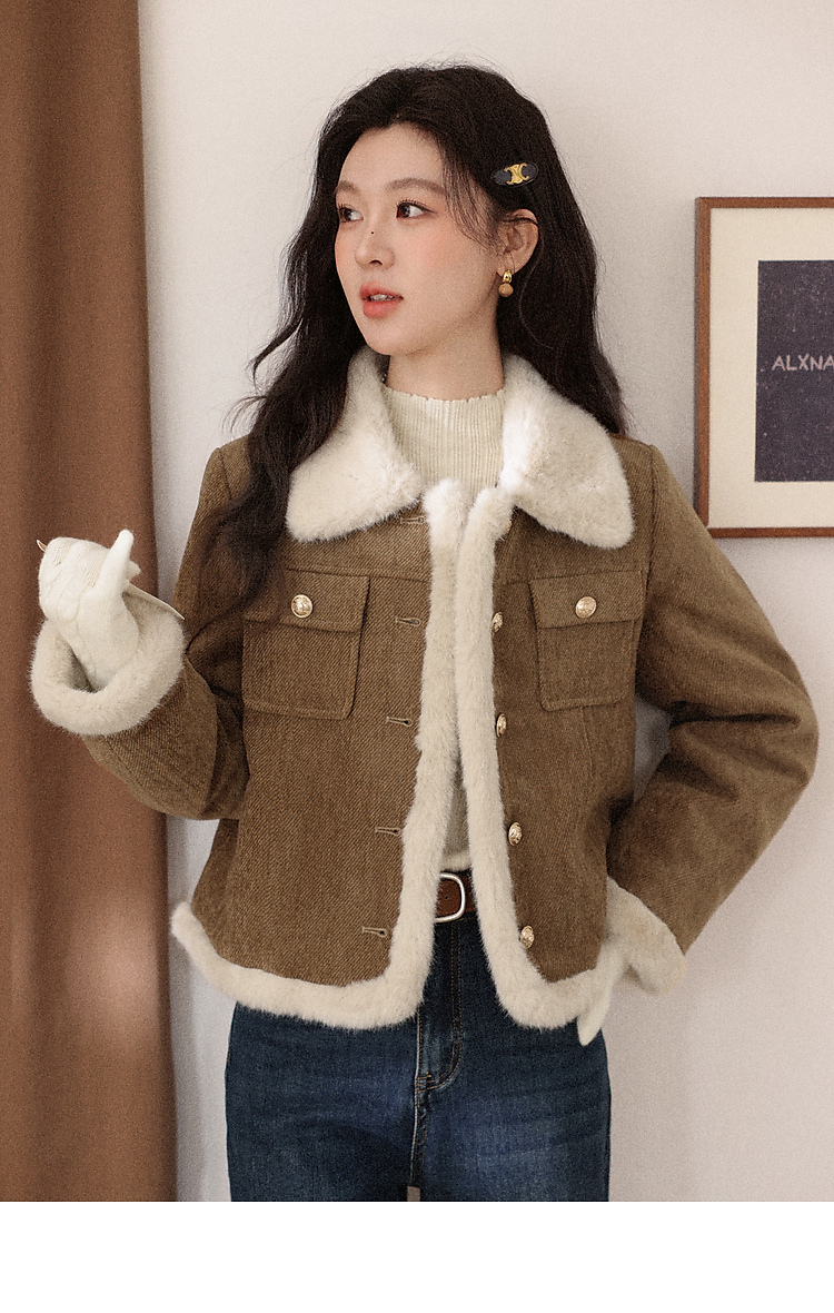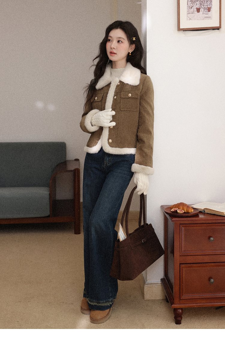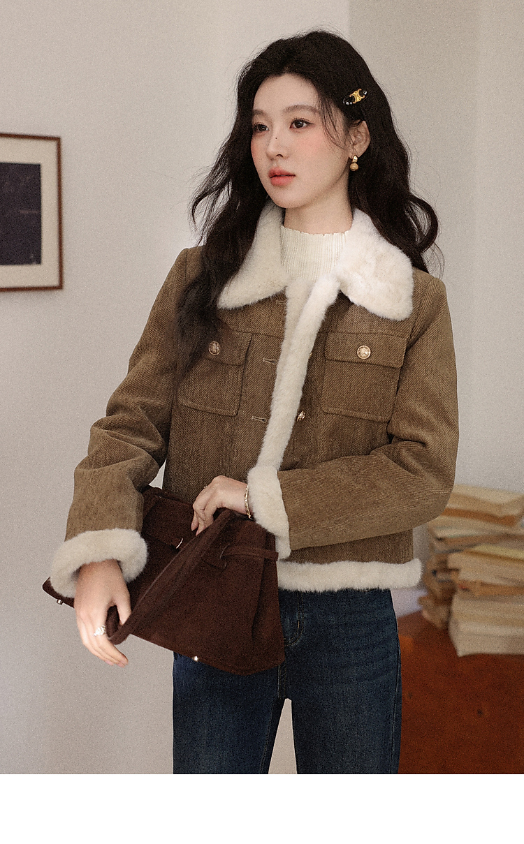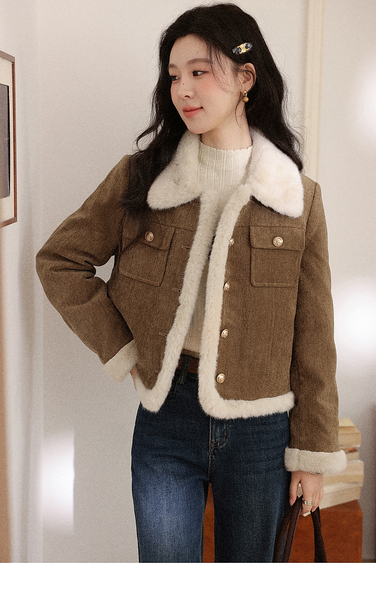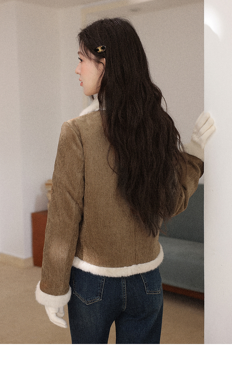 鹿向南「松间手信」90白鸭绒复古短款毛领外套女秋冬加厚保暖上衣