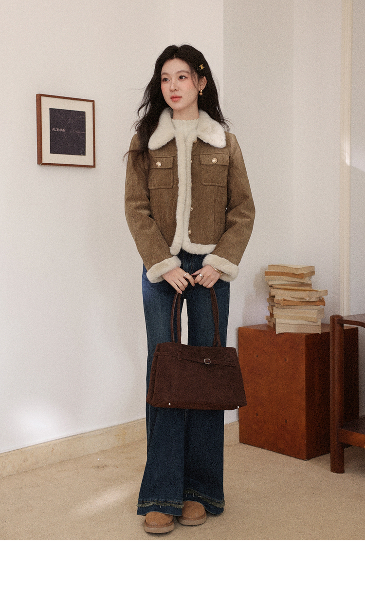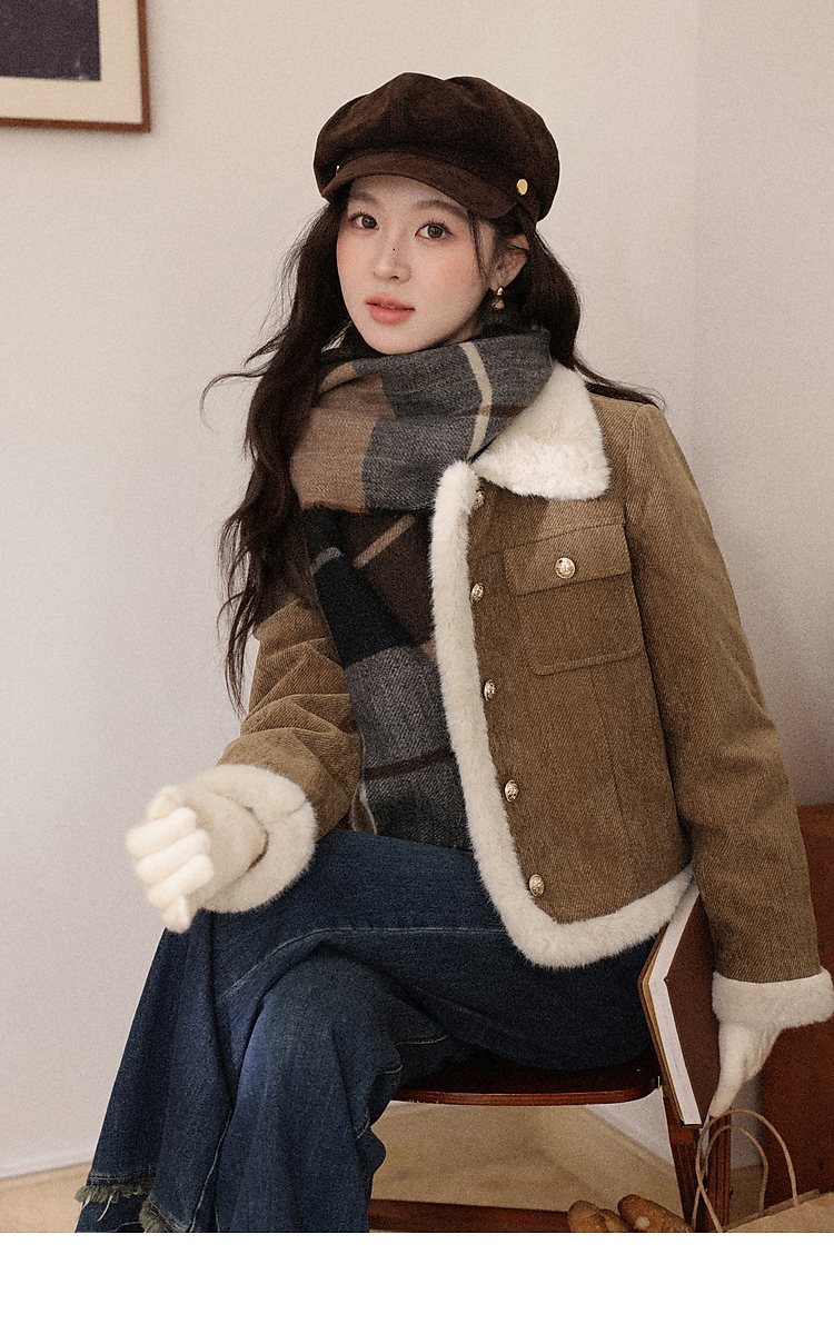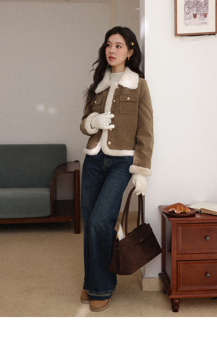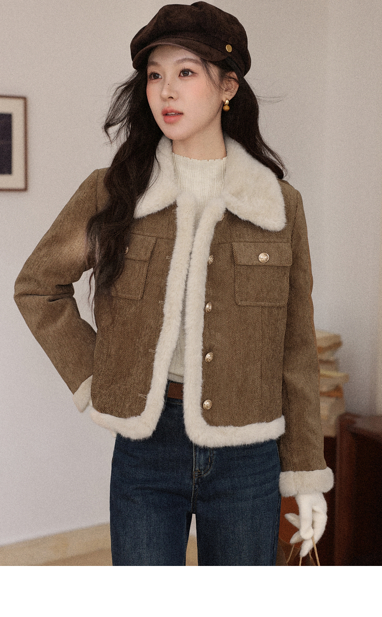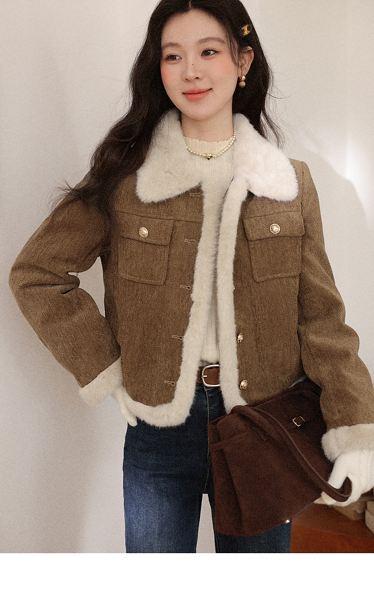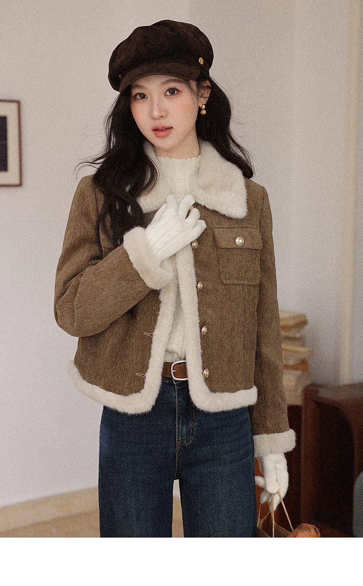 鹿向南「松间手信」90白鸭绒复古短款毛领外套女秋冬加厚保暖上衣