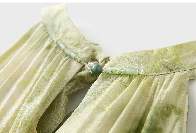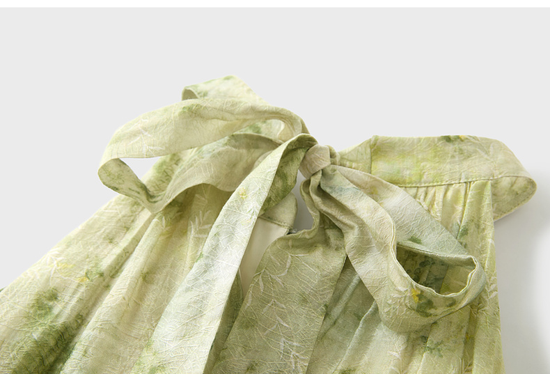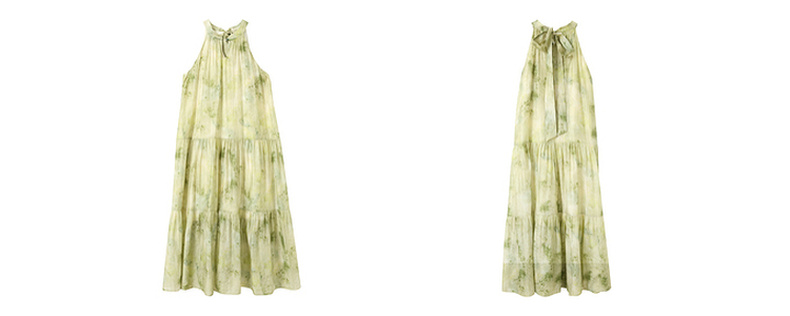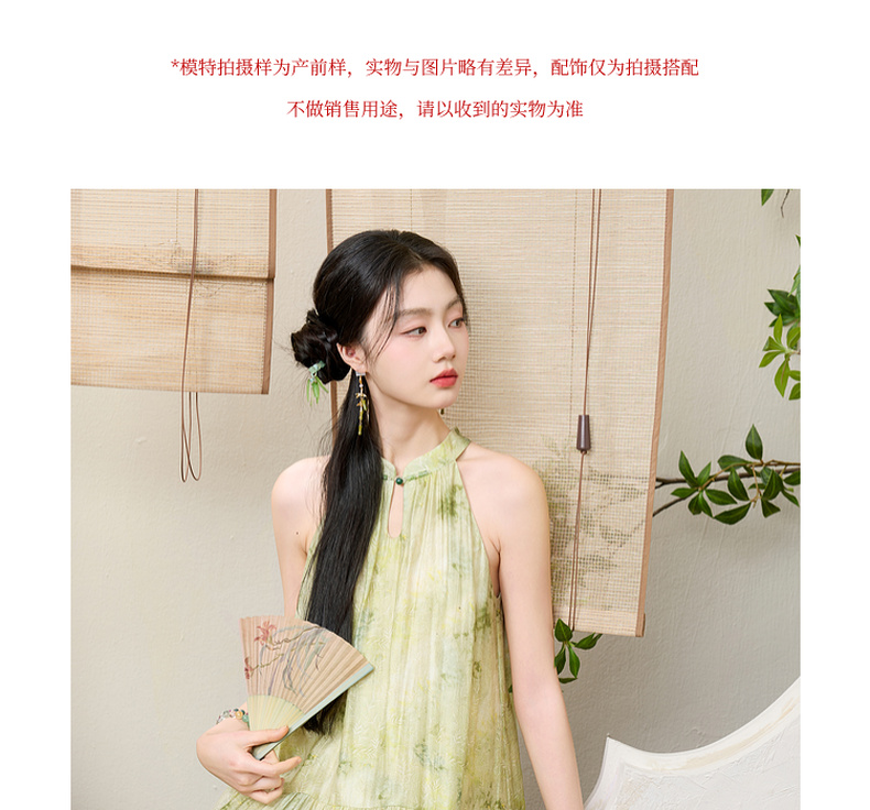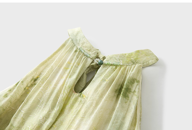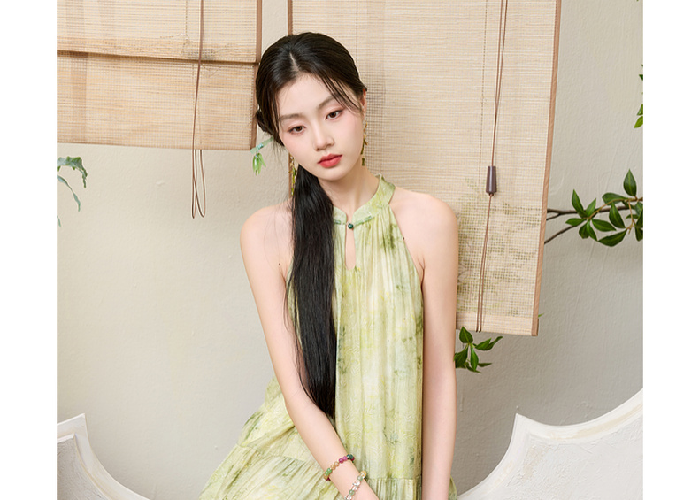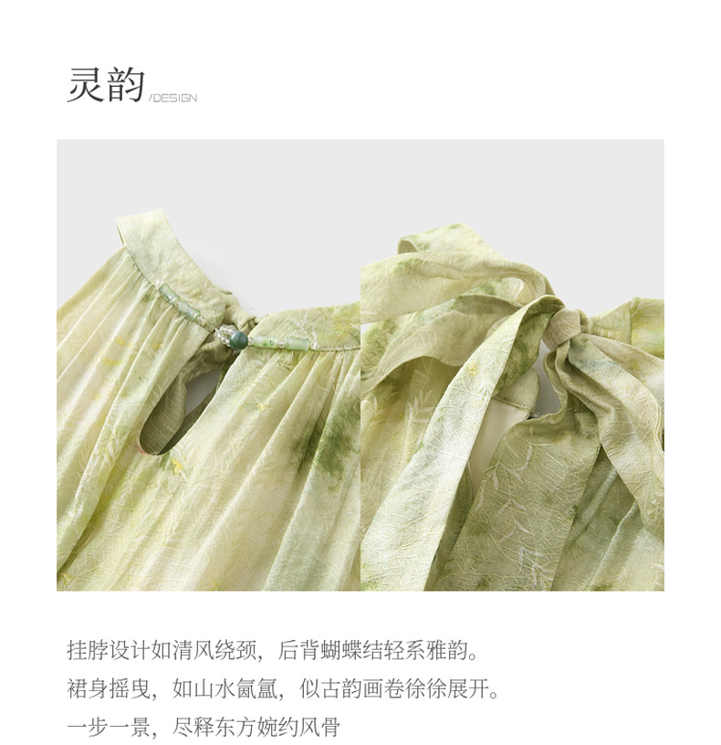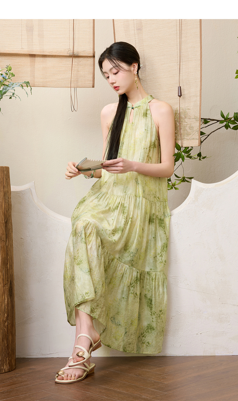 三彩【一念清心】2025夏新款新中式挂脖连衣裙印花大摆宽松长裙C