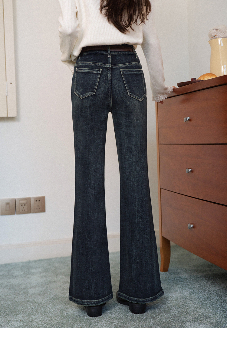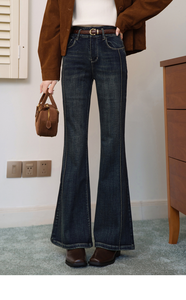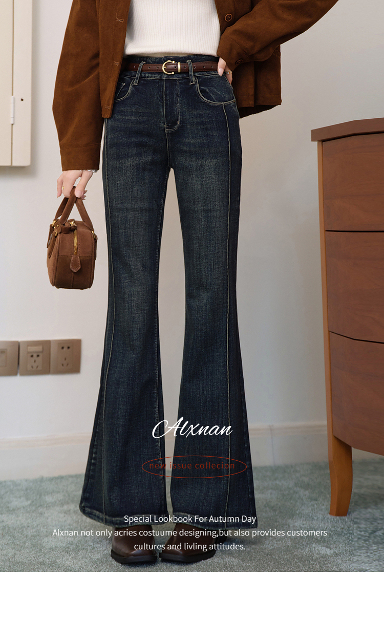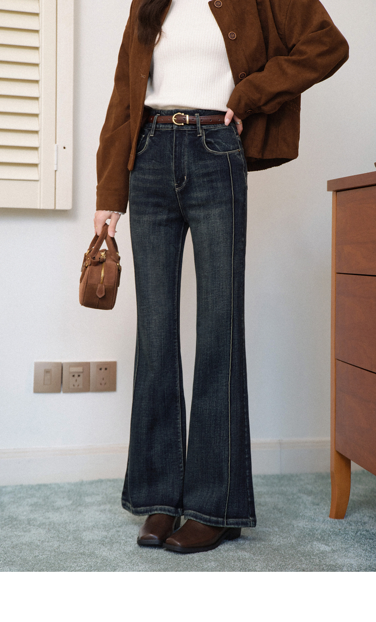 鹿向南「腿精出击」复古蓝色微喇显瘦牛仔裤女秋冬新款气质长裤子