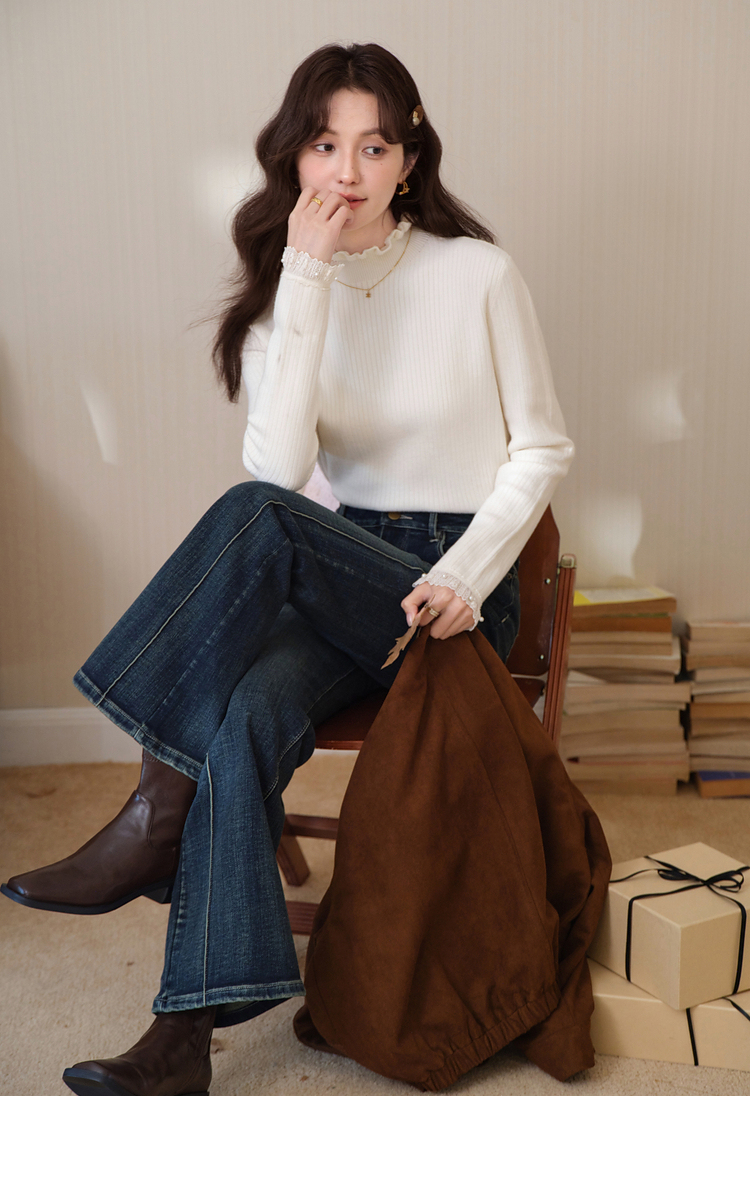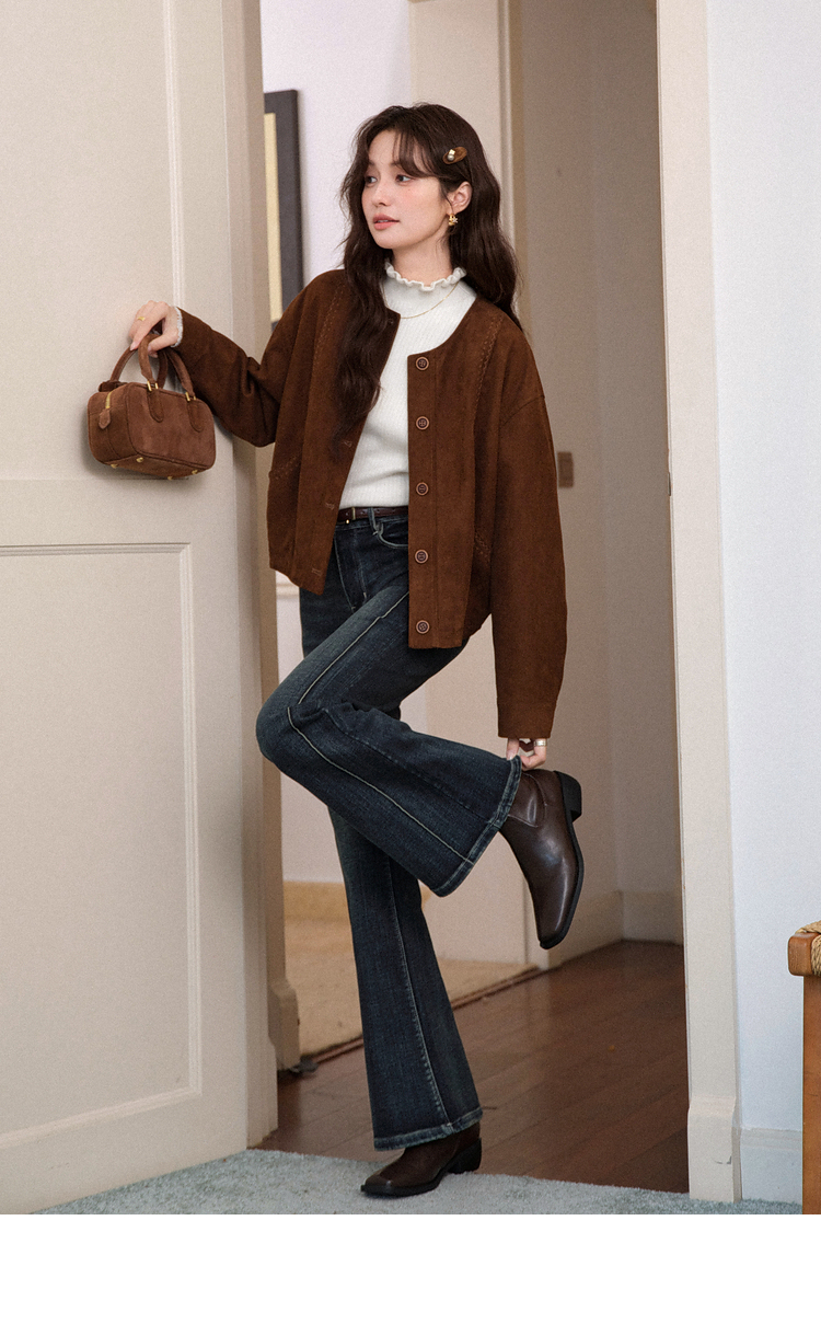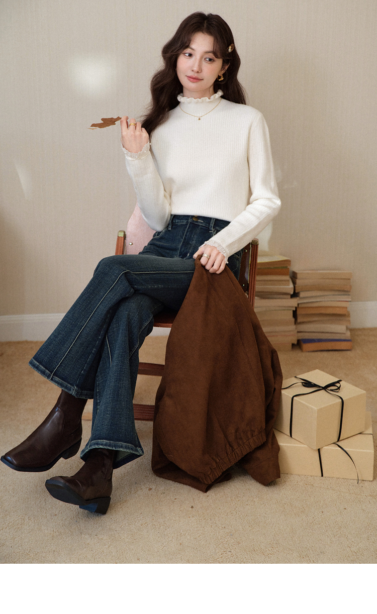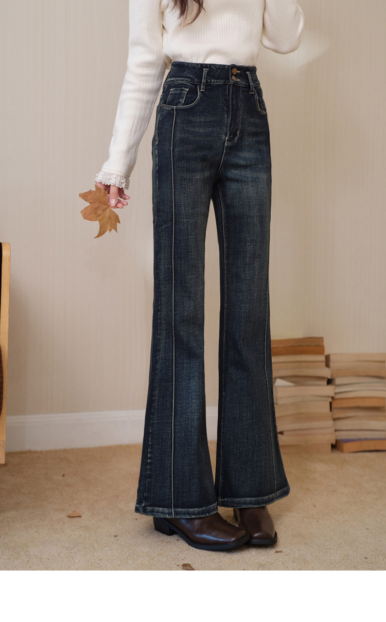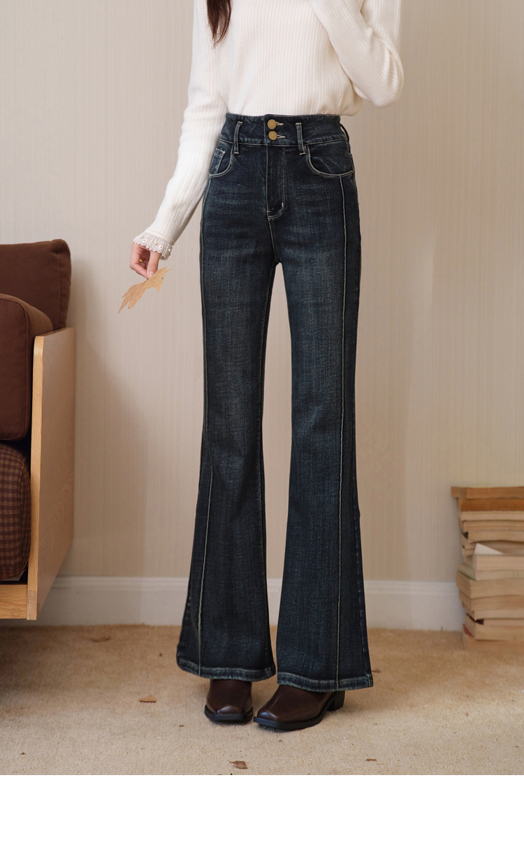 鹿向南「腿精出击」复古蓝色微喇显瘦牛仔裤女秋冬新款气质长裤子