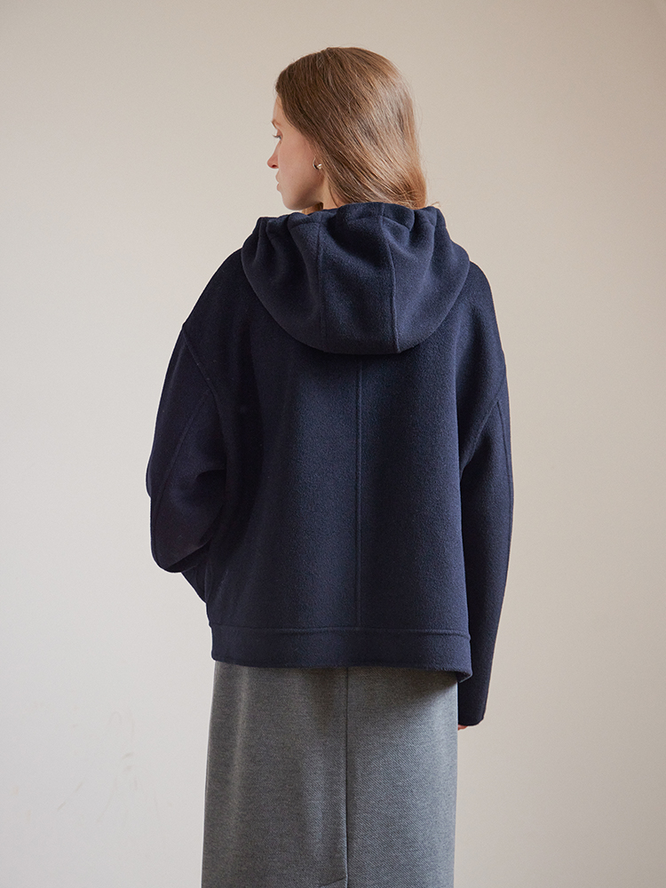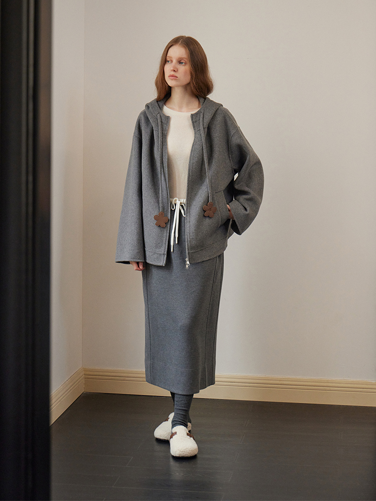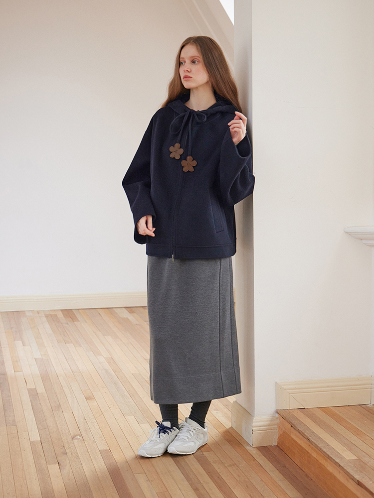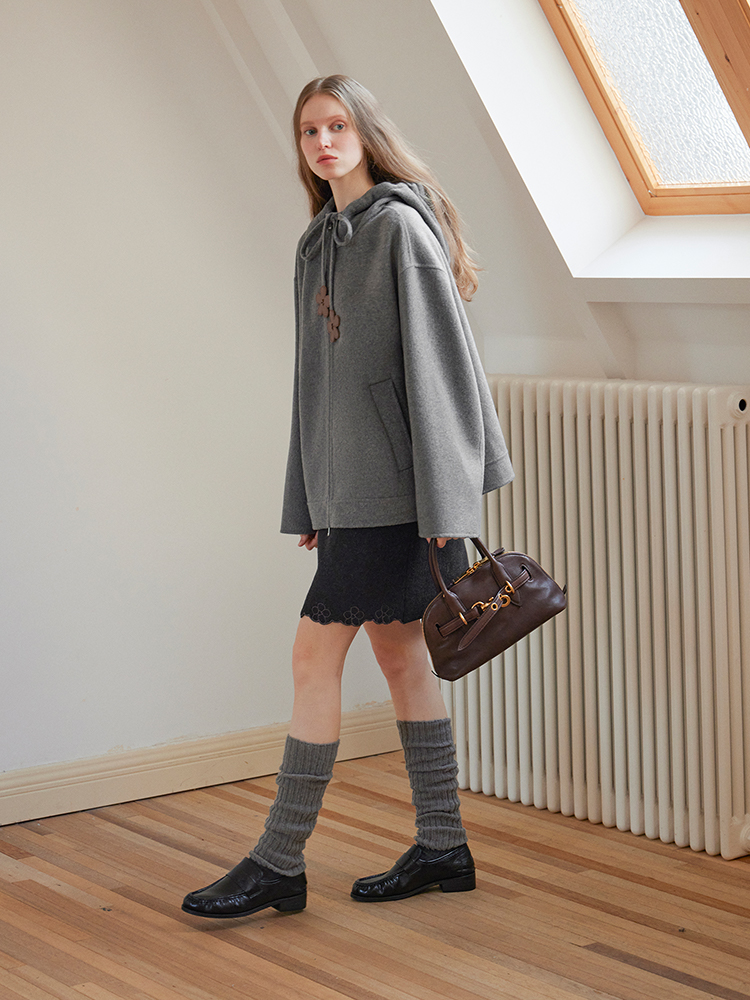 ForPoem 24/FW原创设计羊绒羊毛花朵皮牌连帽拉链休闲双面尼大衣