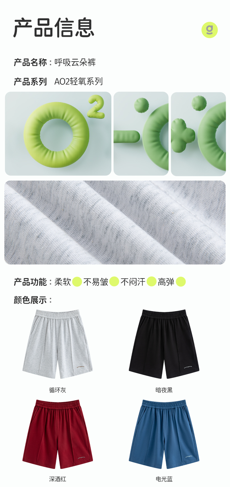 onmygame【呼吸云朵裤】男女童运动短裤柔软透气裤子2025年夏季