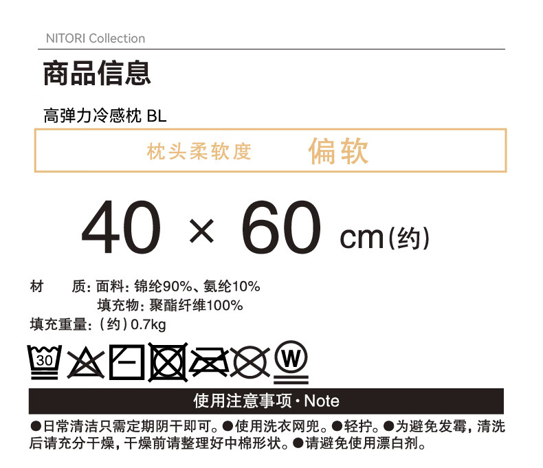 NITORI宜得利家居 床上用品单人枕头空调凉感枕高弹力冷感枕