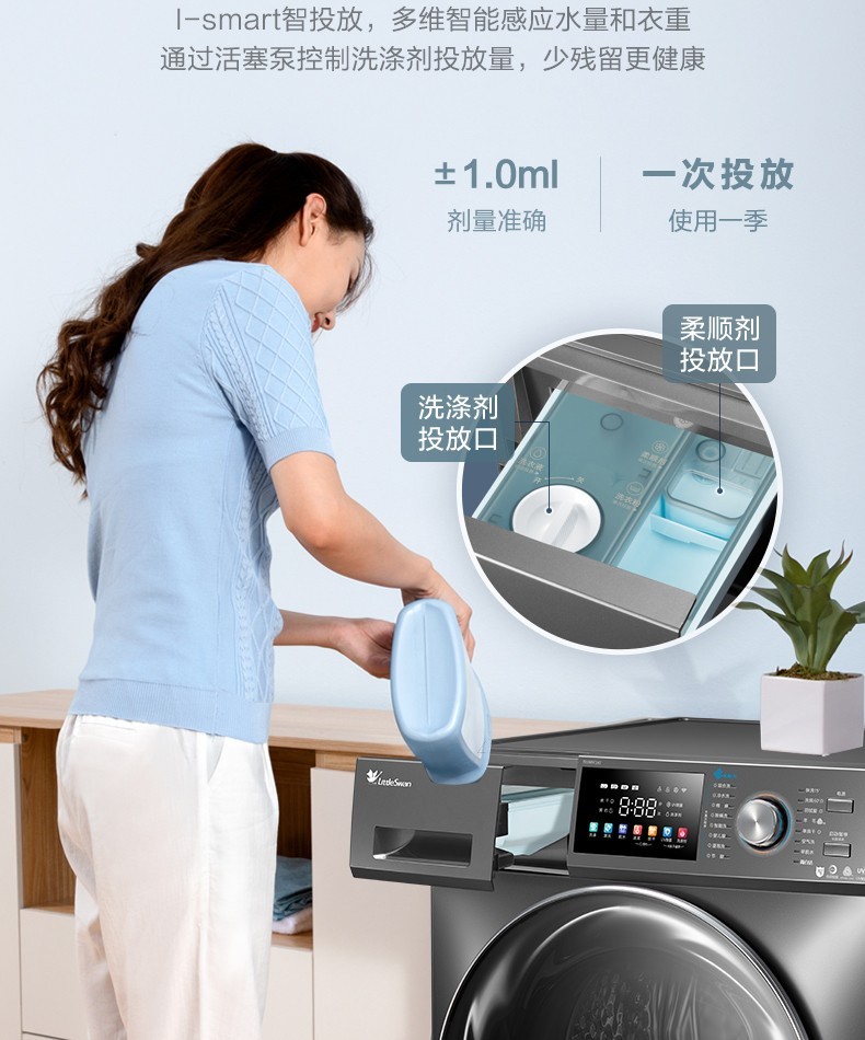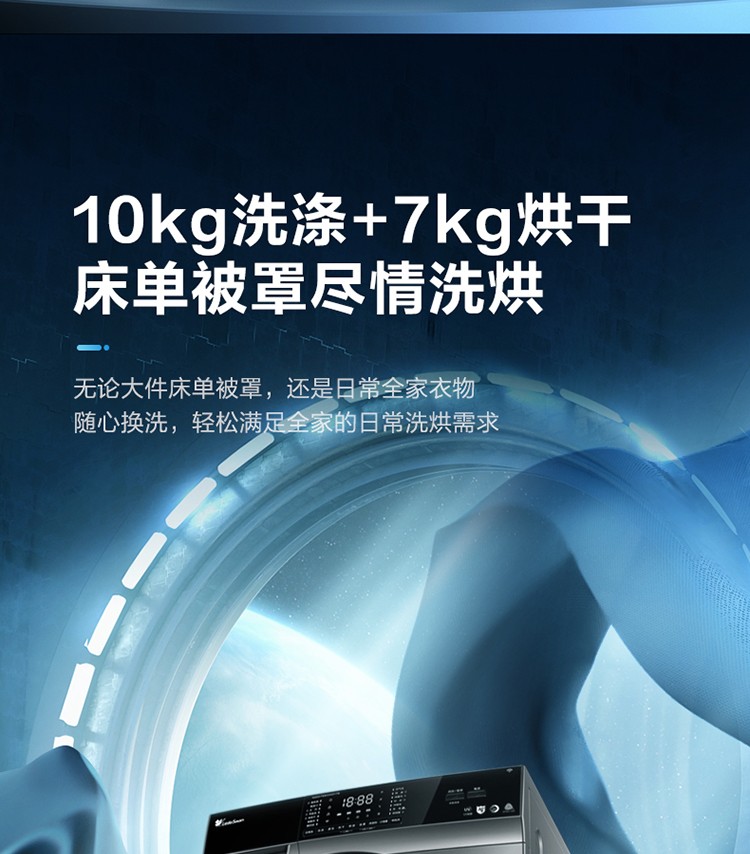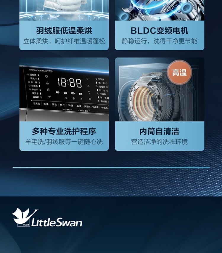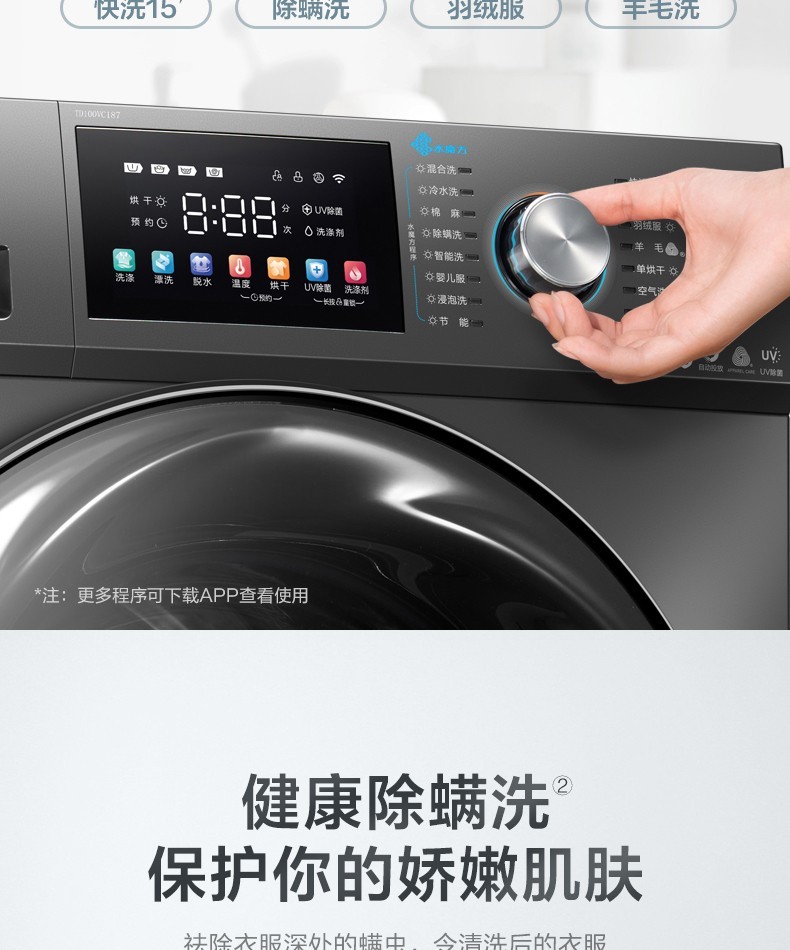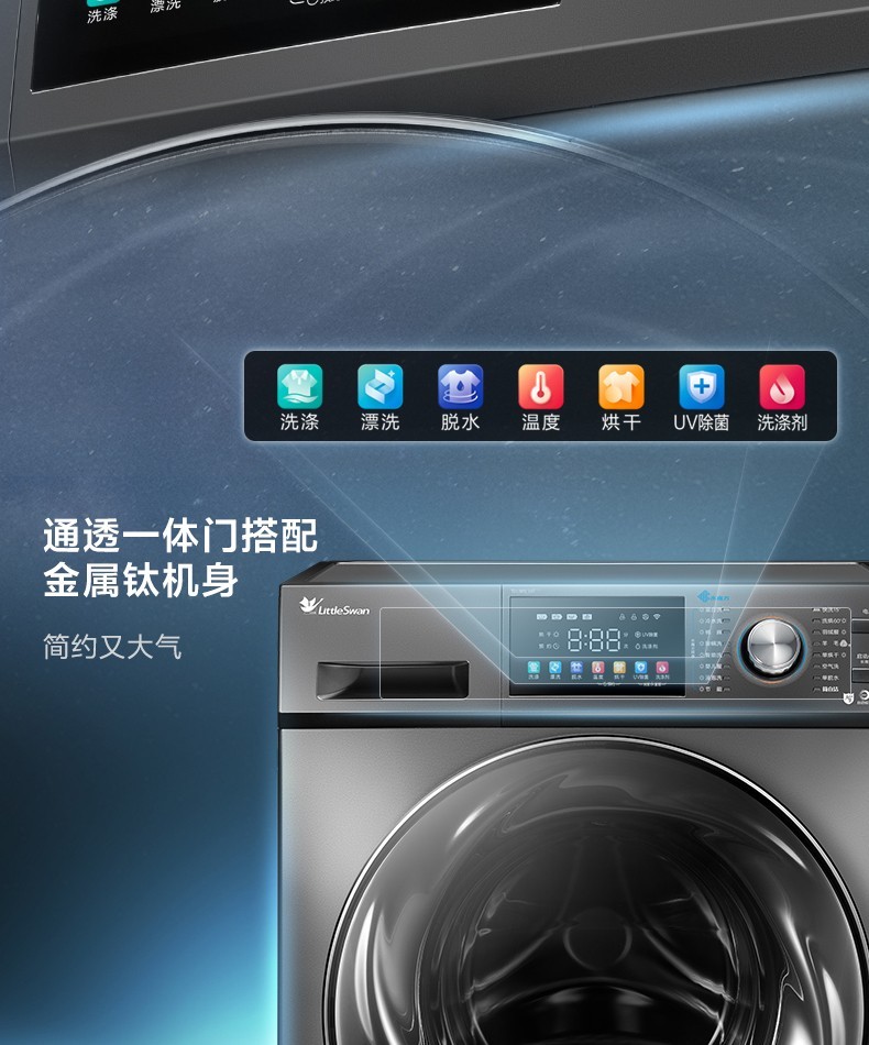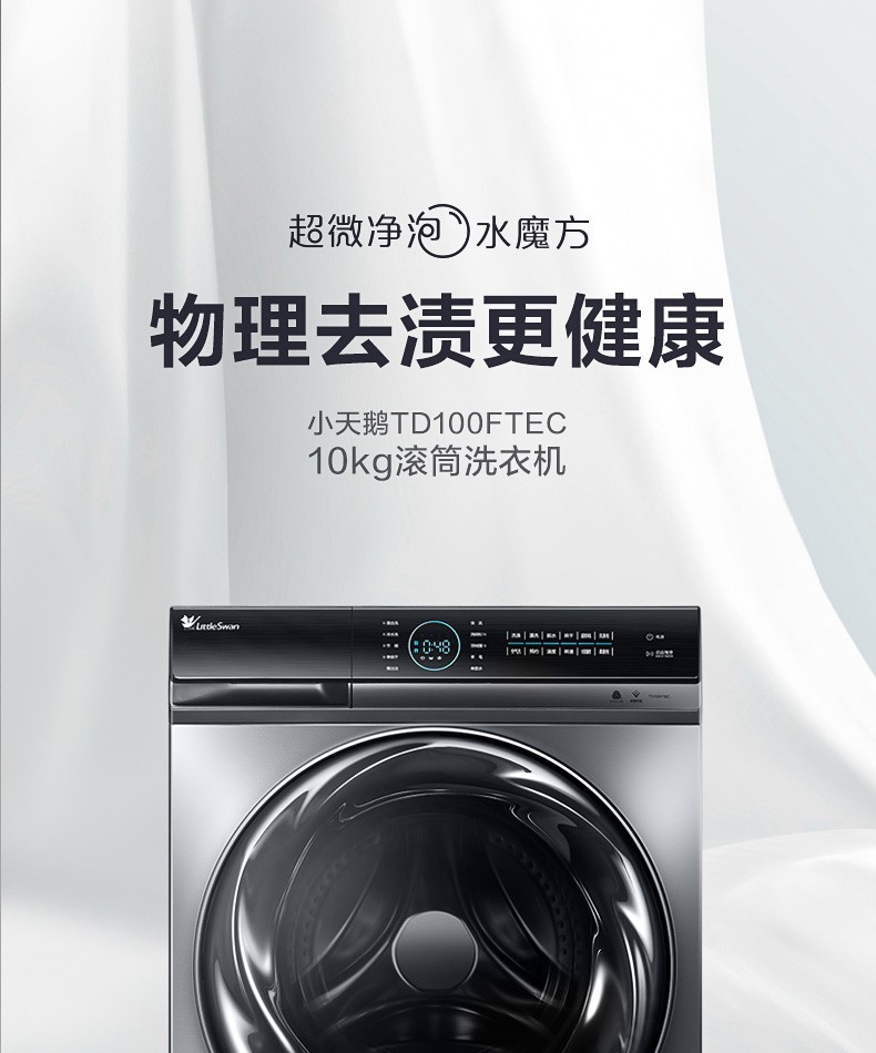 小天鹅( LittleSwan)滚筒洗衣机全自动 家用洗烘一体机10公斤 京品家电 健康除菌洗 TD100FTEC 水魔方超微净泡洗 智能投放