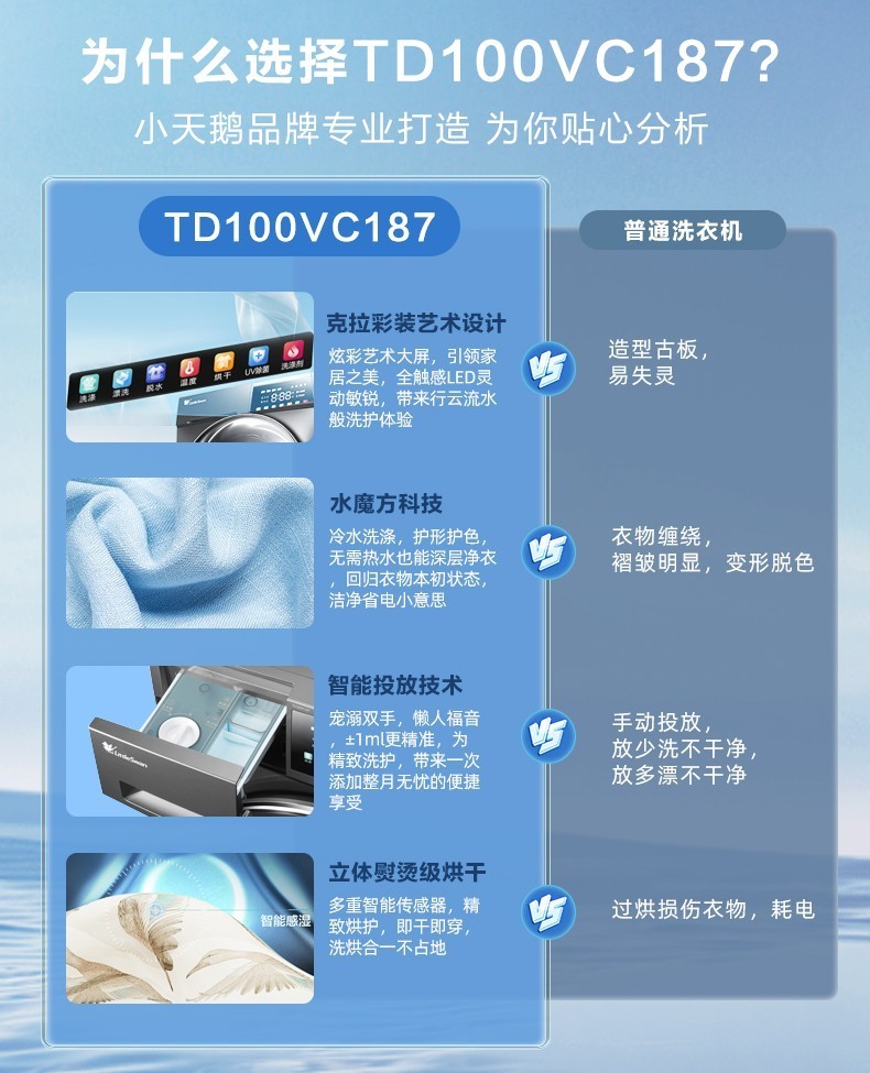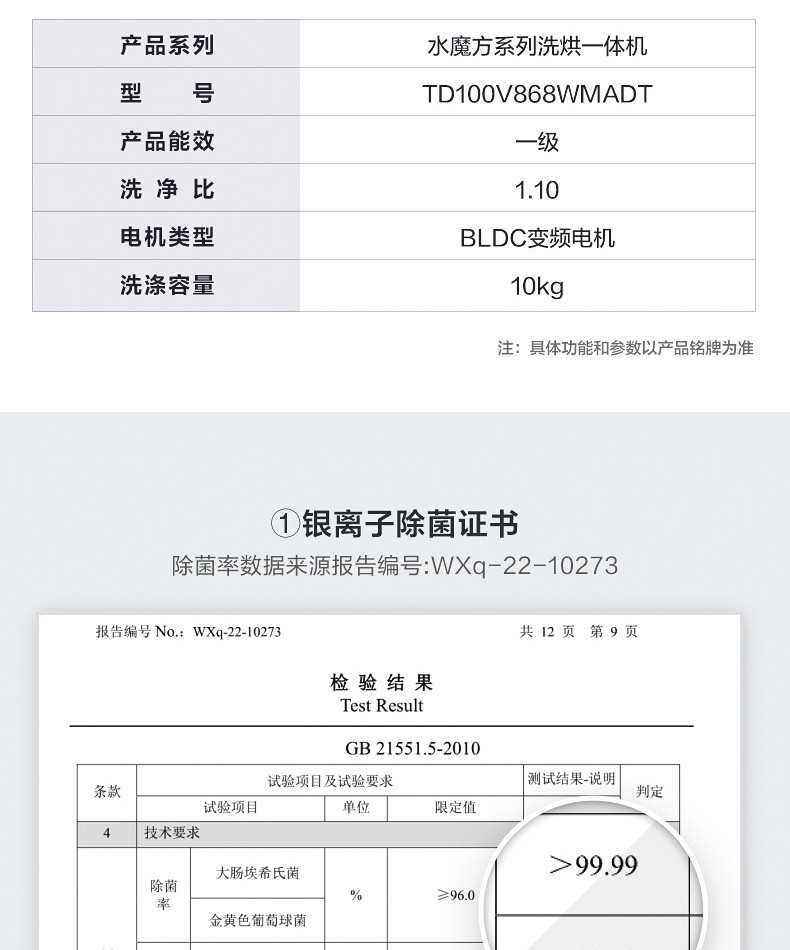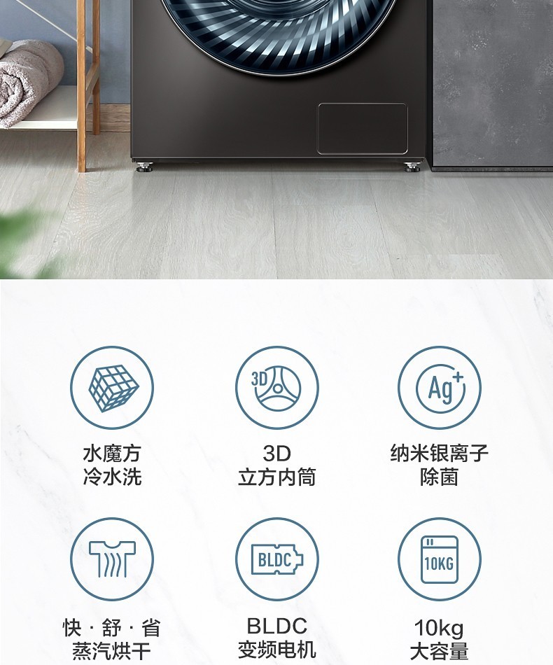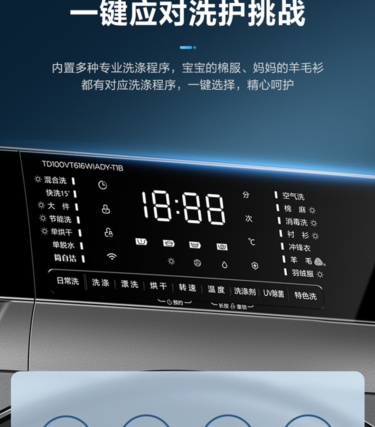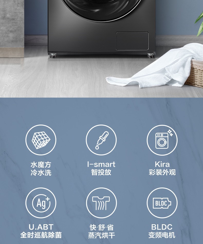 小天鹅( LittleSwan)滚筒洗衣机全自动 家用洗烘一体机10公斤 京品家电 健康除菌洗 TD100FTEC 水魔方超微净泡洗 智能投放